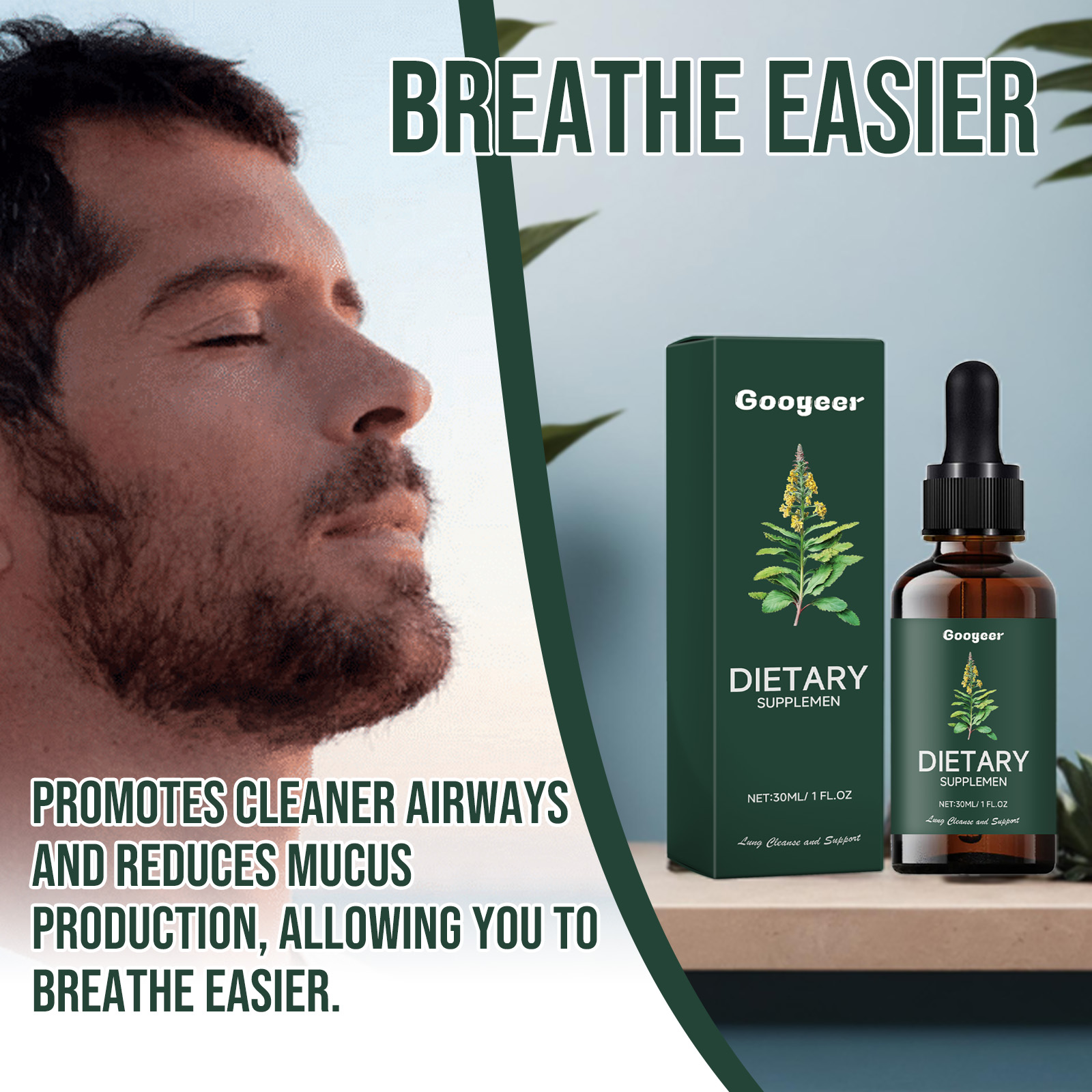 Our Dietary Supplement contain Fruit Grape Extract, Loquat Extract, Chinese Medicine Extract. It can improve lung function, make your lungs healthier and keep you energized. The way to use it is very simple: shake it well before eating, 1-2 drops each time, 1-2 times a day. Promotes cleaner airways, reduces mucus production and allows you to breathe easier.