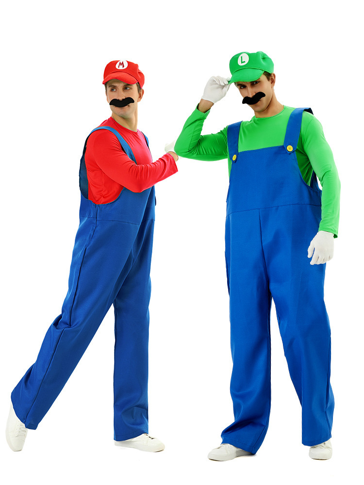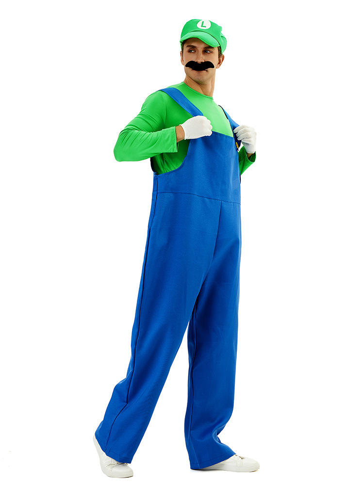 Color: Green [Hat + Top + Jumpsuit + Mustache + Gloves]