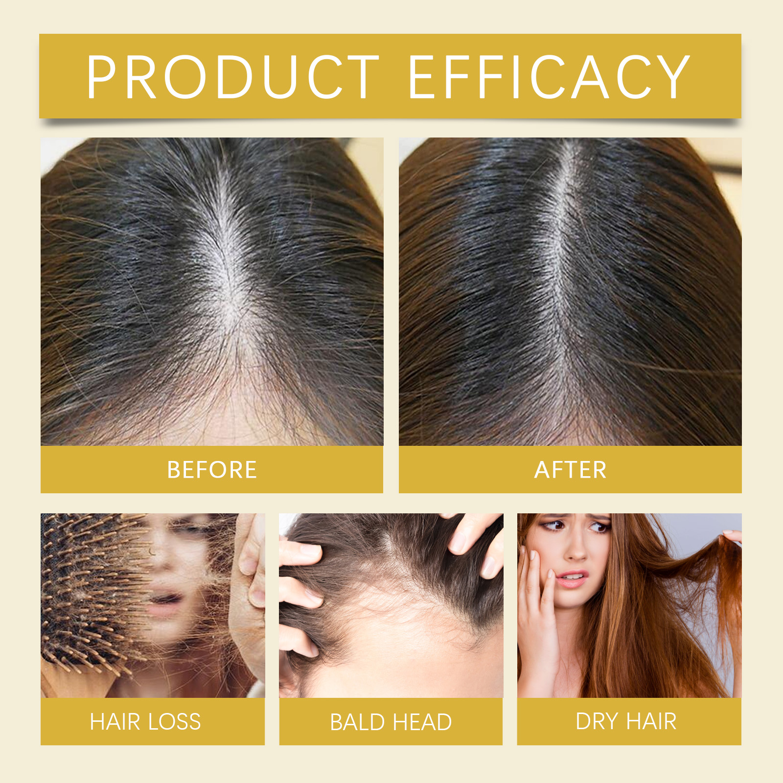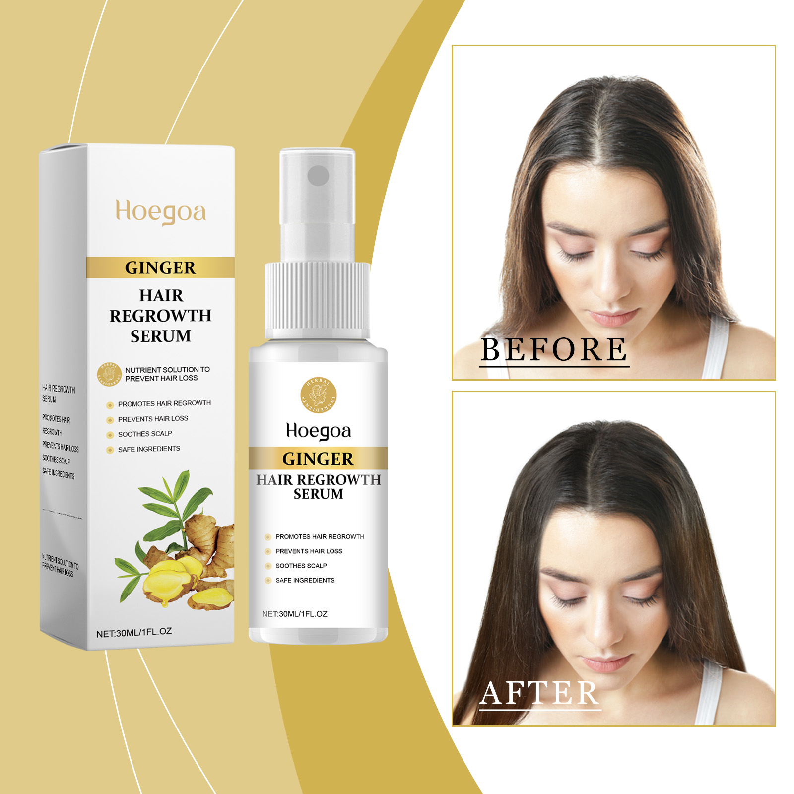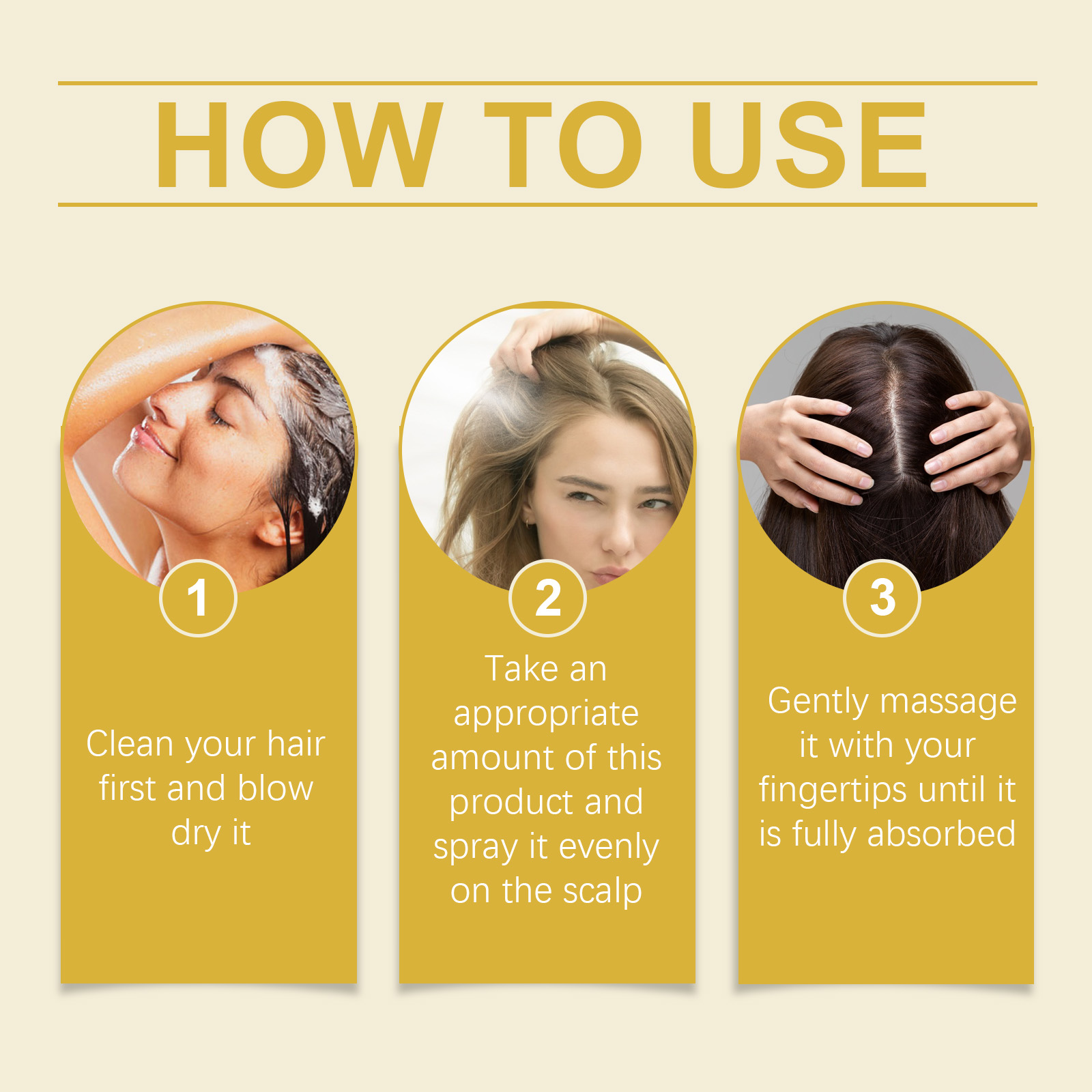 Our hair Essence spray contains ginseng root extract, knotweed root extract. It strengthens hair roots, reduces hair loss, enhances hair toughness, and prevents hair breakage and loss. Its use method is very simple: first wash your hair, blow dry, take appropriate amount of this product evenly spray on the scalp, massage gently with your fingertips until completely absorbed. And deeply nourish the scalp, improve the scalp environment, reduce scalp dryness and itching.