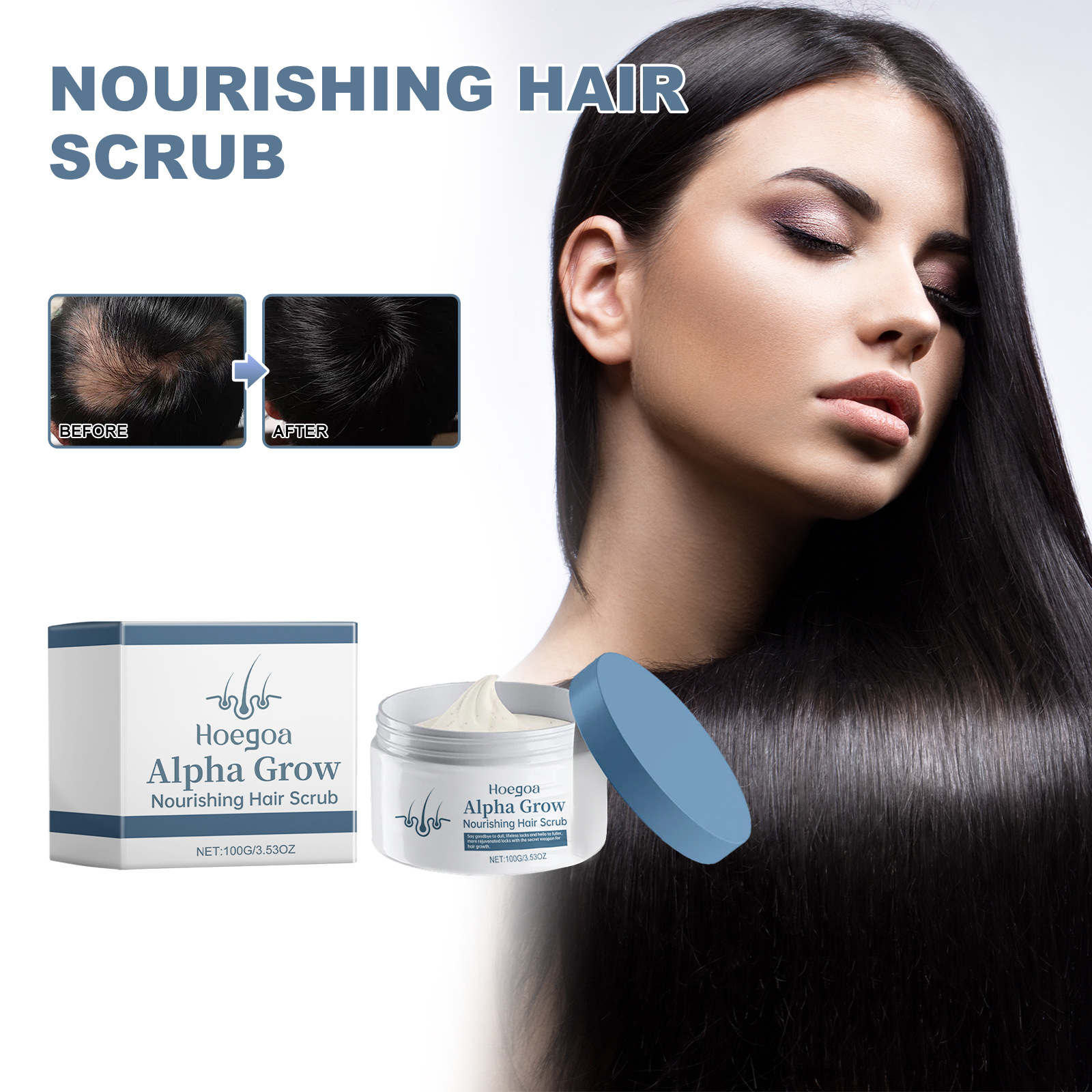 Our Nourishing Hair Scrub contains Salicylic Acid, Sea Salt, Keratin. It nourishes and protects hair and also improves the health of hair follicles, promoting hair growth, creating thicker, healthier hair and making you more confident. Its use is very simple: apply an appropriate amount of this product evenly to the wet scalp, massage gently with your fingertips, and rinse with water. It can deeply awaken dormant hair follicles, promote the growth of new hair, and make hair healthier and thicker.