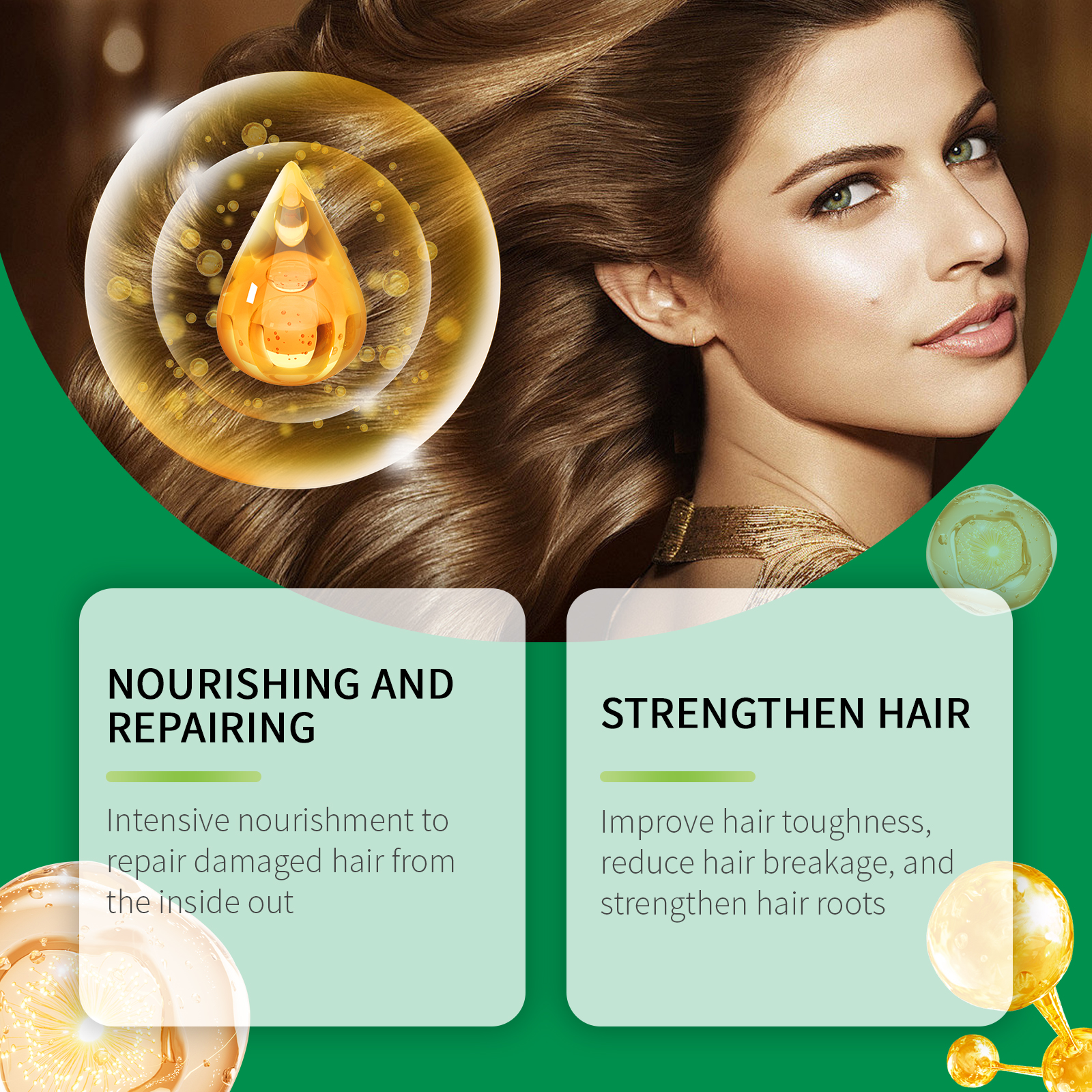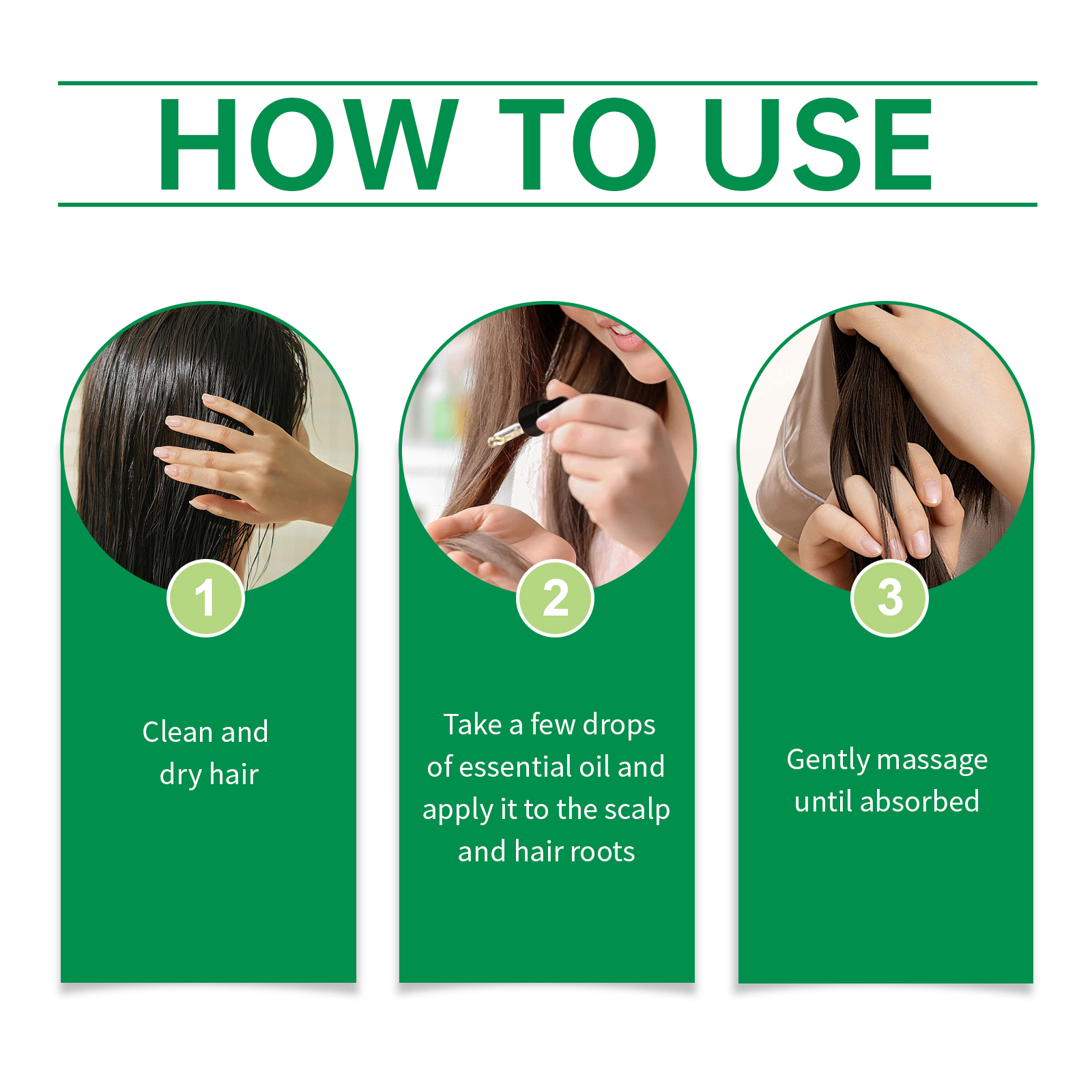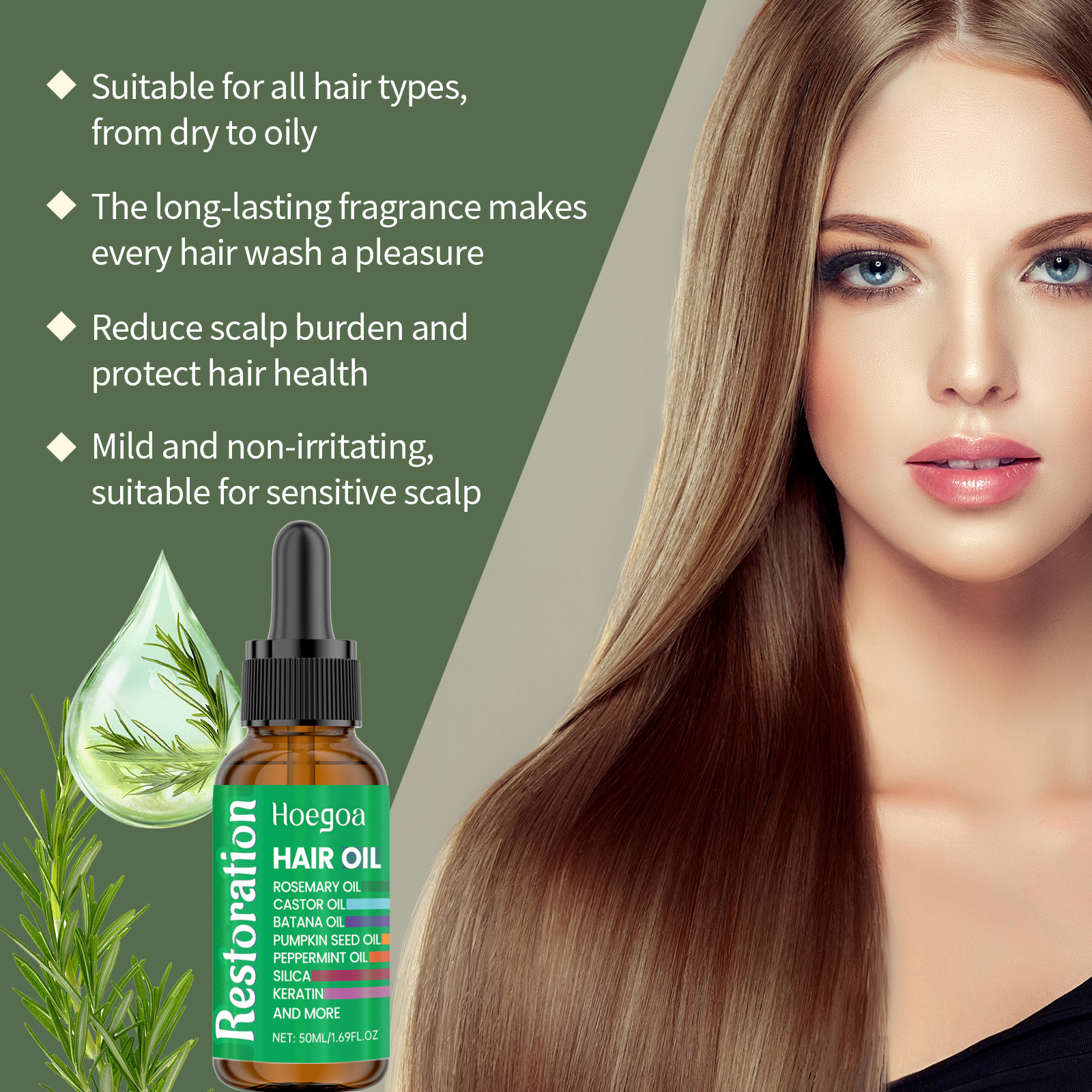 Our rosemary hair care essential oil is carefully blended from silica, keratin and peppermint oil. Designed specifically to enhance hair toughness, reduce hair breakage and strengthen the hair roots. The usage method is extremely convenient: For clean and dry hair, apply a few drops of essential oil to the scalp and hair roots, and gently massage until fully absorbed. And it can enhance nutrition and repair damaged hair from the inside out.