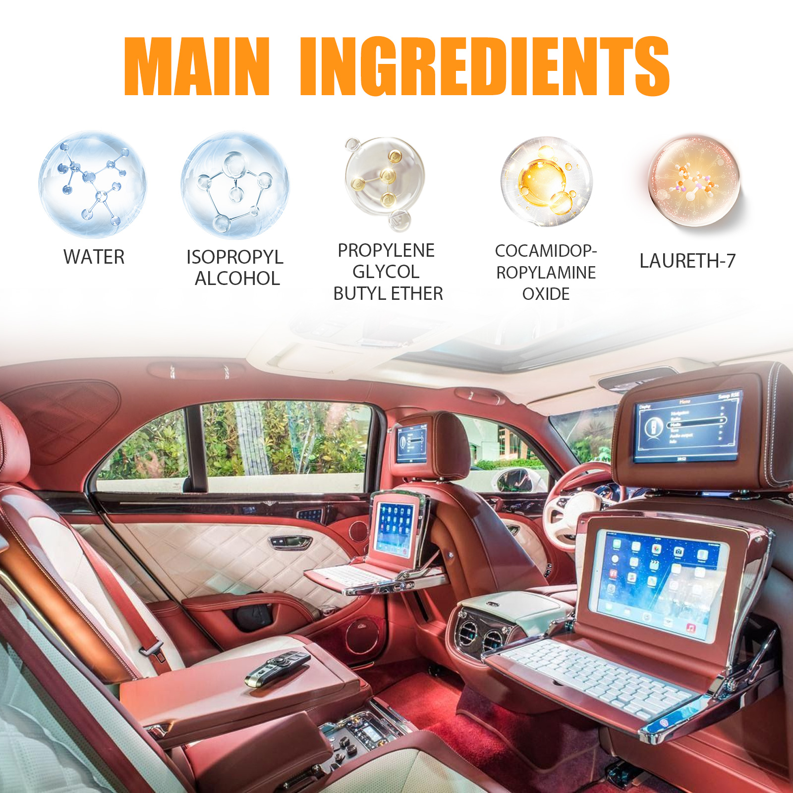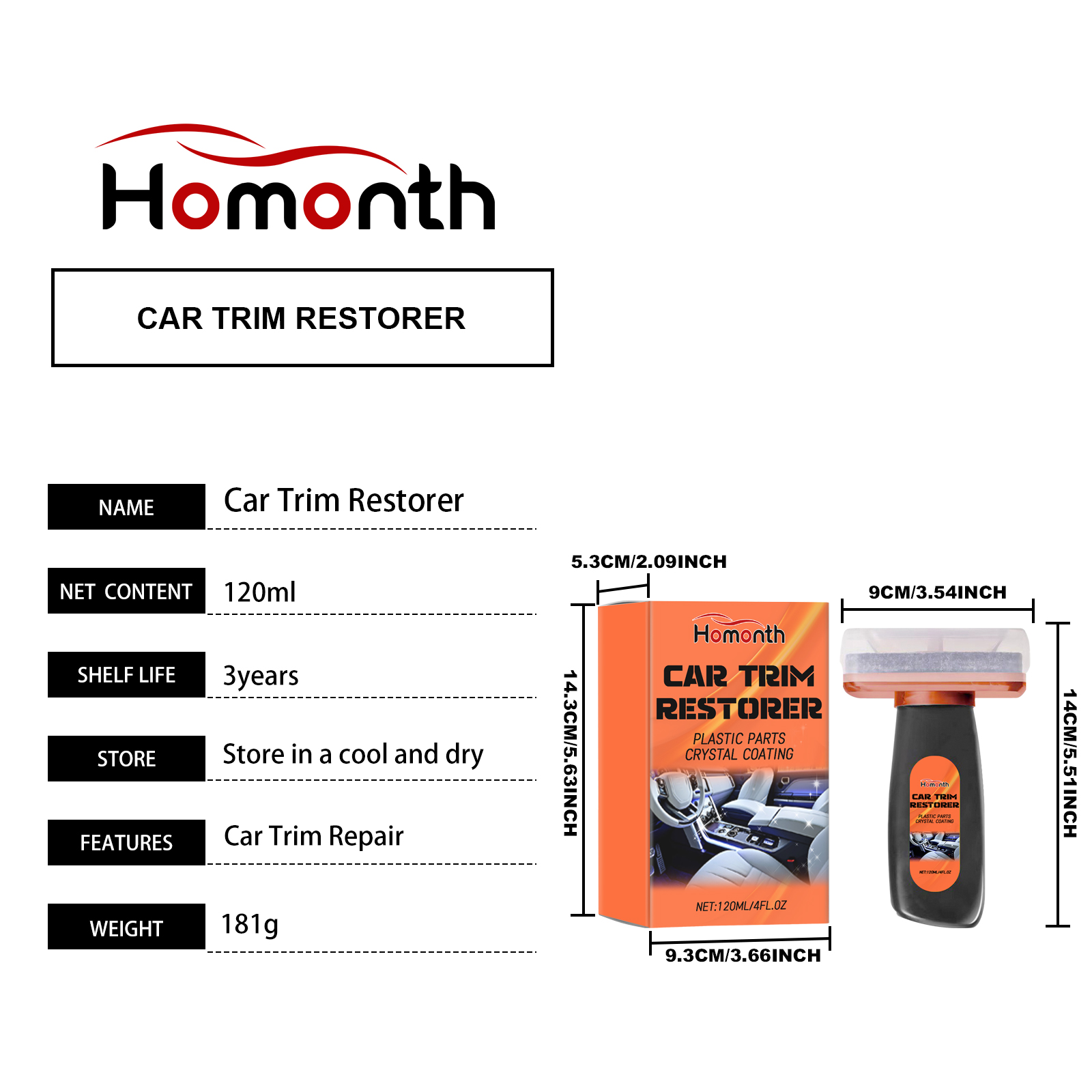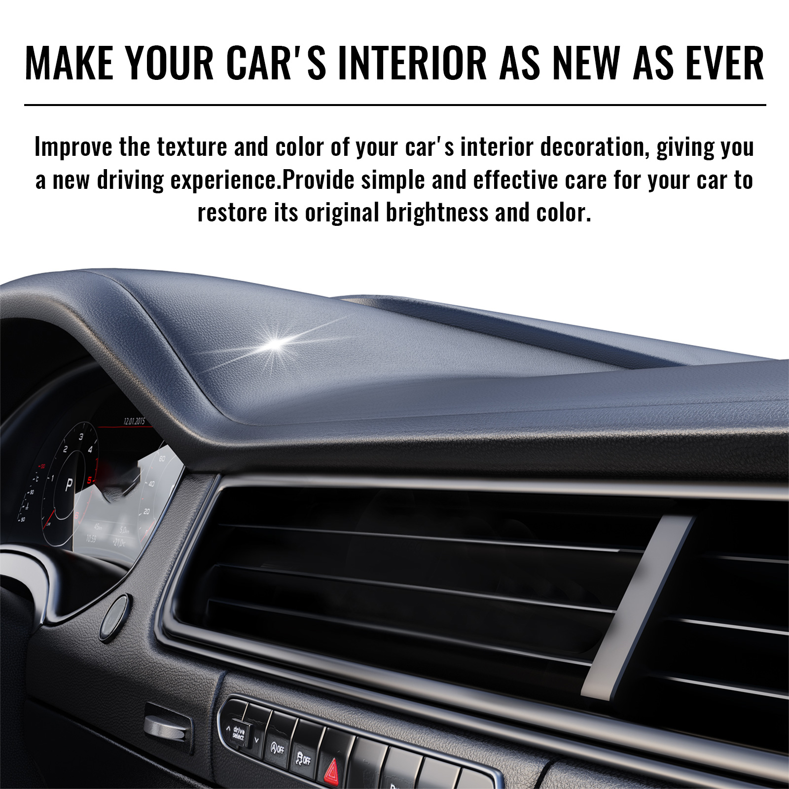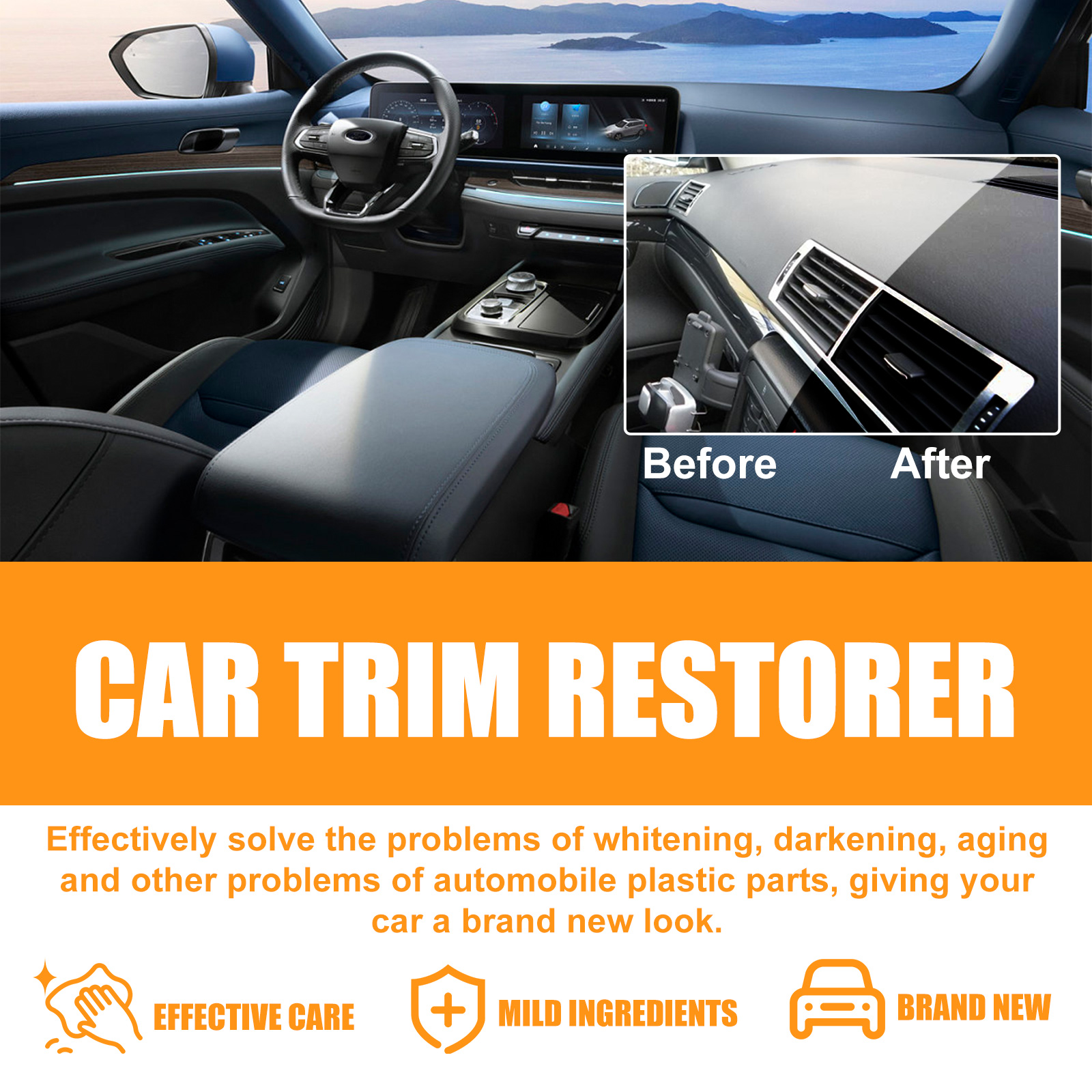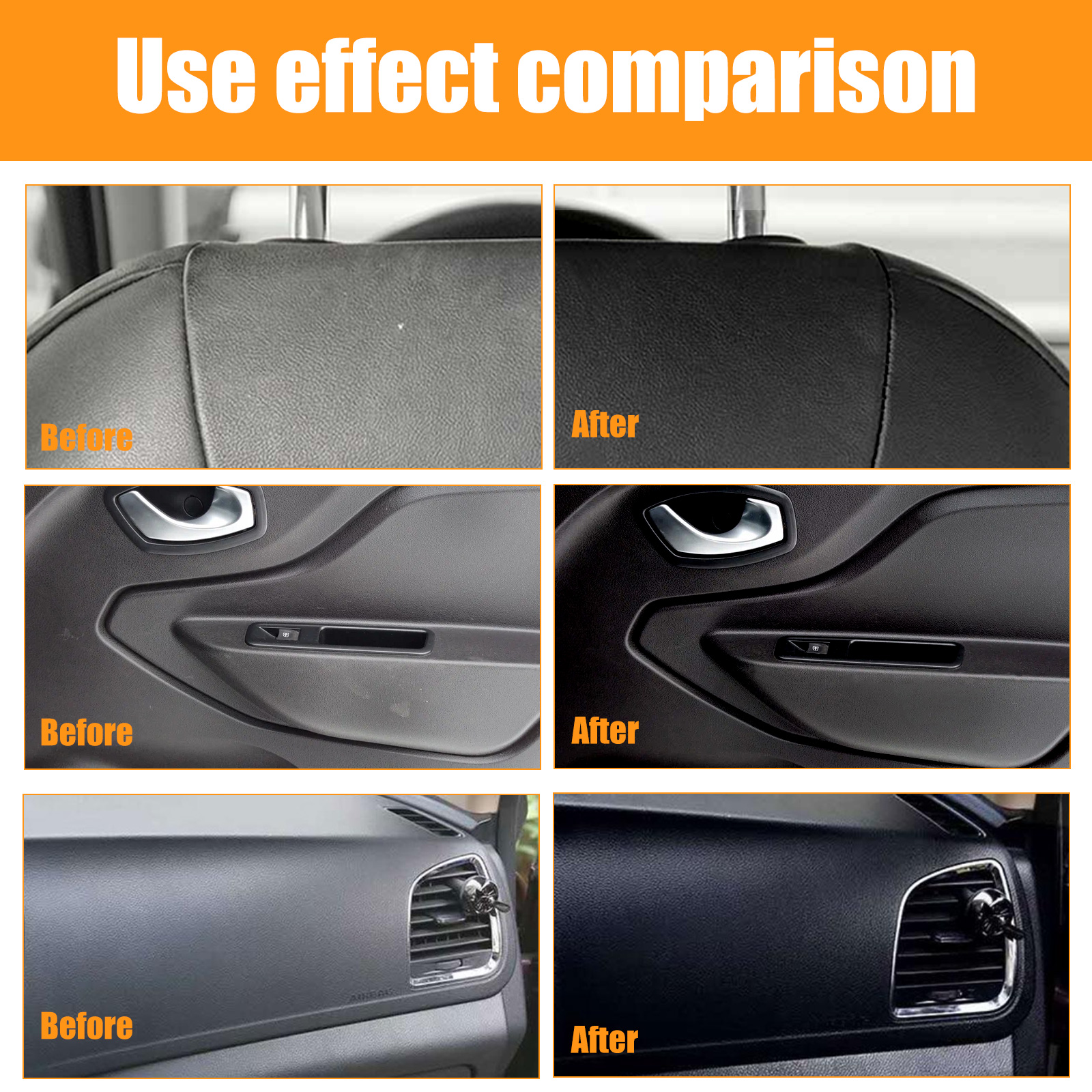 Our car decorative restorers contain isopropyl alcohol and propylene glycol butyl ether. It can improve the texture and color of your car"s interior decoration, giving you a whole new driving experience. Simple and effective care for your car to restore its original brightness and color. The way to use it is very simple: squeeze out the right amount of liquid, evenly apply it to the faded or scratched area, and wipe it off with a towel. And you can clean the interior.