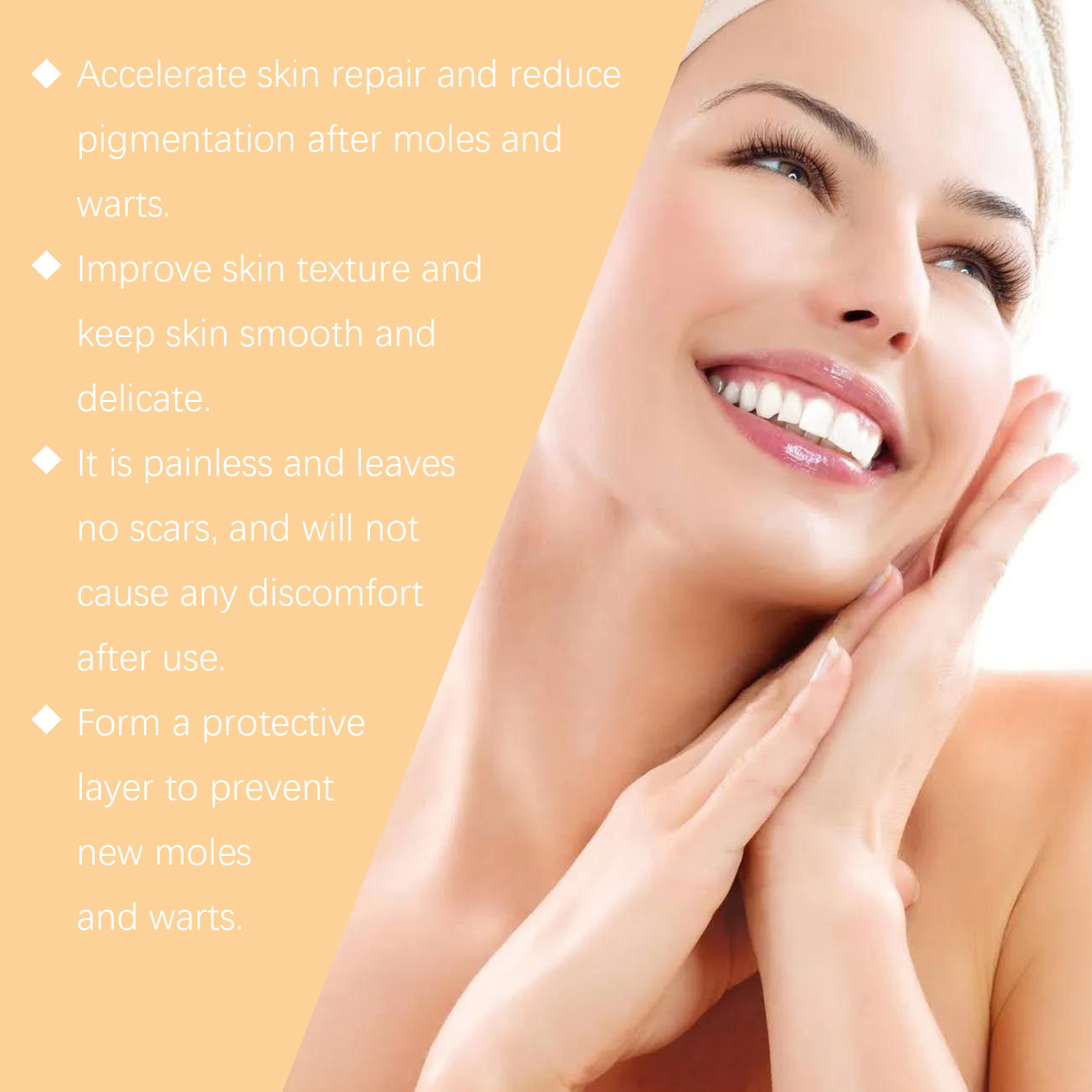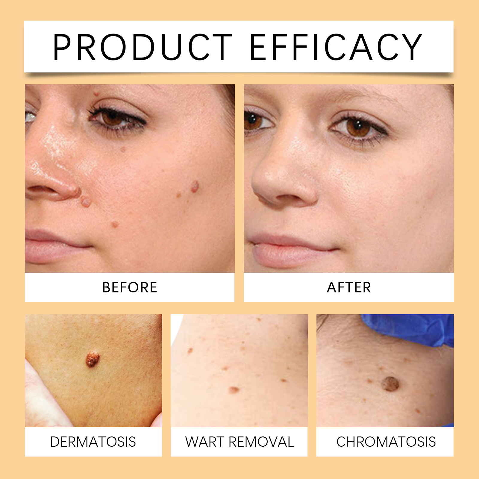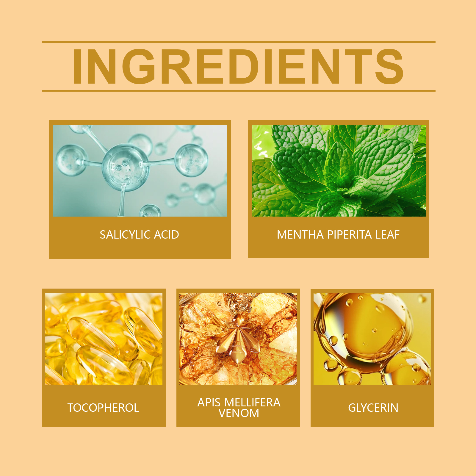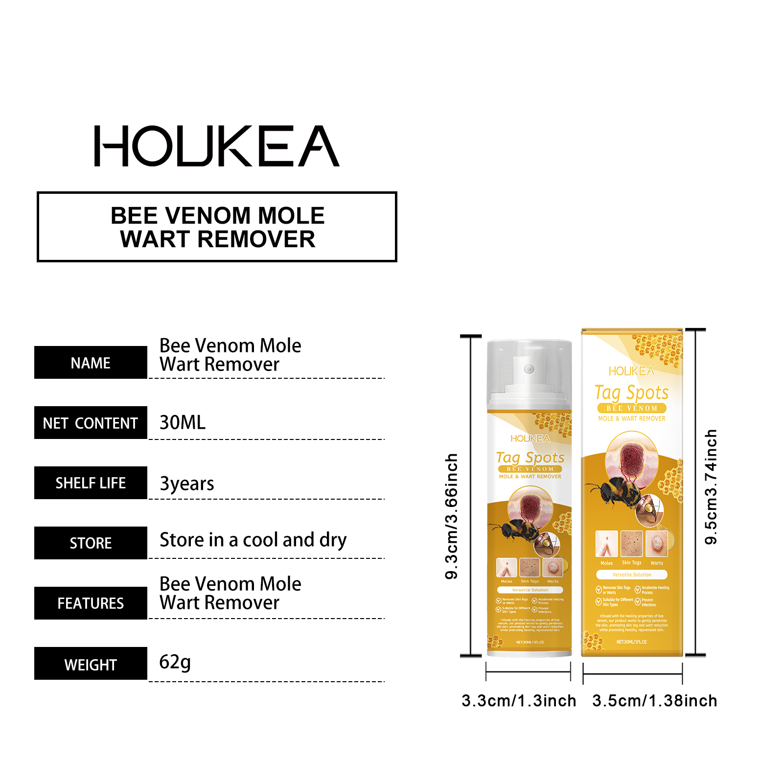 Our Bee Venom Wart Care spray contains mint leaves, vitamin E (tocopherol). It can be applied to many types of skin warts to promote skin health. Its use method is very simple: evenly spray the right amount of this product on the wart or mole, waiting for absorption. And herbal ingredients, mild and non-irritating, suitable for all skin types.