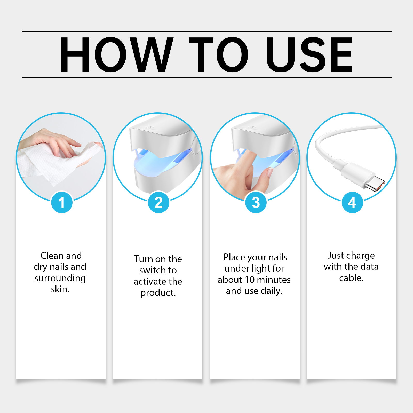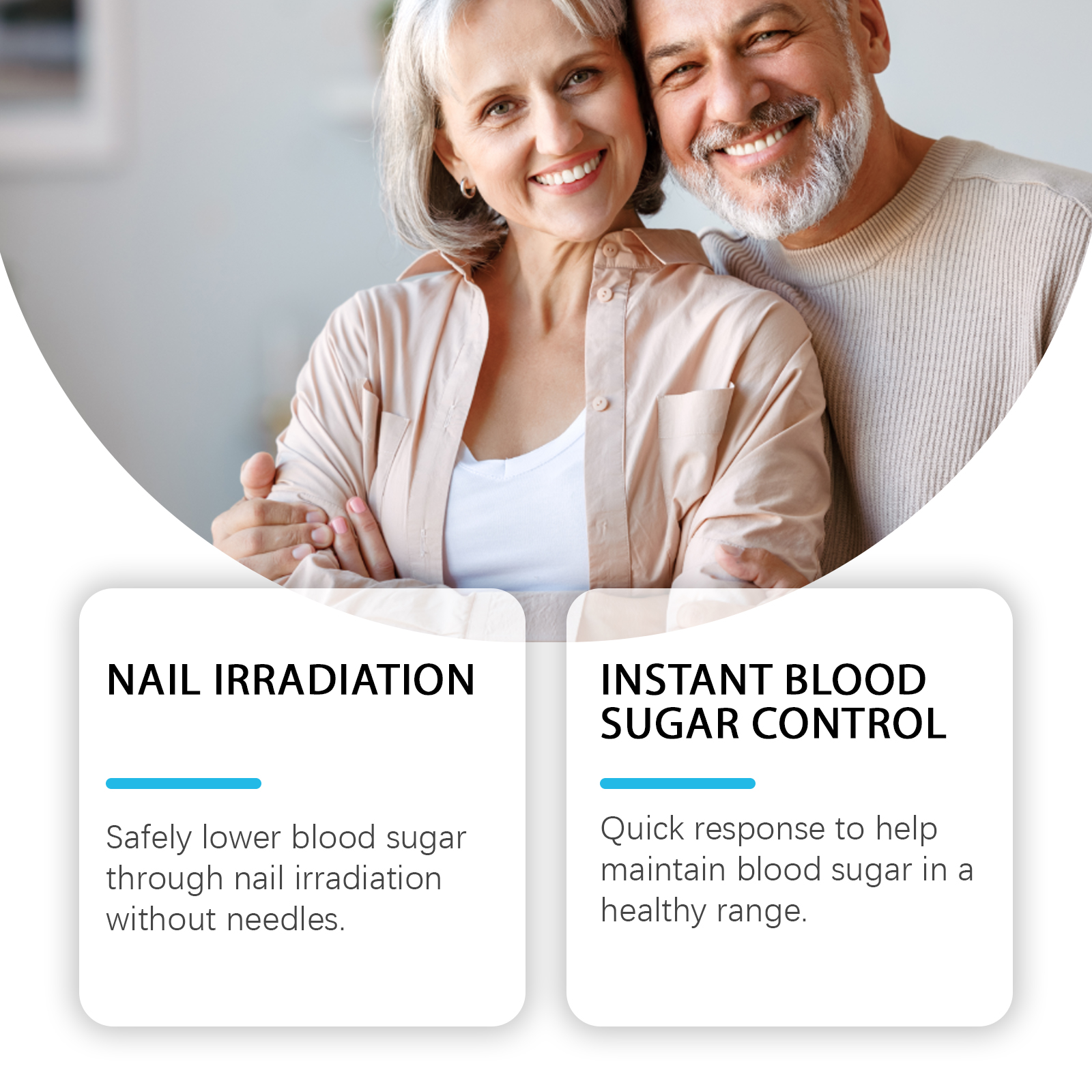 Our blood glucose monitors contain PP. It can safely lower blood sugar through fingernail irradiation without the need for needles. Its application is simple: clean and dry the nails and surrounding skin. Turn on the switch to activate the production. Place your nails under the light for about 10 minutes daily. Just use the cable to charge. And can react quickly, helping to keep blood sugar in a healthy range.