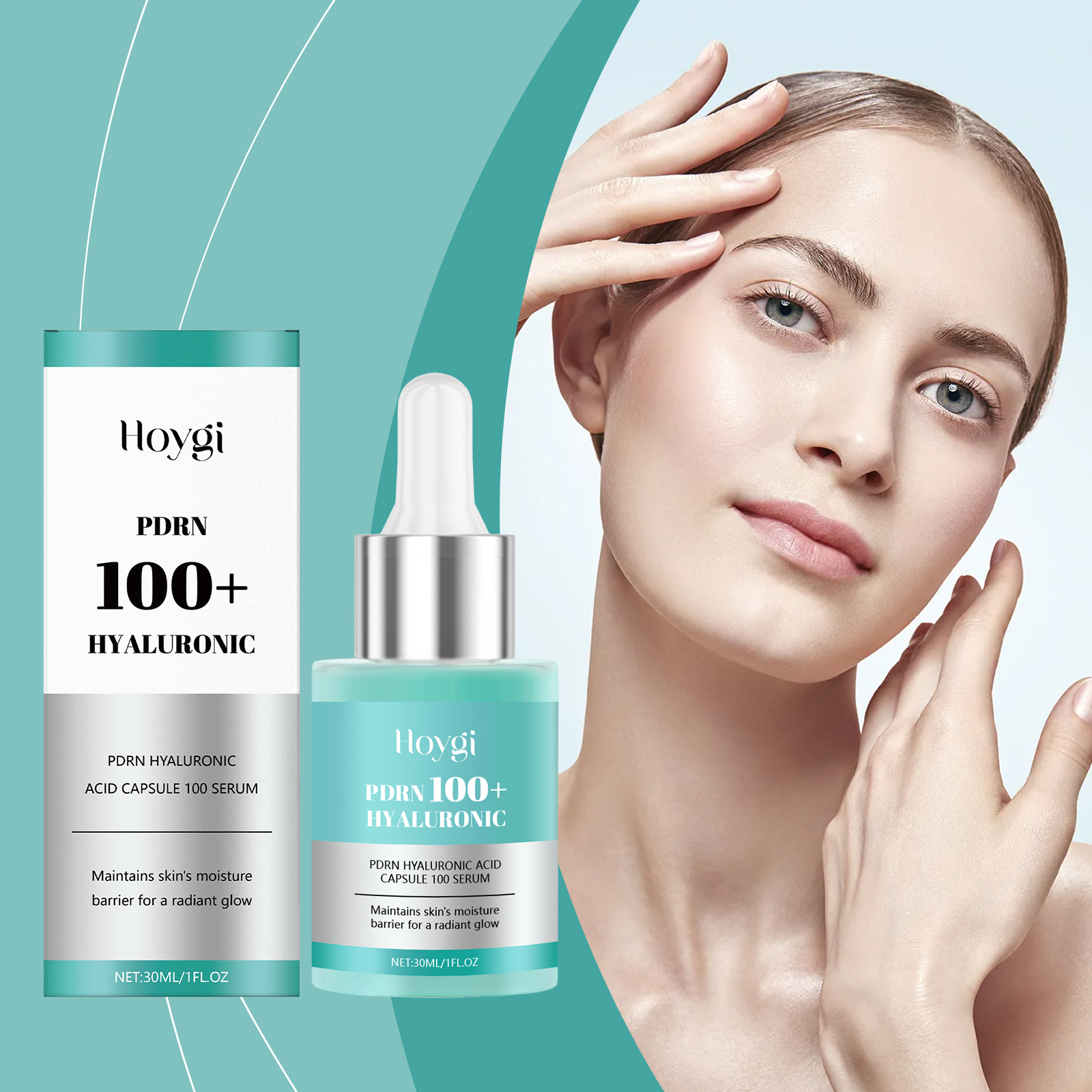 Our hyaluronic acid moisturizing serum (blue green) is carefully blended with hydroxyethyl cellulose, DNA sodium and hyaluronic acid. Designed to keep facial skin moist and reduce discomfort caused by dryness. It"s easy to use: clean your face and keep it dry. Apply appropriate amount to face evenly. Massage gently until absorbed. And can make the skin feel soft, with good ductility and easy absorption.