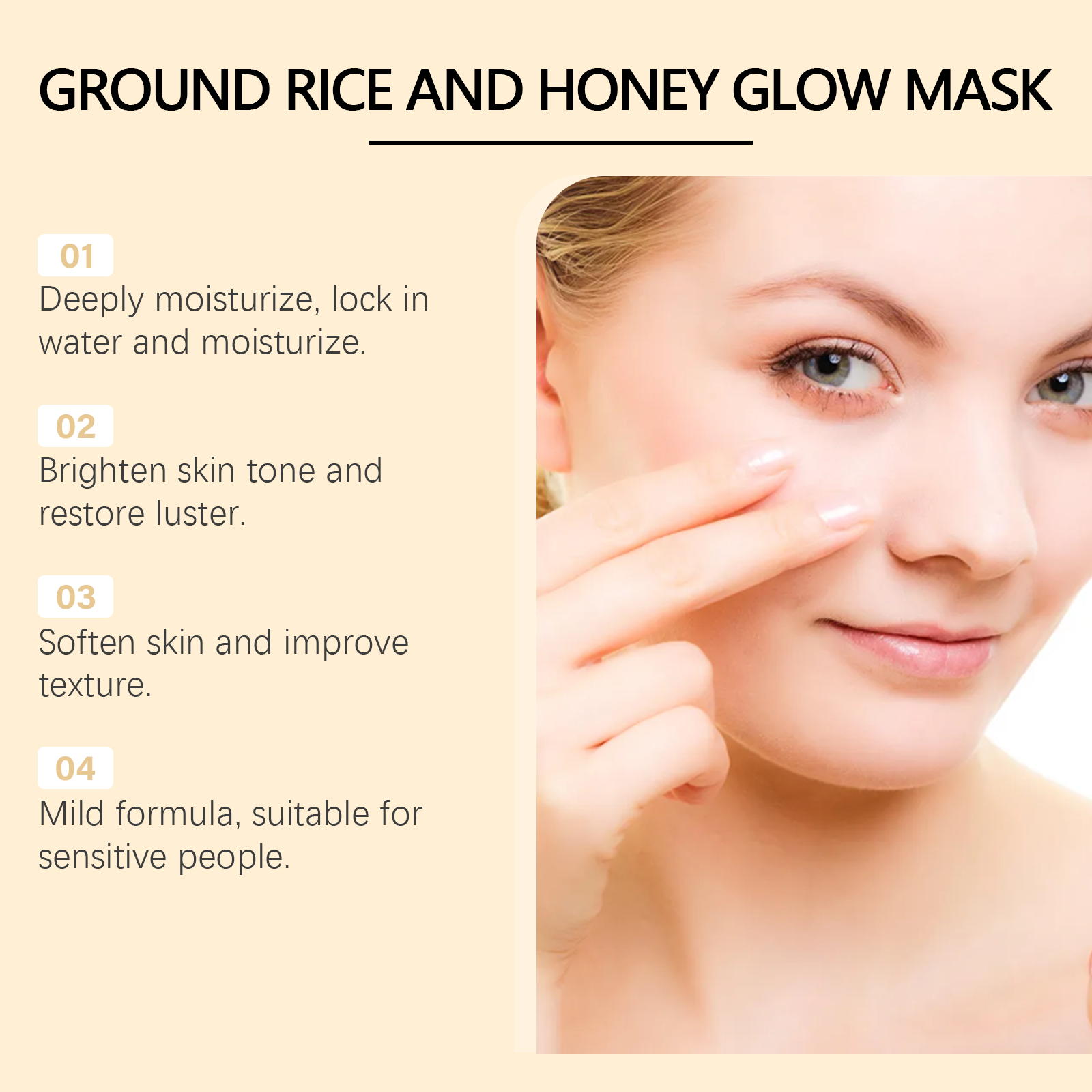 Our Rice Honey Moisturizing and brightening mask contains glycerin, kaolin and honey extract. It brightens the skin and gives it a natural glow. Improves skin texture and makes skin smoother. Its use method is very simple: keep dry after cleansing, apply appropriate amount evenly on the face, leave for 15-20 minutes, gently massage with warm water, wash off. Moisturize deeply to keep skin moist and plump. Suitable for all skin types, especially sensitive skin.