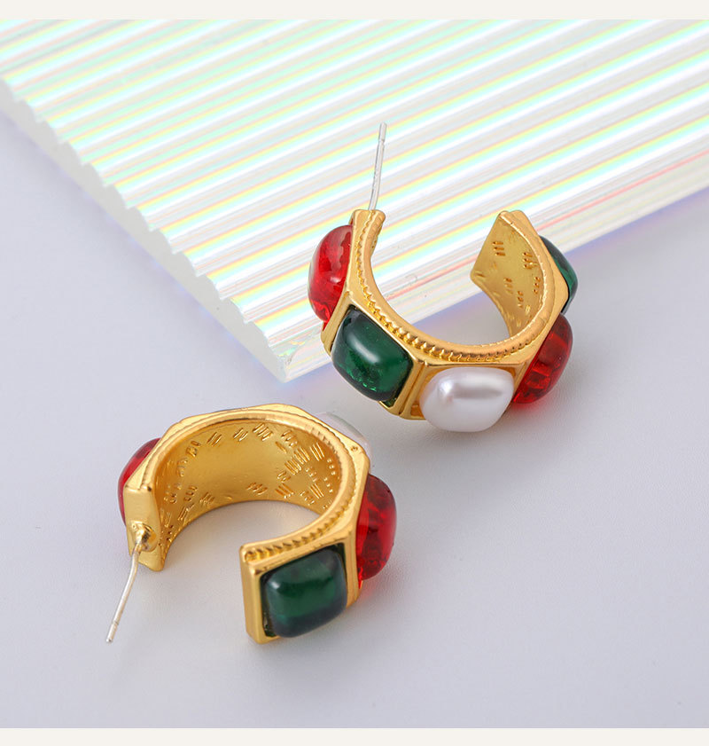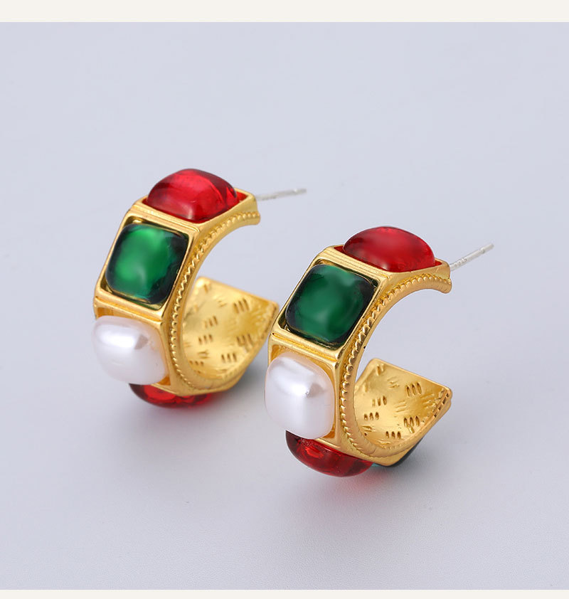 All Products Jewelry & Accessories Earrings Vintage Geometry Rhinestone Resin Pearl Metal Stud Earring for Women Retro Franch Party Jewelry