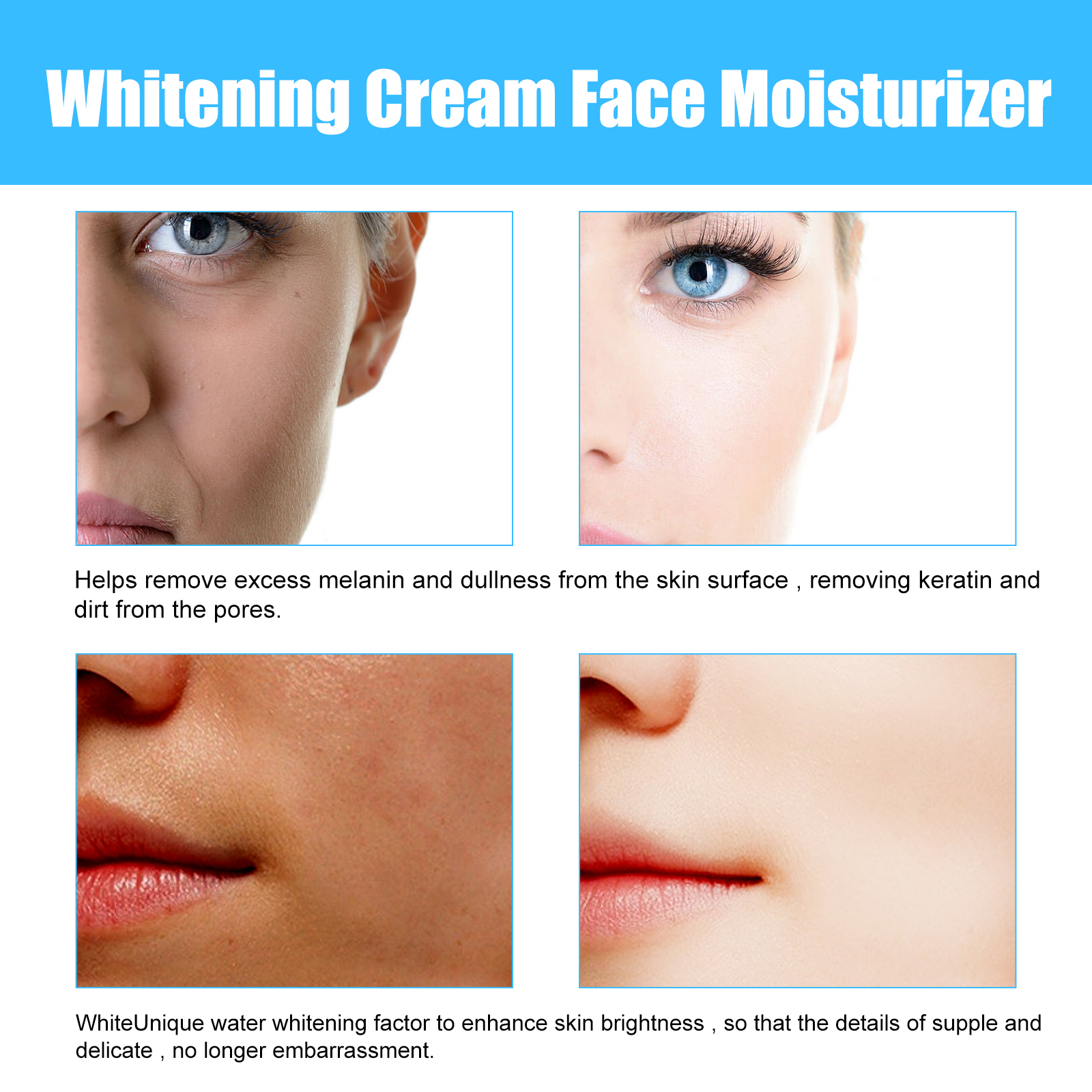 Our brightening cream contains niacinamide, licorice root extract, allantoin. It can improve the contour and complexion of the underarms and give the skin a radiant glow. Its application is simple: clean and dry skin steps, apply to the skin and massage until fully absorbed steps, for best results, apply twice a day in the morning and twice a day in the evening. Remove excess melanin and dullness from the skin surface, and remove keratin and dirt from pores. The unique water whitening factor can enhance the brightness of the skin and make the details soft and delicate no longer embarrassing.