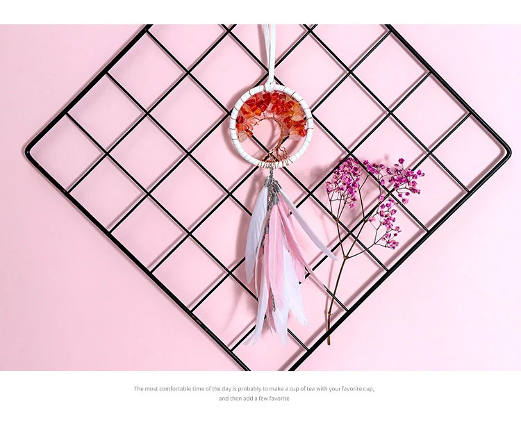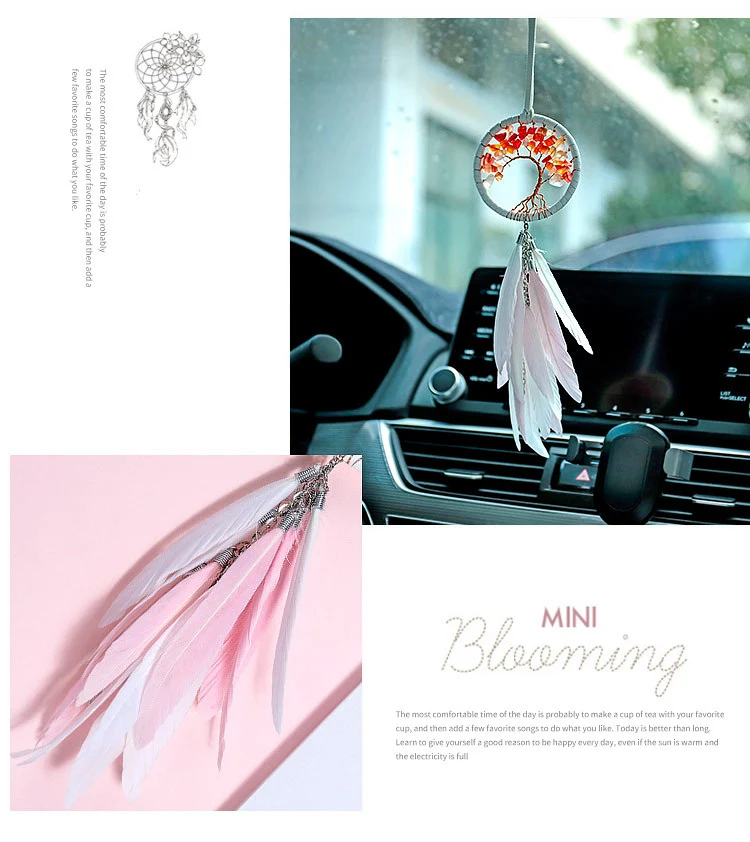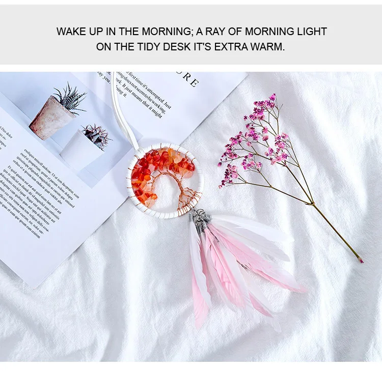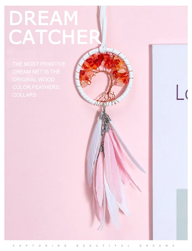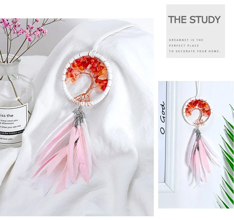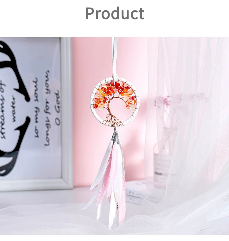 Modern Style Handmade Weave Dream Catcher Car Pendant Colorful Stones Mini Tree of life Dreamcatcher Decor Hanging Girl Gift