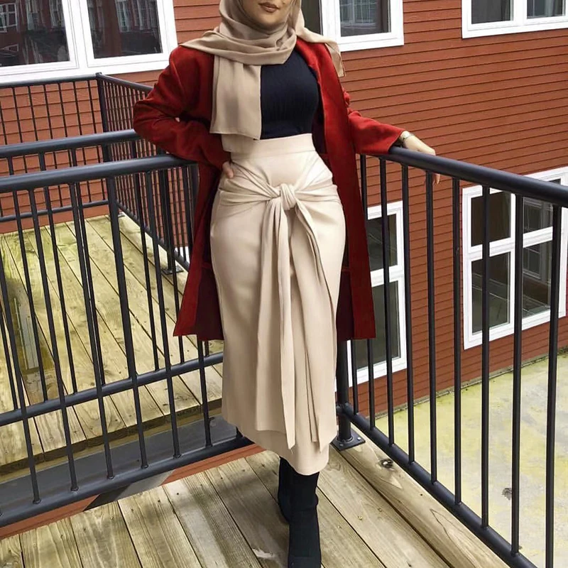*Item Description: Muslim Women's Slim Fit Thick High Waist Stretch Long Cotton Blends Pencil Skirt