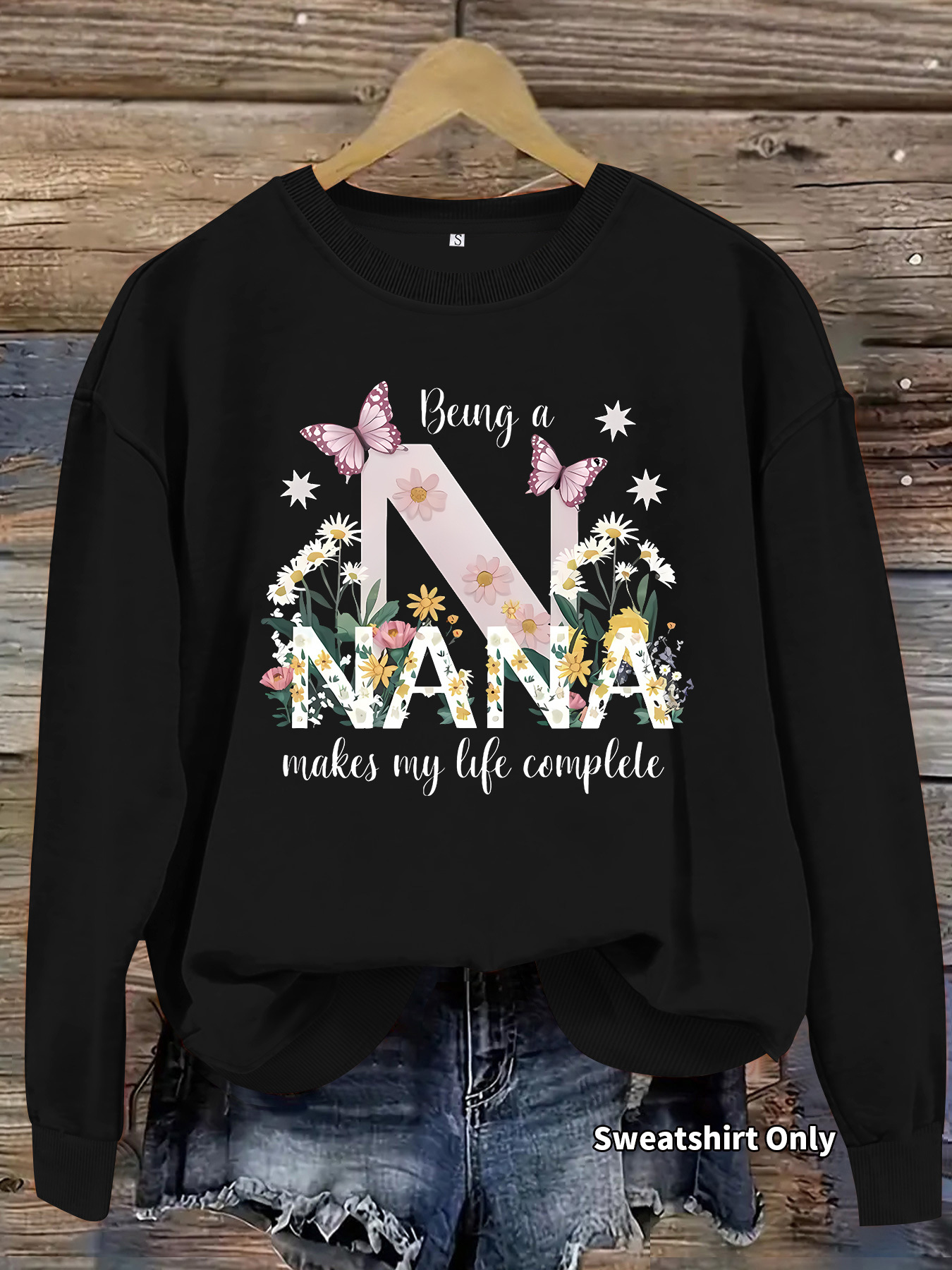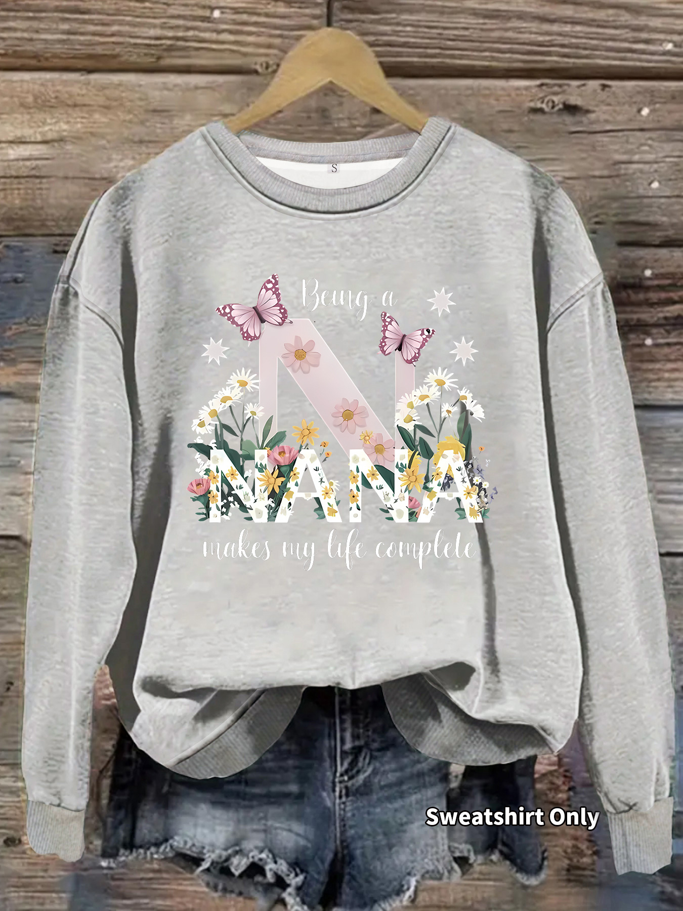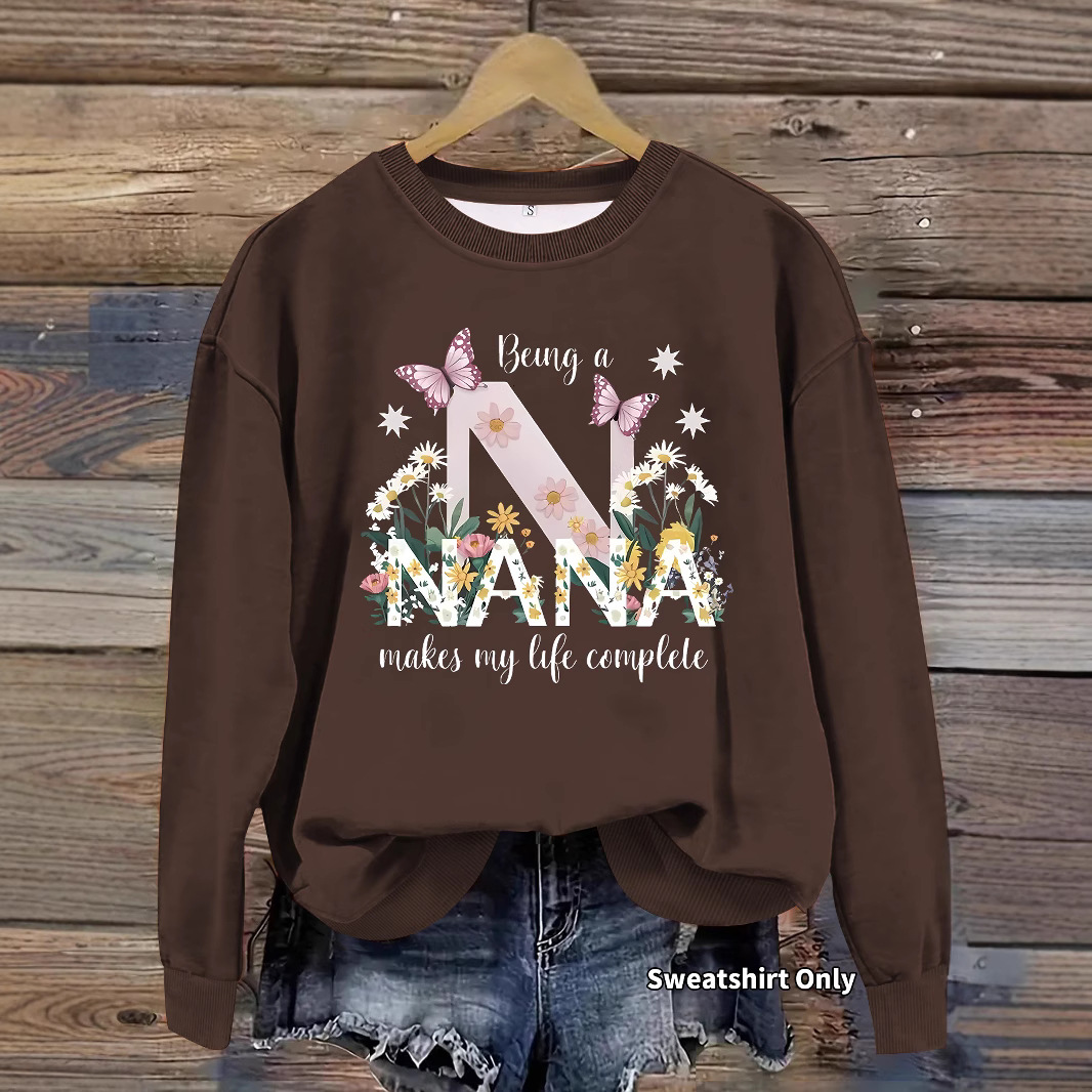 All Products Fashion & Clothing Hoodies & Sweatshirts Nana Butterfly Pattern Printed Round Neck Hoodie