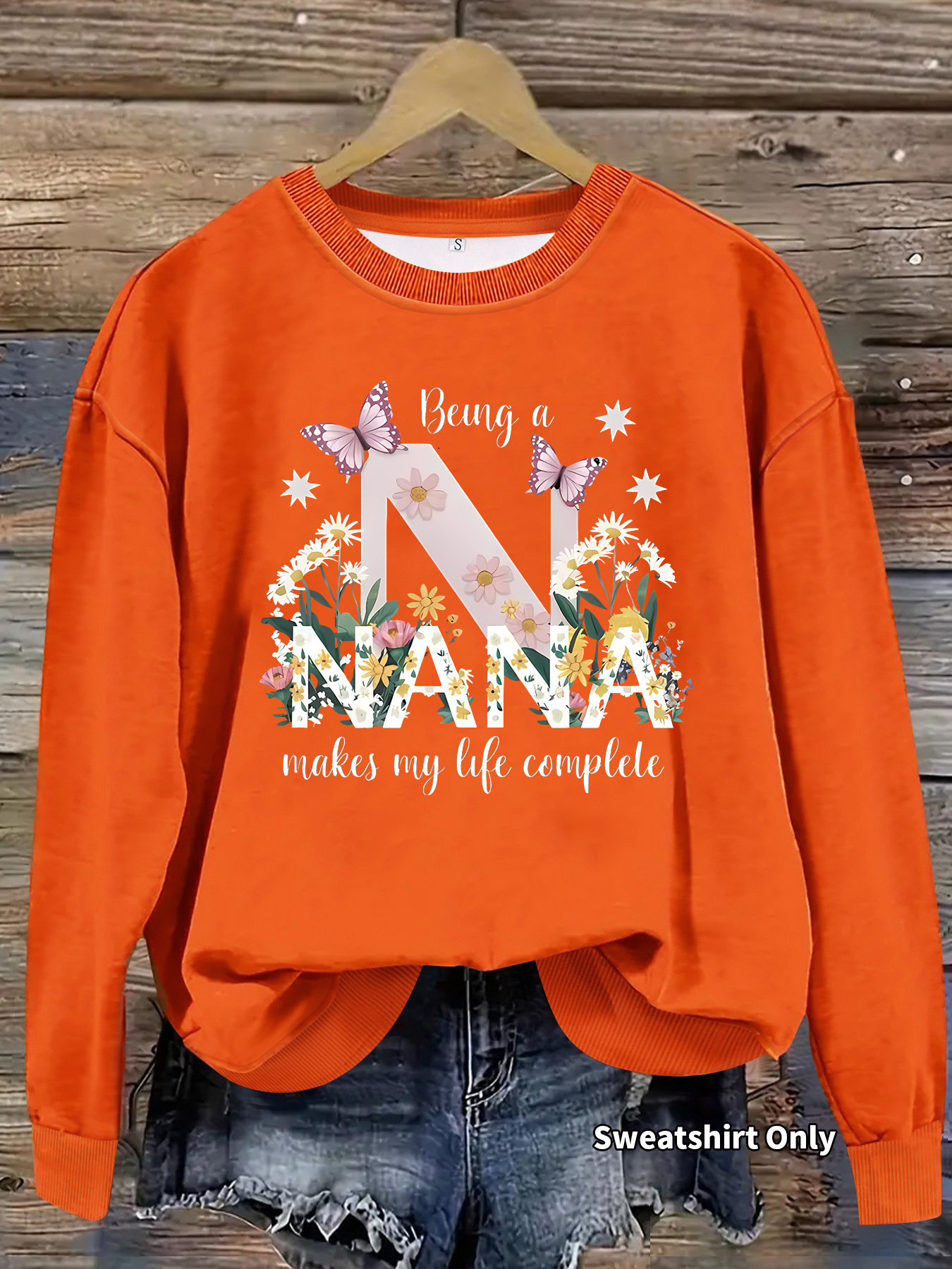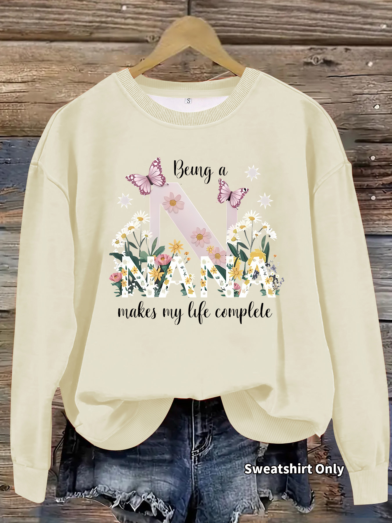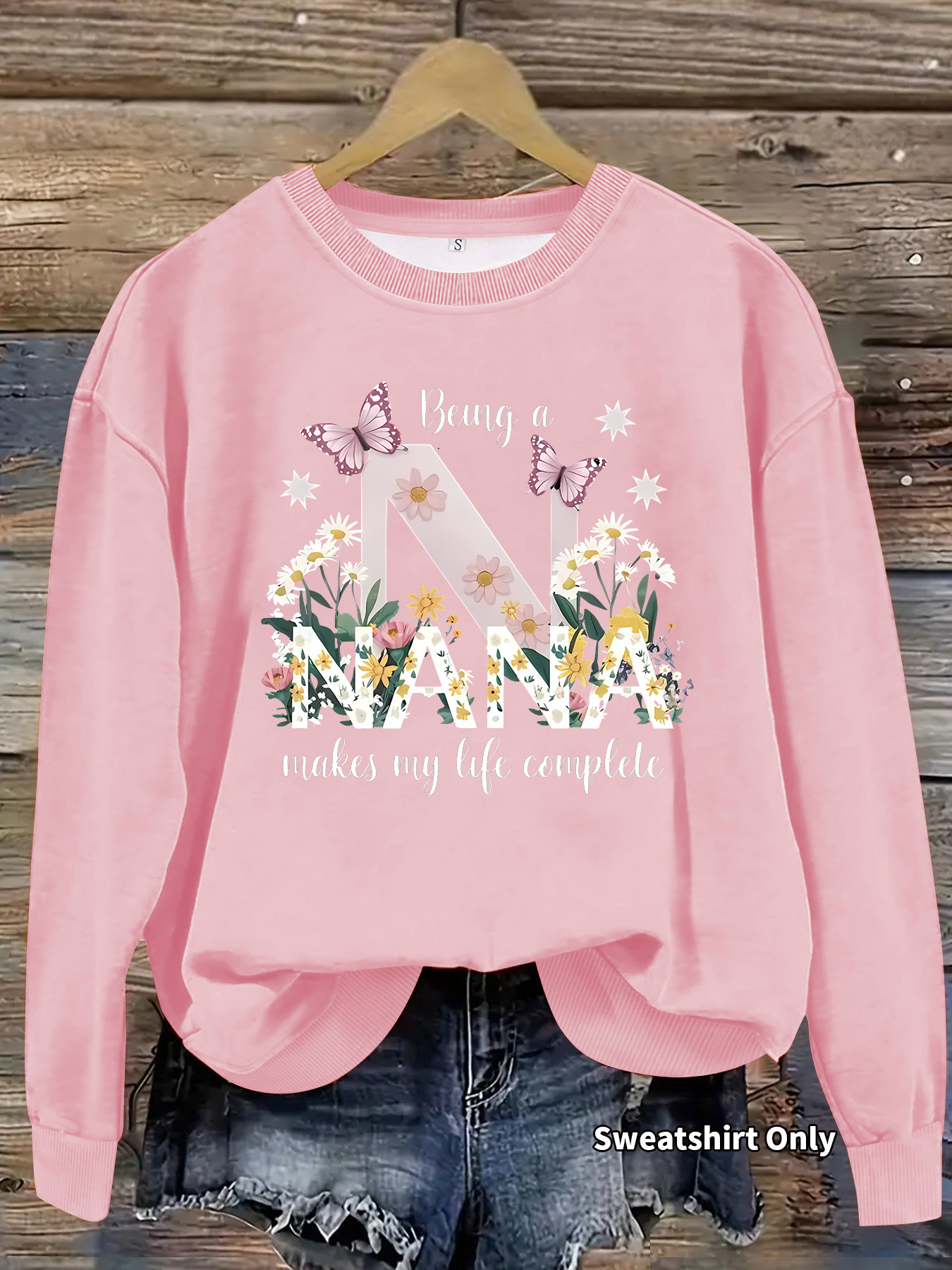 All Products Fashion & Clothing Hoodies & Sweatshirts Nana Butterfly Pattern Printed Round Neck Hoodie