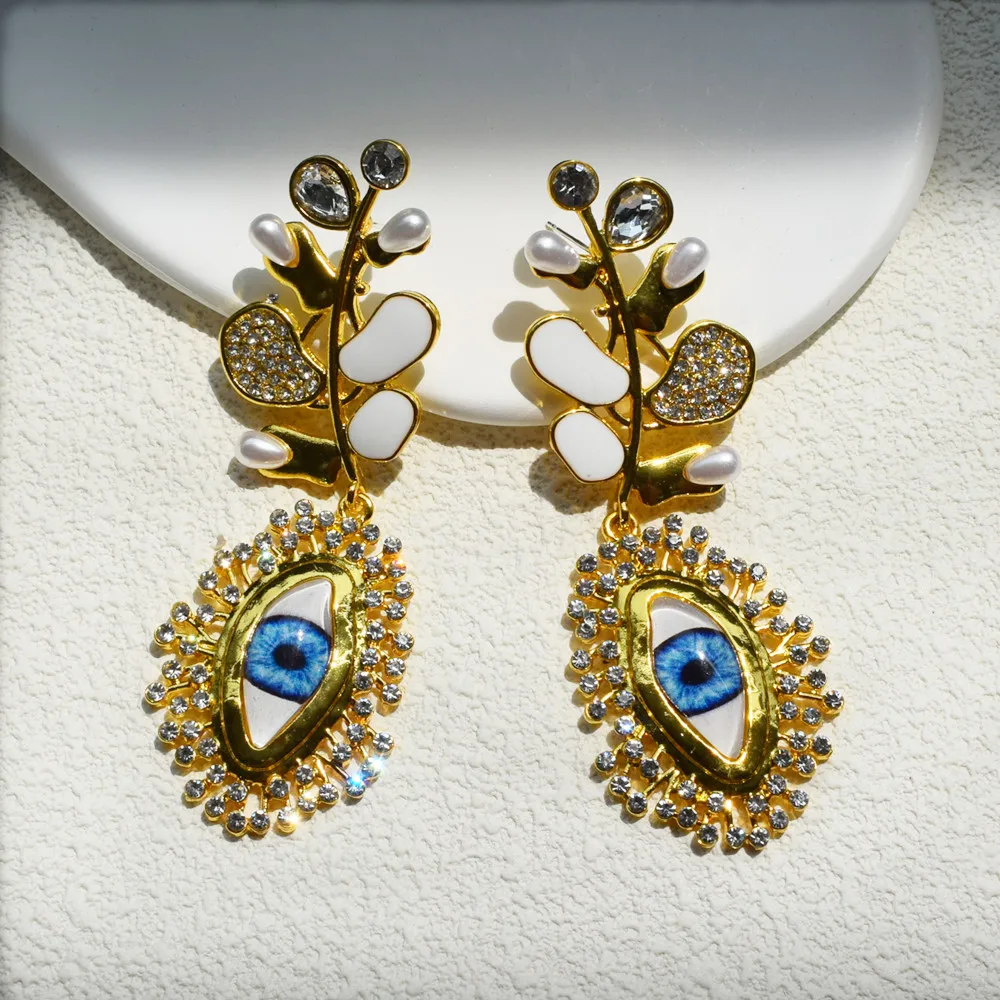 All Products Jewelry & Accessories Earrings Diamond leaf and pearl earrings women's eyes and earrings