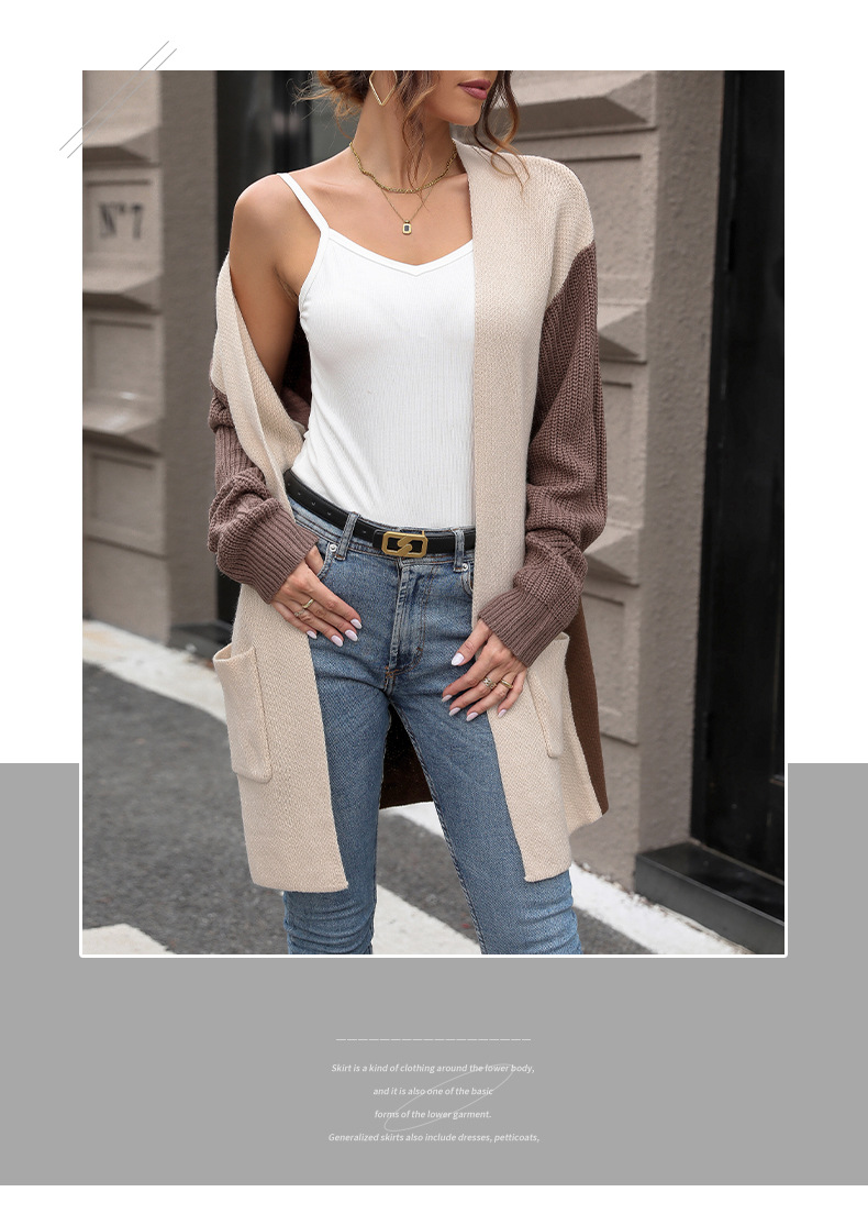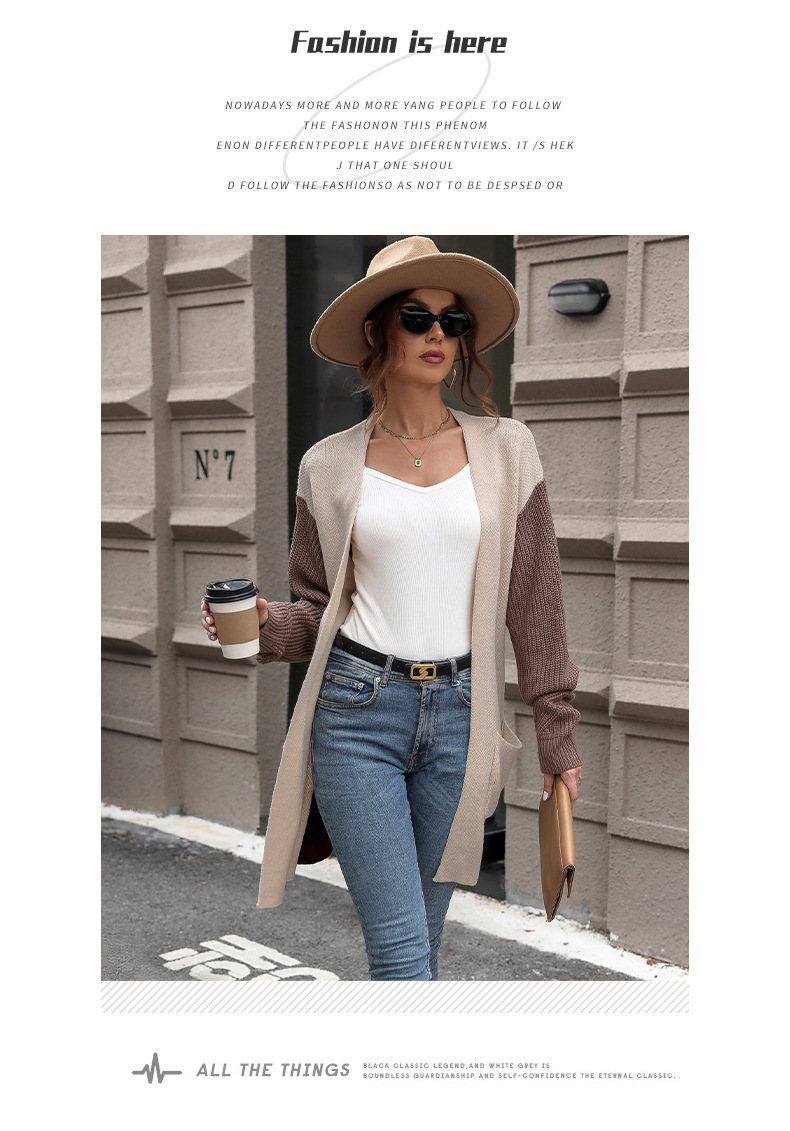 All Products Fashion & Clothing Jackets & Coats New European and American autumn women's long sleeved color blocked sweater cardigan jacket