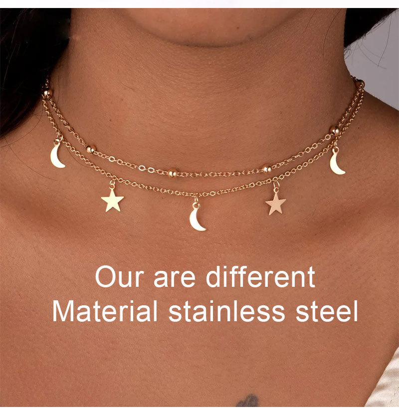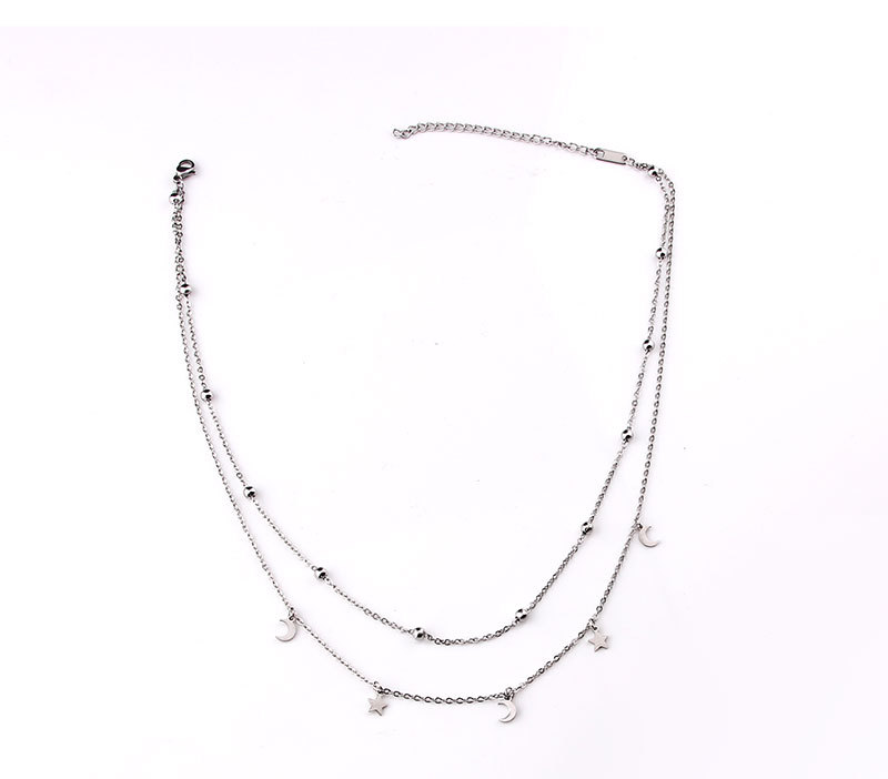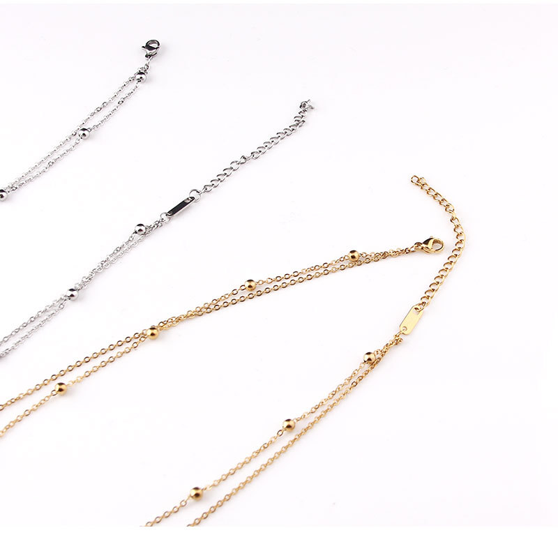 New explosion style stainless steel titanium steel double bead chain cross bead necklace collarbone chain