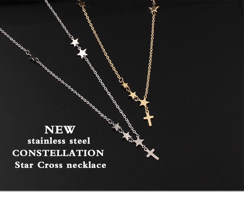 All Products Jewelry & Accessories Necklaces & Pendants New explosion style stainless steel titanium steel double bead chain cross bead necklace collarbone chain