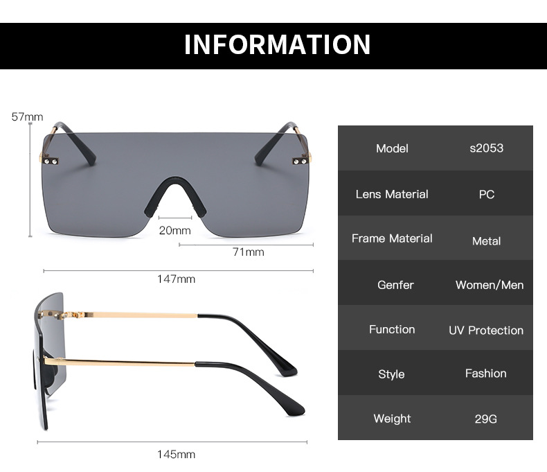 New Large Square Sunglasses Fashion Gradient Men And Women Street Shooting Sunglasses Rimless Glasses