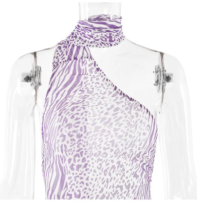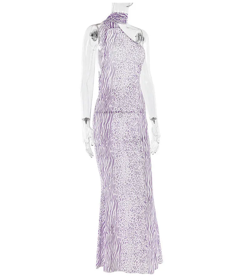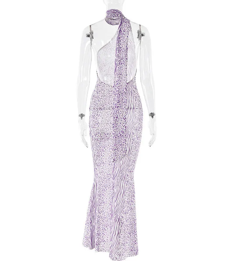 New mesh sleeveless dress with sexy and fashionable leopard print backless neck hanging long skirt