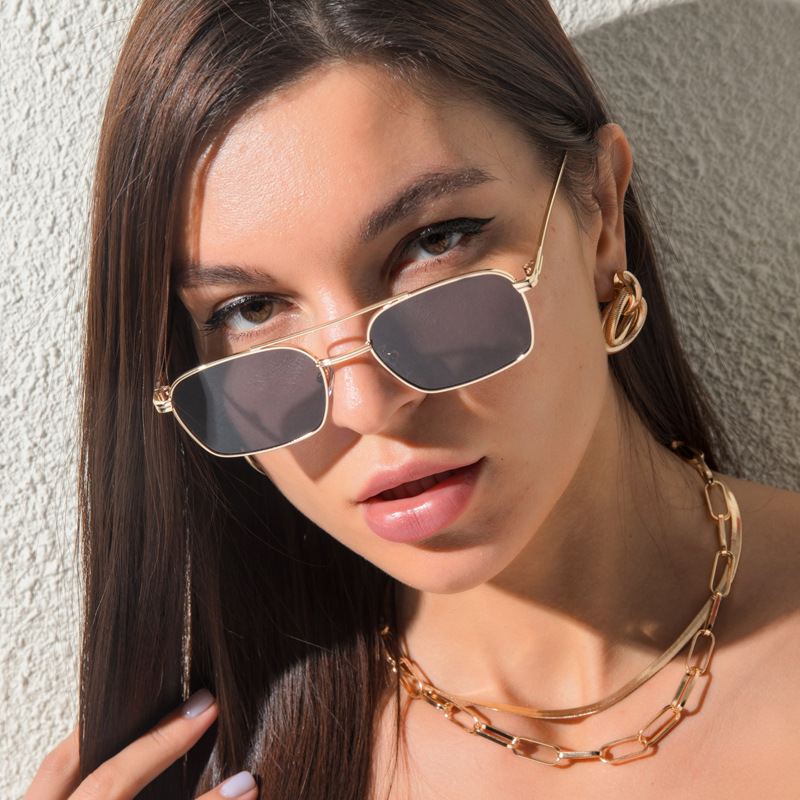 New Square Ocean Piece Sunglasses Men And Women Trend Metal Frame Sunglasses Fashion Double Beam Glasses