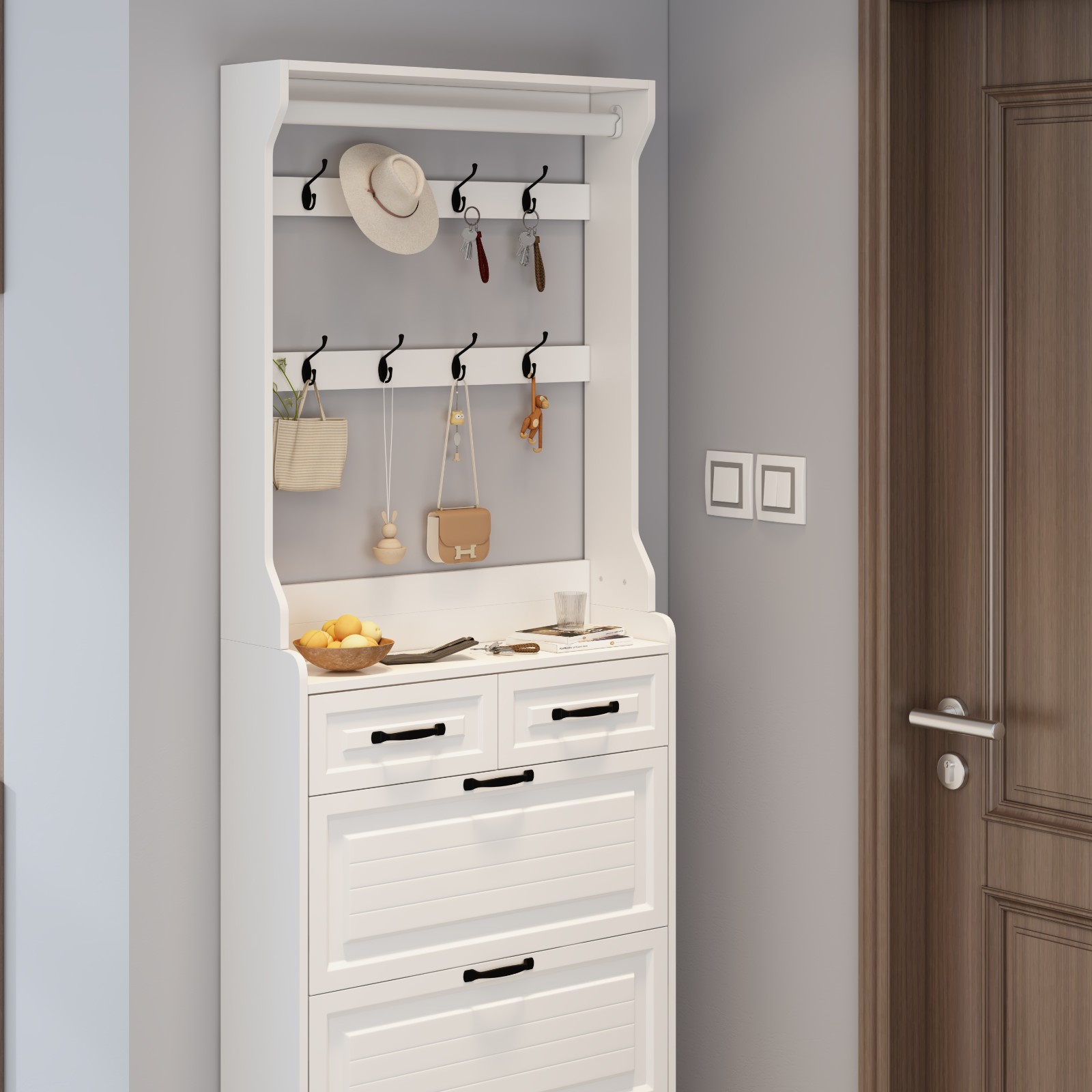 The spacious top and drawers are perfect for keys, walking accessories, or dog leashes. Flexible storage makes going out easier!