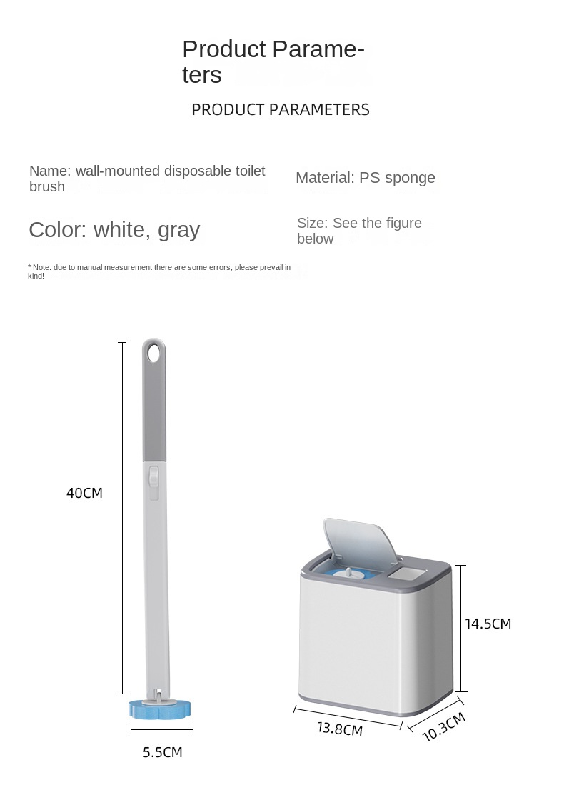 | Wall-mounted Disposable Toilet Brush | PS Sponge | White, Gray | See Below |