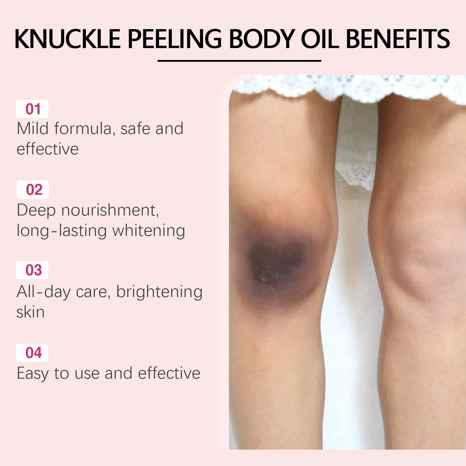 Our body whitening concentrate contains collagen and arbutin. It can effectively remove dark spots on the body, whiten the skin and enhance self-confidence. Helps to improve skin texture, even out skin tone and restore skin softness. Its use method is very simple: clean the body and keep the skin dry, apply an appropriate amount of this product evenly on the body skin, gently massage, so that it is completely absorbed. It can effectively penetrate the skin and provide deep nourishment. Liquid texture, quick absorption, non-sticky.