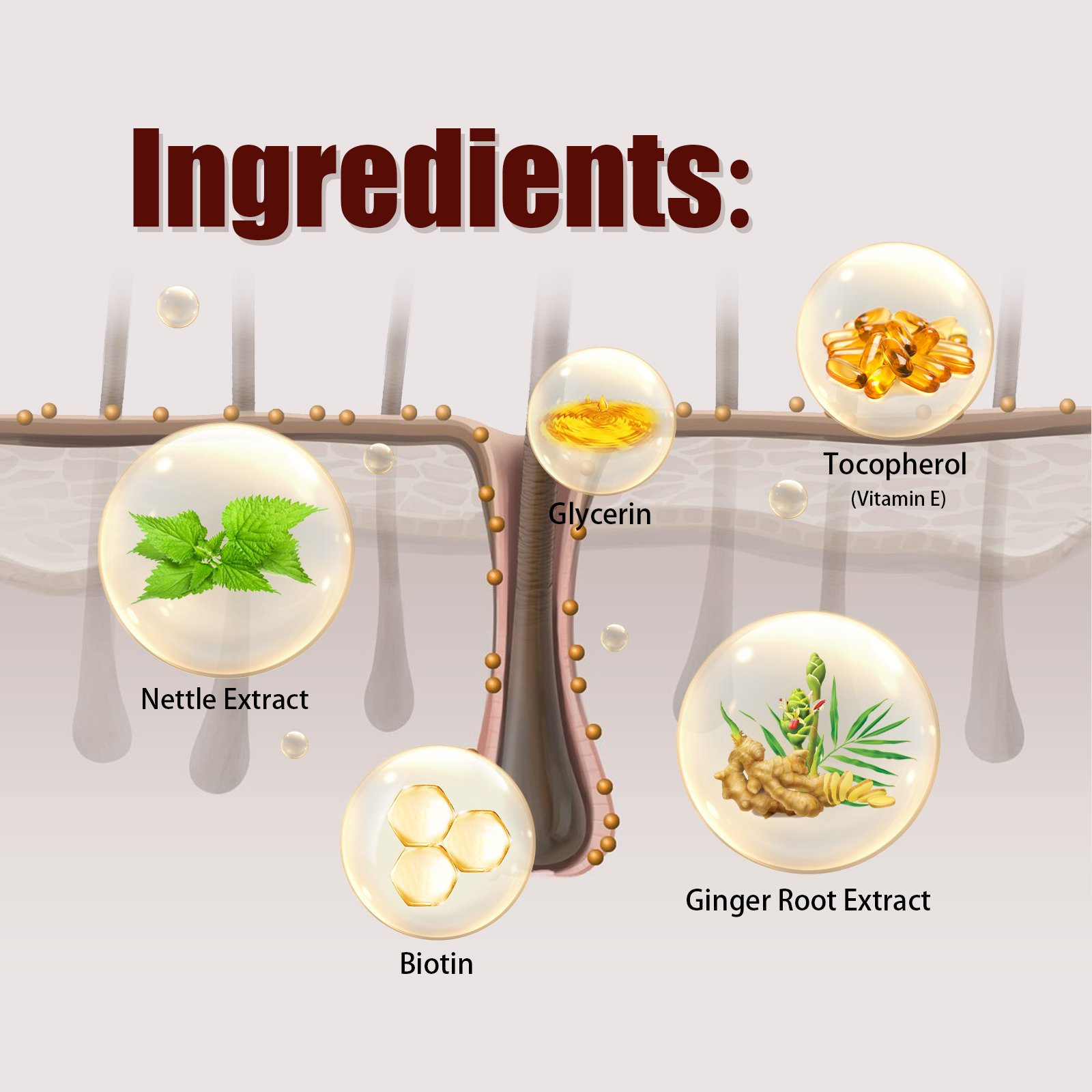 Our hair conditioner contains nettles extract, biotin and ginger root extract. It can increase hair elasticity, promote hair growth, and thoroughly clean pores and sebum dirt. Improve scalp condition and create optimal environment for healthy hair growth. The way to use it is very simple: first wet your hair with warm water, take an appropriate amount of shampoo in the palm of your hand, rub it into a lather, and then evenly apply it to your wet hair. Gently massage scalp with fingertips for 2 minutes, and finally rinse with warm water. After use, it helps to re-darken and brighten hair, repair hair structure, eliminate hair mites, reduce dandruff, tighten hair and prevent hair loss.