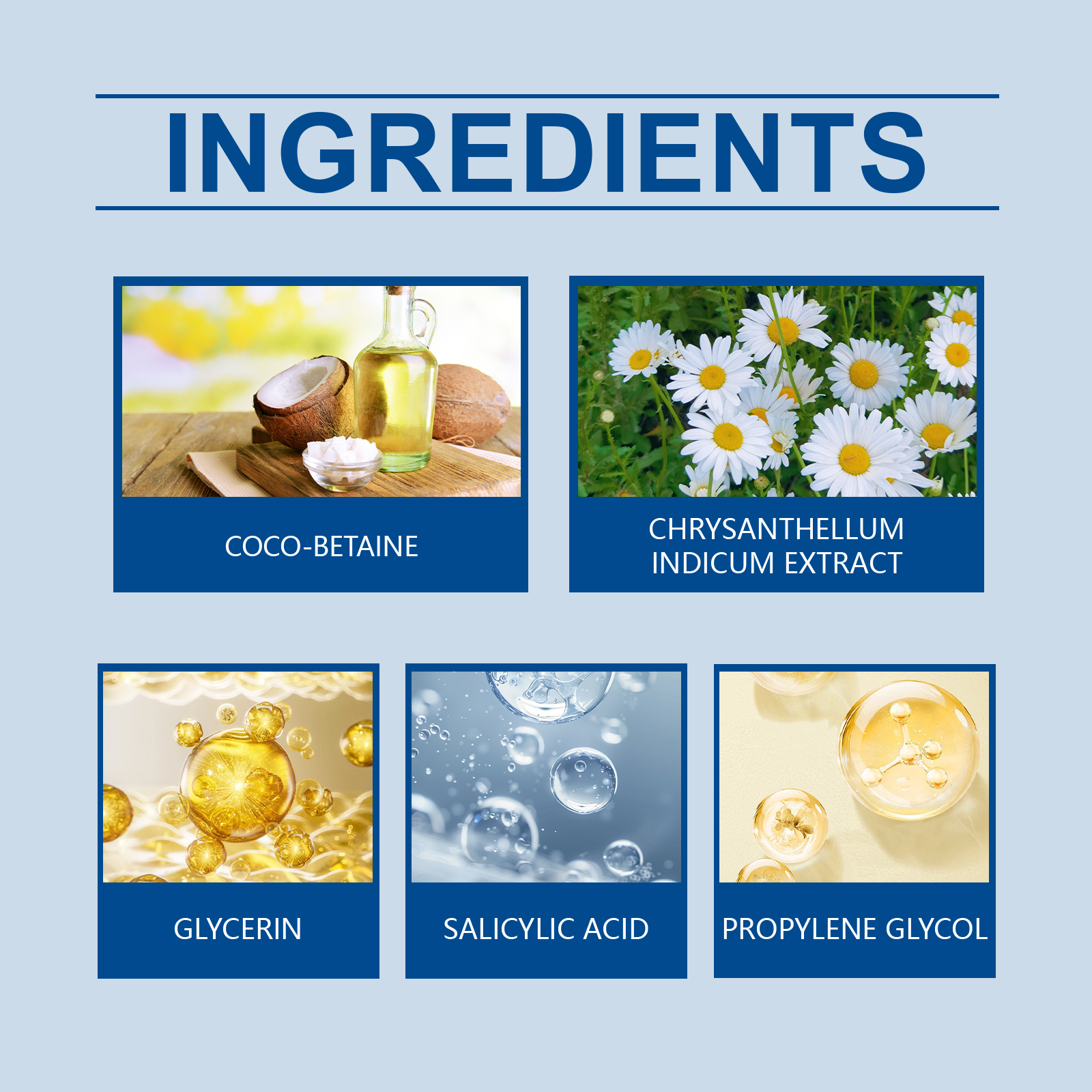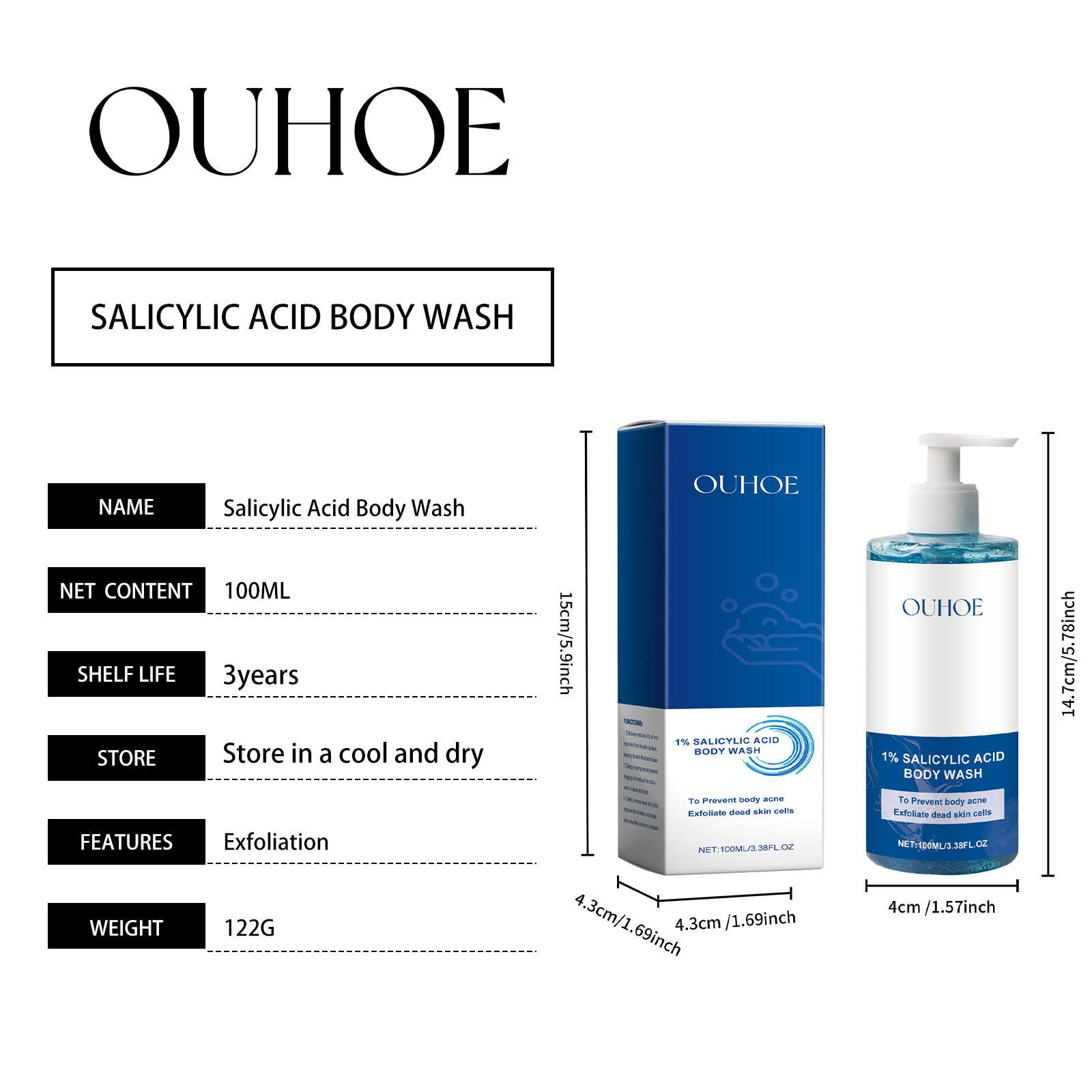 Our salicylic acid body wash contains glycerin, chamomile extract, cocoyl betaine. It can effectively remove skin dirt and keep skin clean. Contains chamomile extract to relieve skin discomfort. Its use method is very simple: 1. Moisturize the body skin with warm water; 2. Take proper amount of body wash, rub into foam, and evenly apply to the whole body; 3. Gently massage until completely clean and finally rinse with water. Soothe skin and reduce discomfort. Gently cleanses and moisturizes skin. Helps regulate skin condition and keep skin healthy.