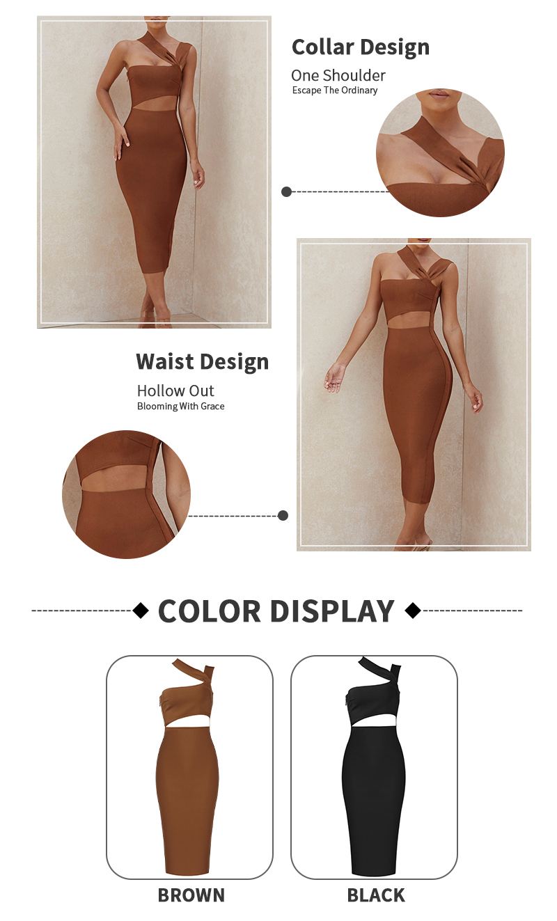 Women's One Shoulder Midi Dress Sexy Waist Hollow Out Design Celebrity Party Club Bandage Dress