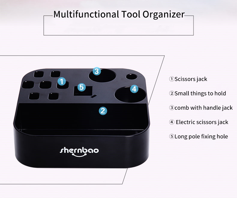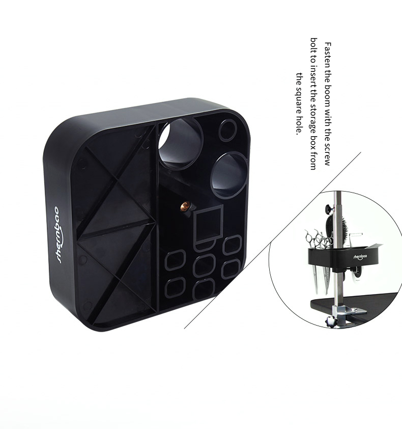 This tool storage box has multiple holes of different sizes, can hold most grooming tools, such as combs, small scissors, trimmers, etc.