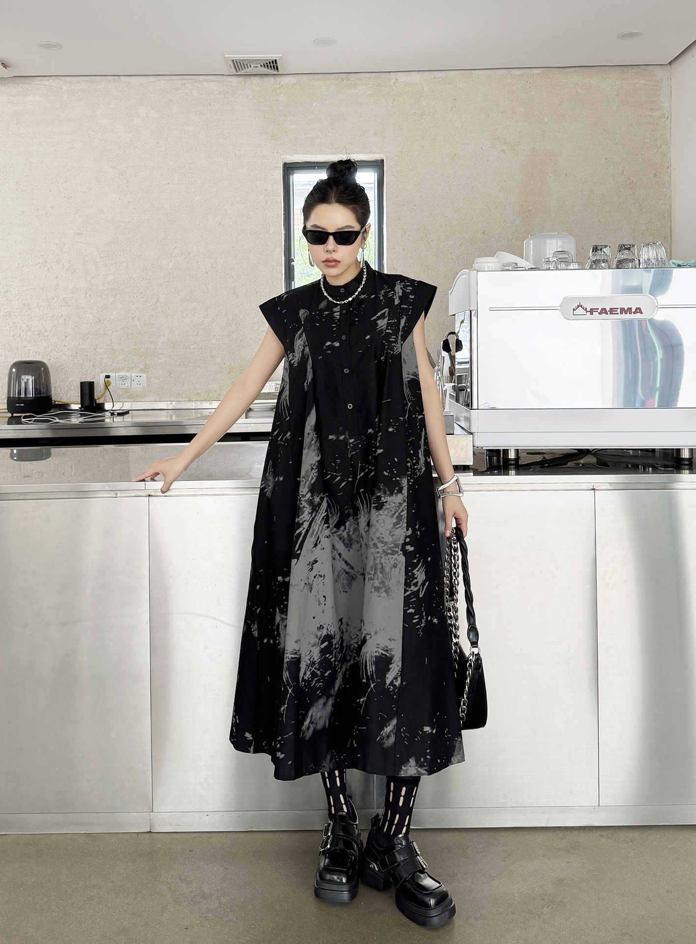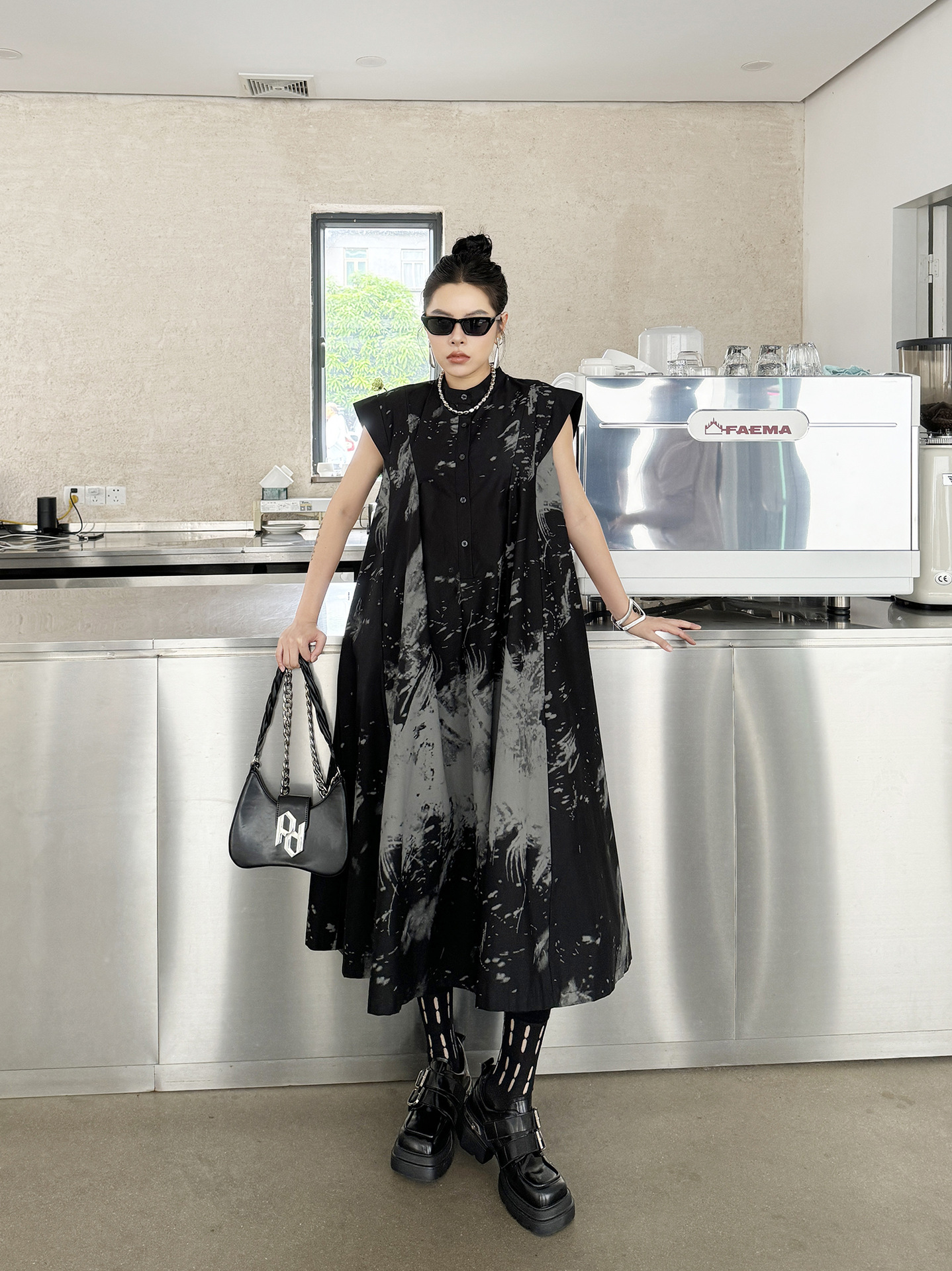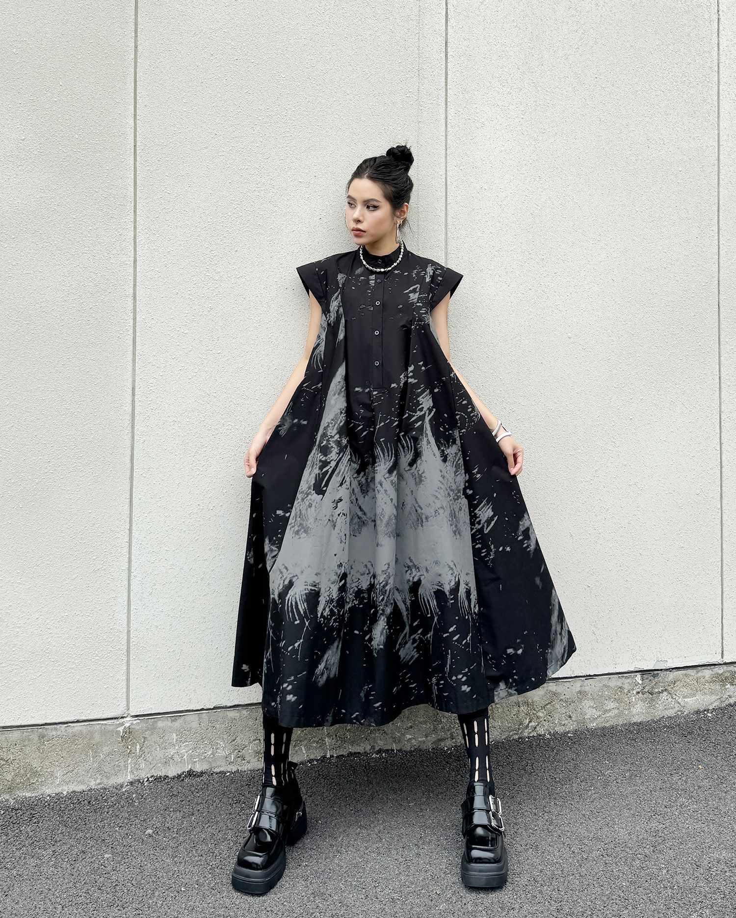 -Neckline: Half high collar