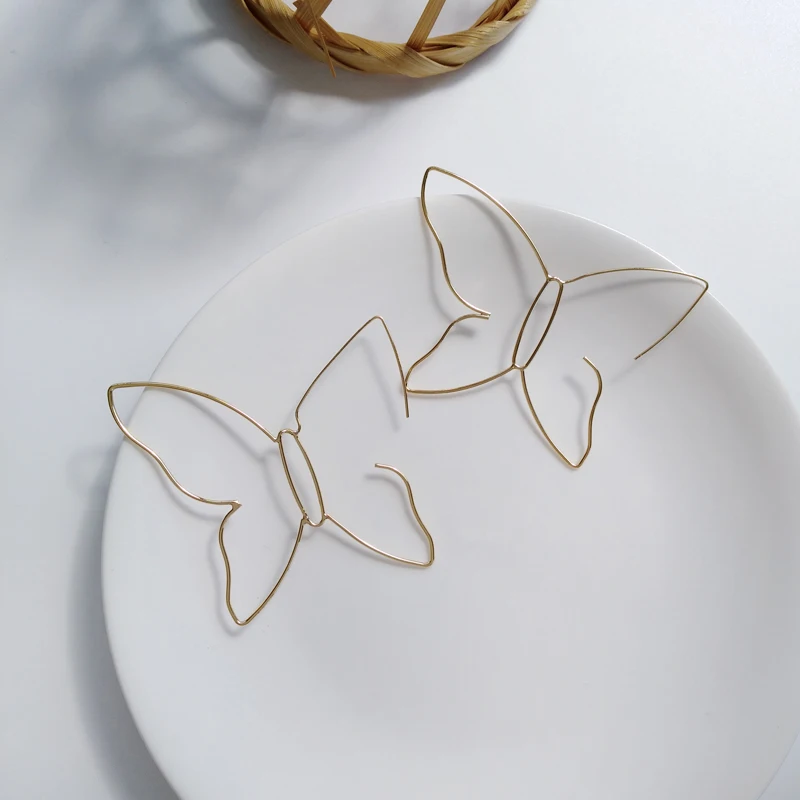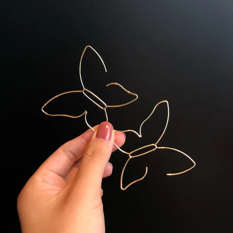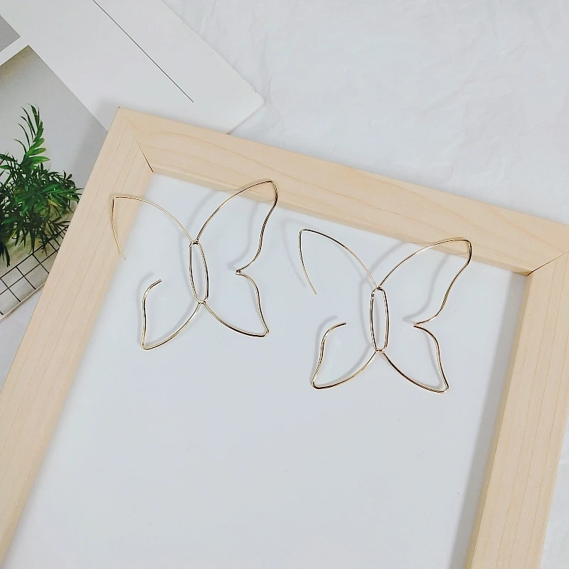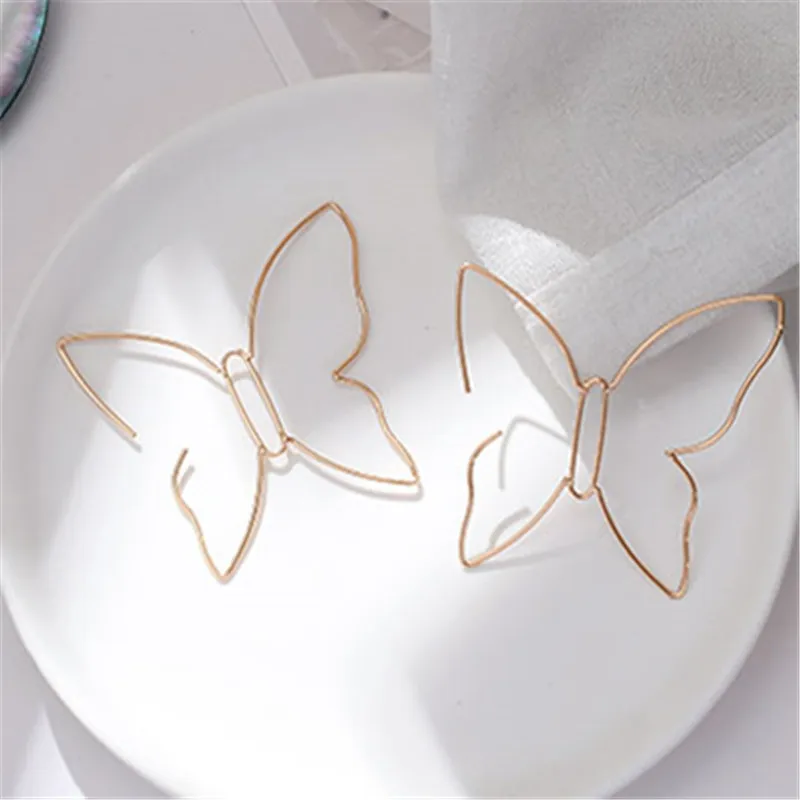 Punk Style Chic Metal Hollow Line Butterfly Stud Earrings for Women Fashion Vintage Party Jewelry Nightclub Brincos Accessories