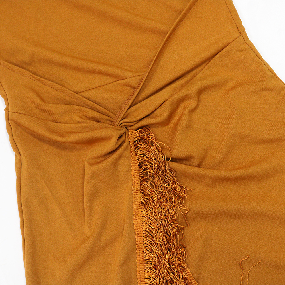 Neckline: One-shoulder neckline