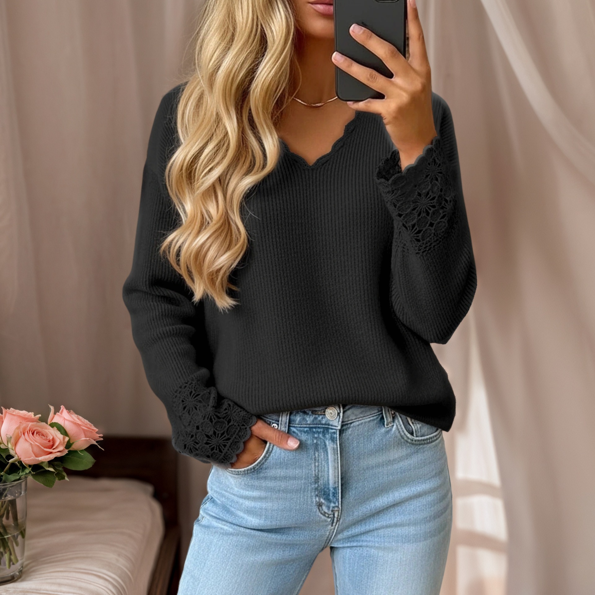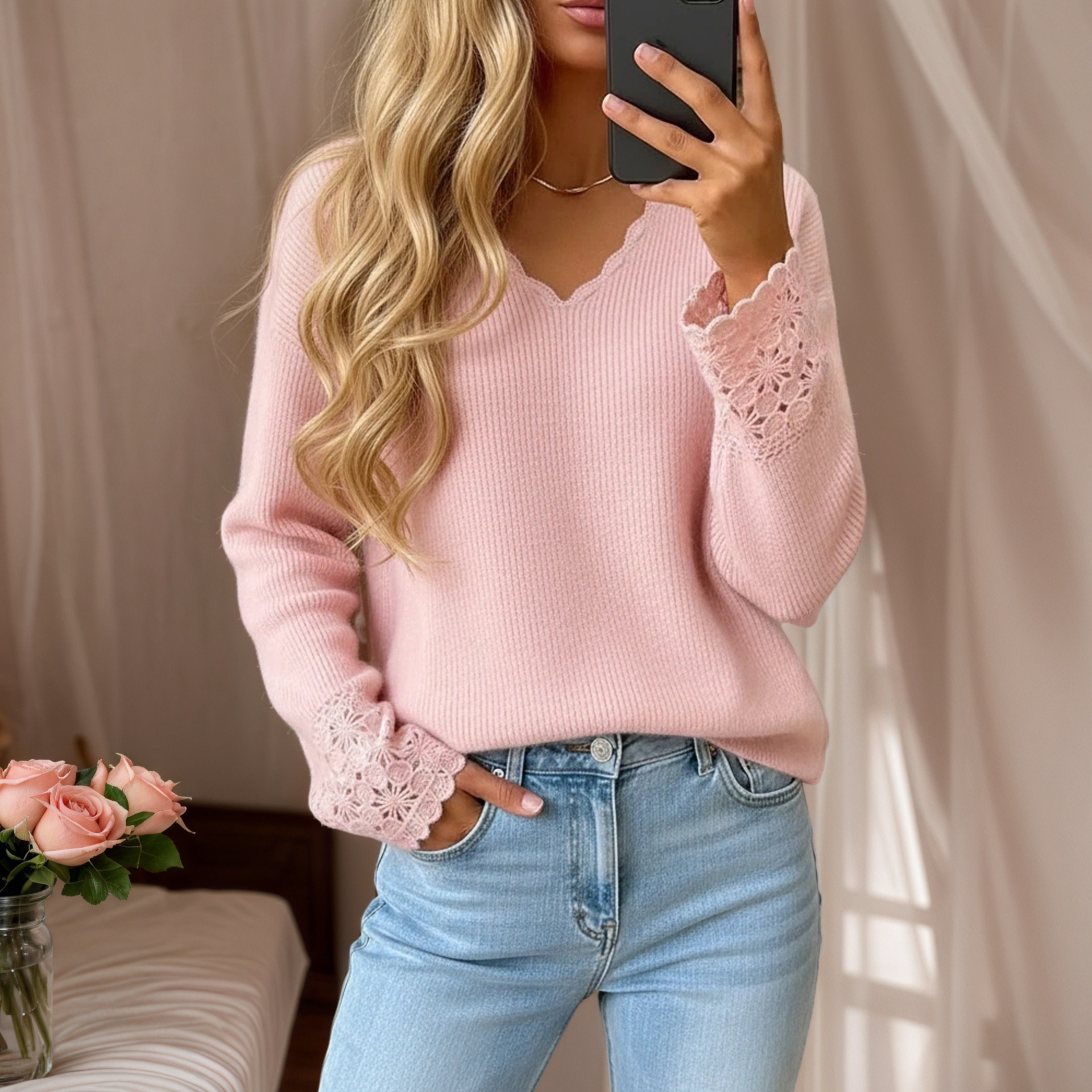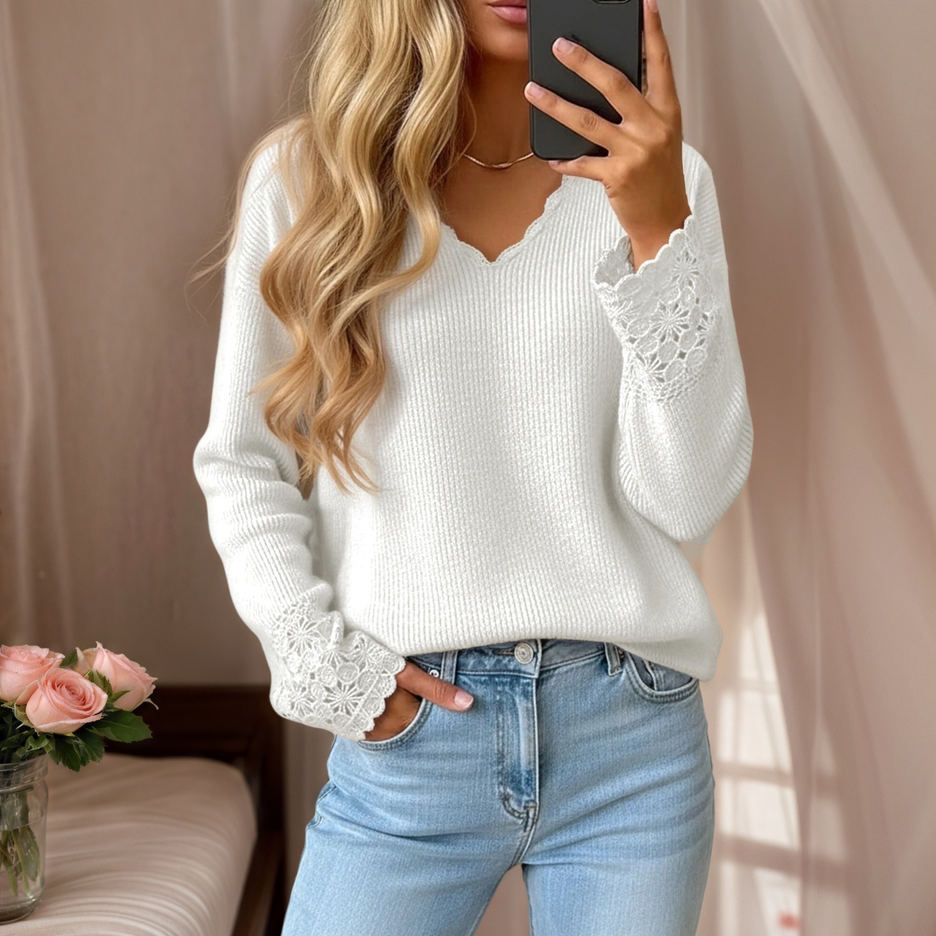 Neckline: V-neck