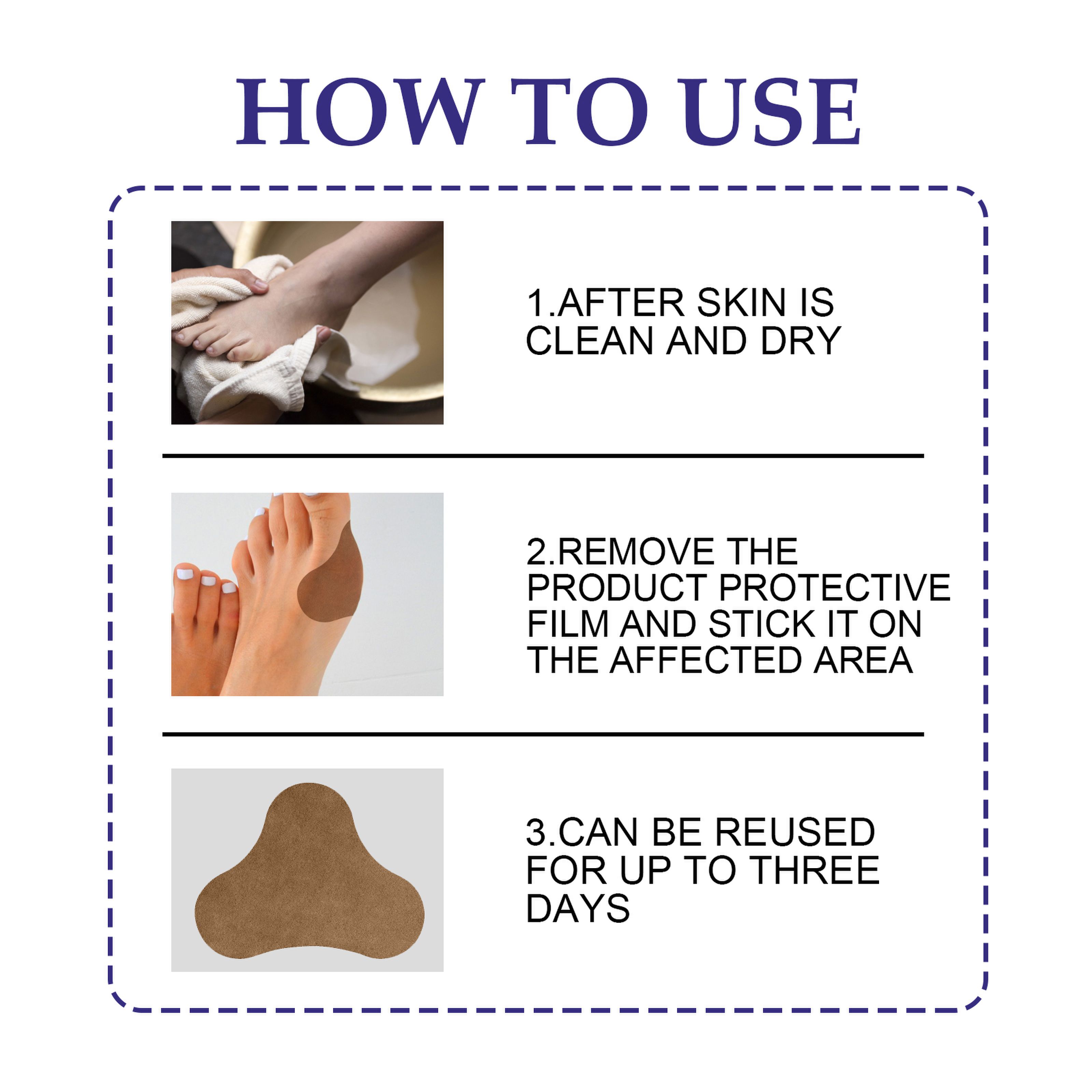 Our Anti Bunion Patch contains licorice, ephedra and wormwood extracts. It can effectively relieve the pain and swelling caused by bunions and correct the foot thumb valgus. Its application method is simple: after the skin is cleaned and dried, remove the product protective film and apply the product to the affected skin for up to three days. Relieve bunion swelling and pain.