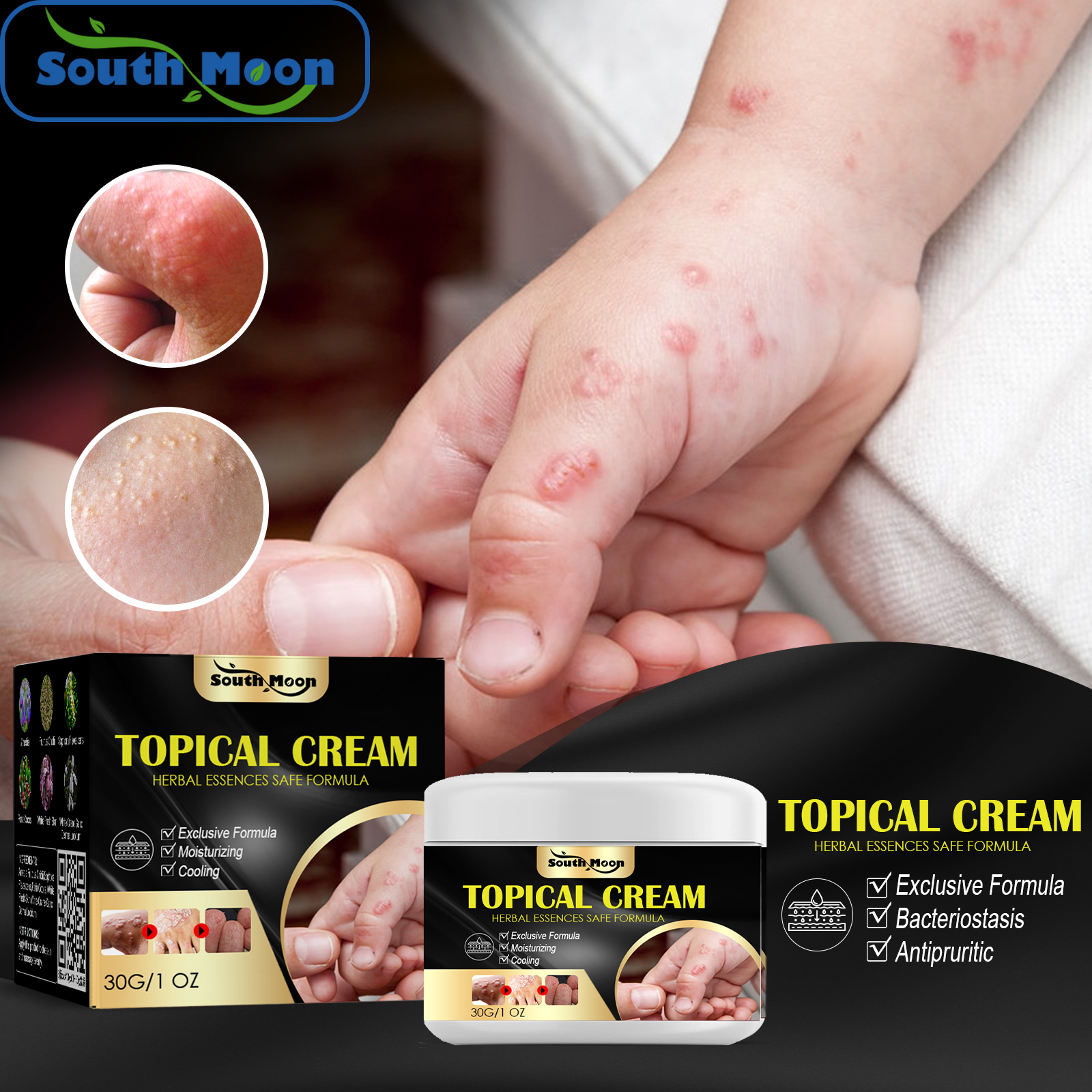Our anti-itch cream contains white crane Ganoderma and snake seed. It can relieve itchy skin, improve redness, and prevent mosquito bites. Its use is very simple: apply the product to the skin, massage evenly. And it can effectively relieve the skin itching caused by mosquito bites and give you a good night"s sleep.