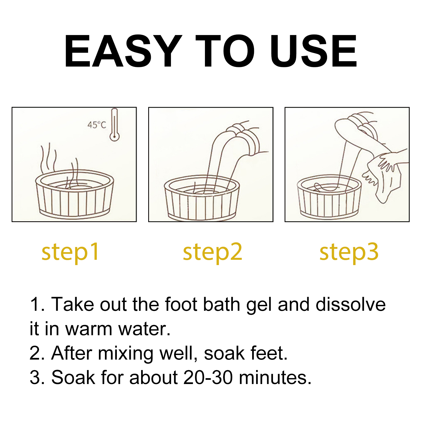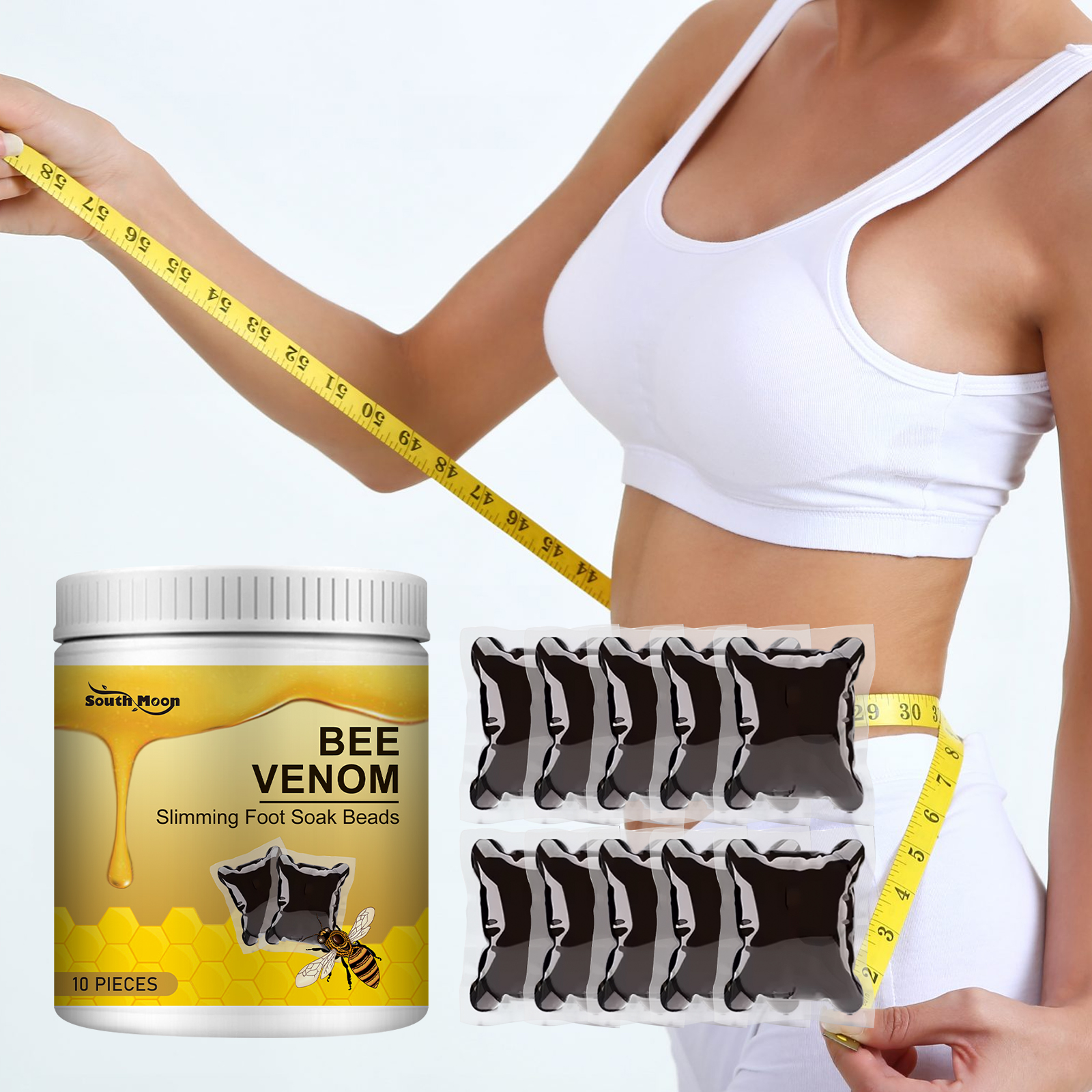 Our bee Venom Foot Gel contains bee venom, coffee extract and peppermint extract. It can deeply nourish the foot skin, provide lasting moisture, increase the softness of the foot, and make the foot skin smooth and delicate. The way to use it is very simple: 1. Take out the foot shower gel and dissolve it in warm water. 2. After mixing well, soak feet. 3. Soak for 20-30 minutes. Contains bee venom essence, promote foot blood circulation, effectively transport nutrients and oxygen, enhance body energy, help lose fat, let you have a beautiful figure.