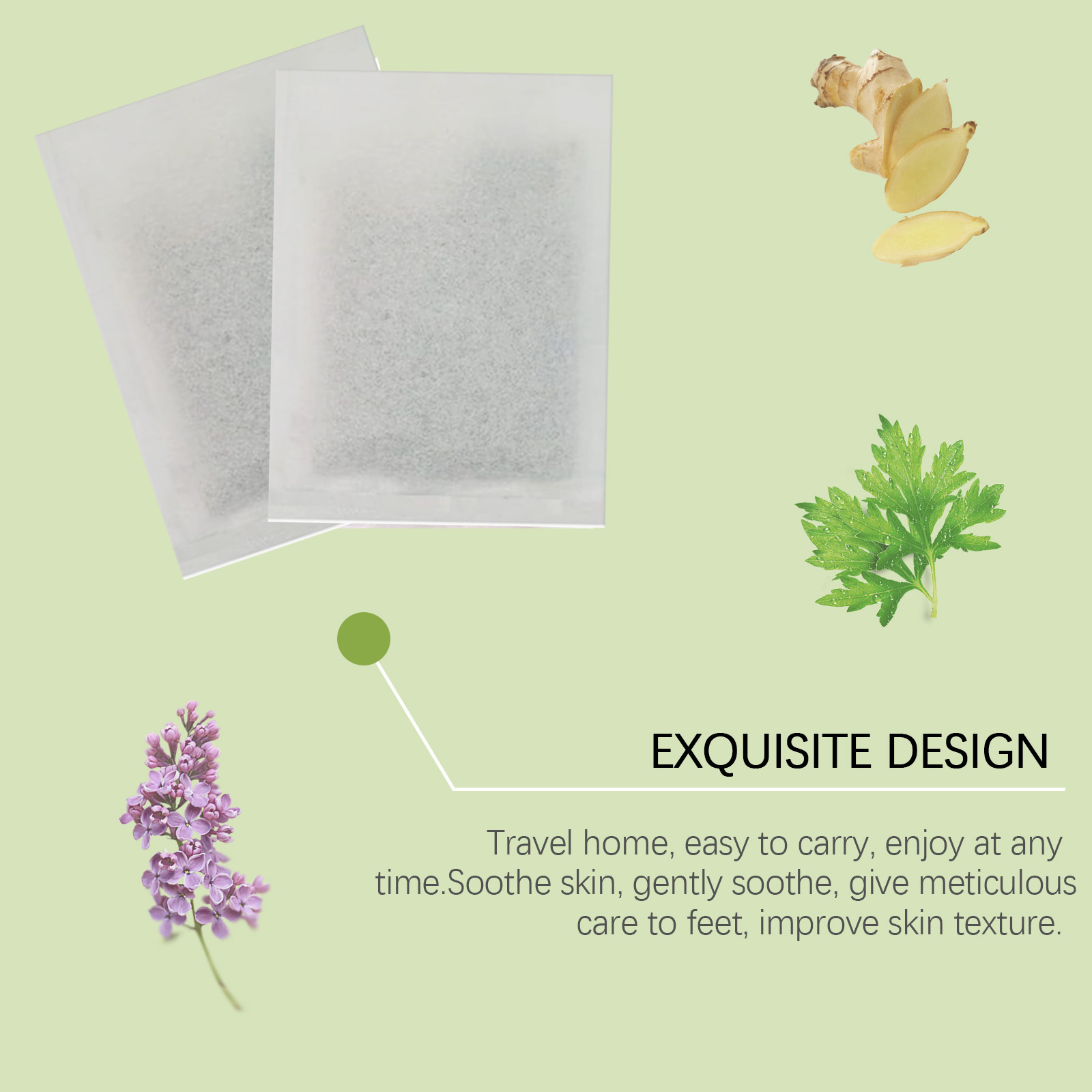 Our ginger foot treatment includes safflower extract and mugwort extract. It can activate the body to promote health, aid circulation, and enhance the vitality of the feet. The way to use it is simple: take a foot bath kit, prepare a foot bath tub or foot tub deep enough, and the right amount of hot water. Place the foot bath bag in hot water and let it soak to release the active ingredients, then enjoy your foot bath time. After 20-30 minutes, gently dry your feet with a dry towel. And travel home, easy to carry, enjoy at any time. Soothes the skin, gently soothes the feet, and improves the skin.