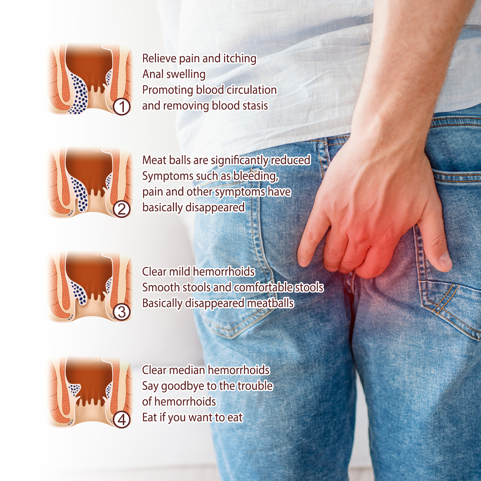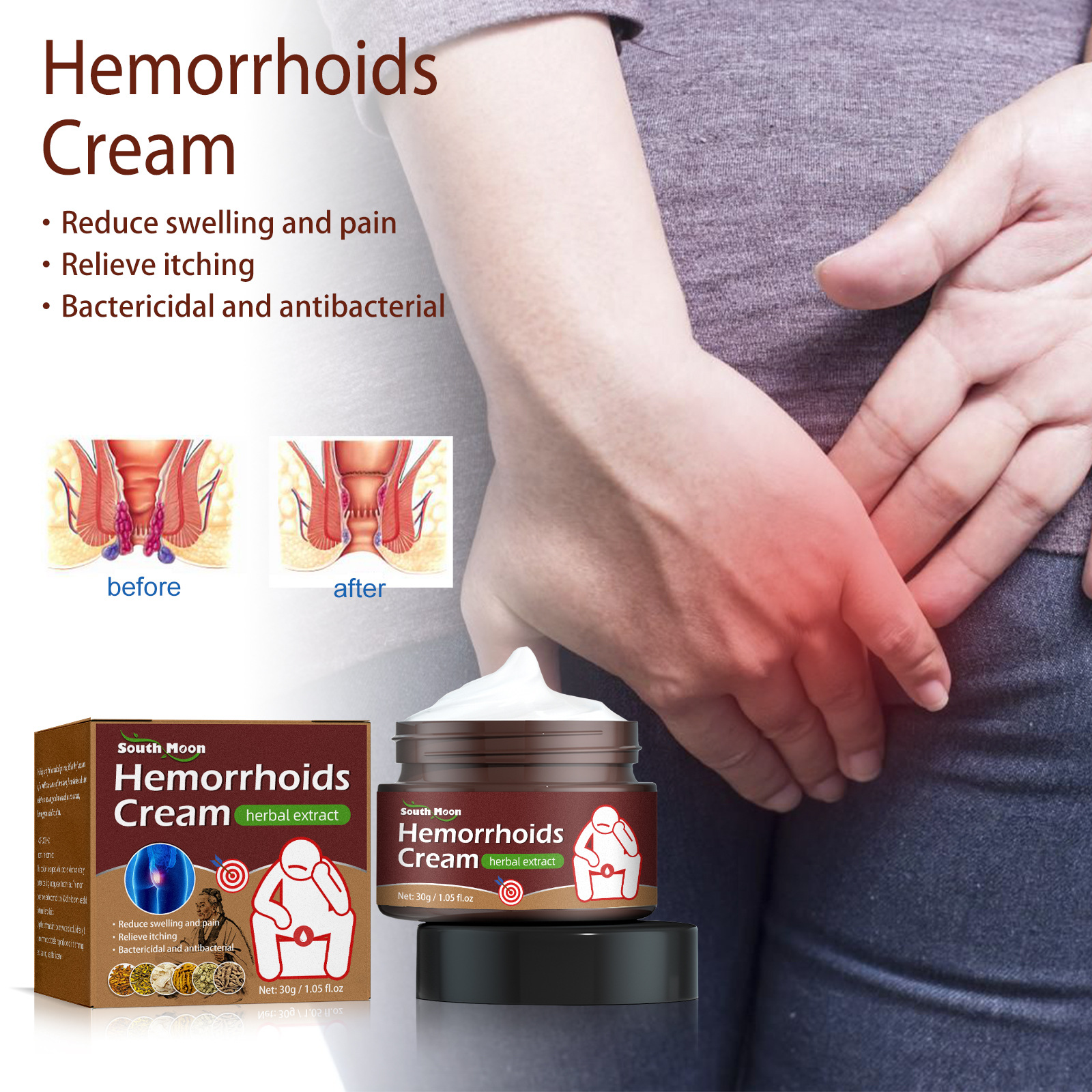 Our hemorrhoid relief cream contains coptis and Angelica. It can relieve pain and itching anal swelling, promote blood circulation, and remove blood stasis. Its use is simple: Internal hemorrhoids: This product comes with a booster that draws the medication directly out and compresses it into the anus. It doesn"t have to be much, just 3/1 of the braggers. External hemorrhoids: Dip a cotton swab into the ointment and apply directly. It is recommended to take it once in the morning and once in the evening for better results. And can remove the middle hemorrhoids, say goodbye to the trouble of hemorrhoids.