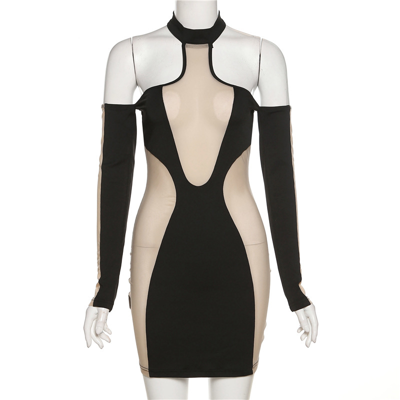 Name: halter neck see-through open back dress