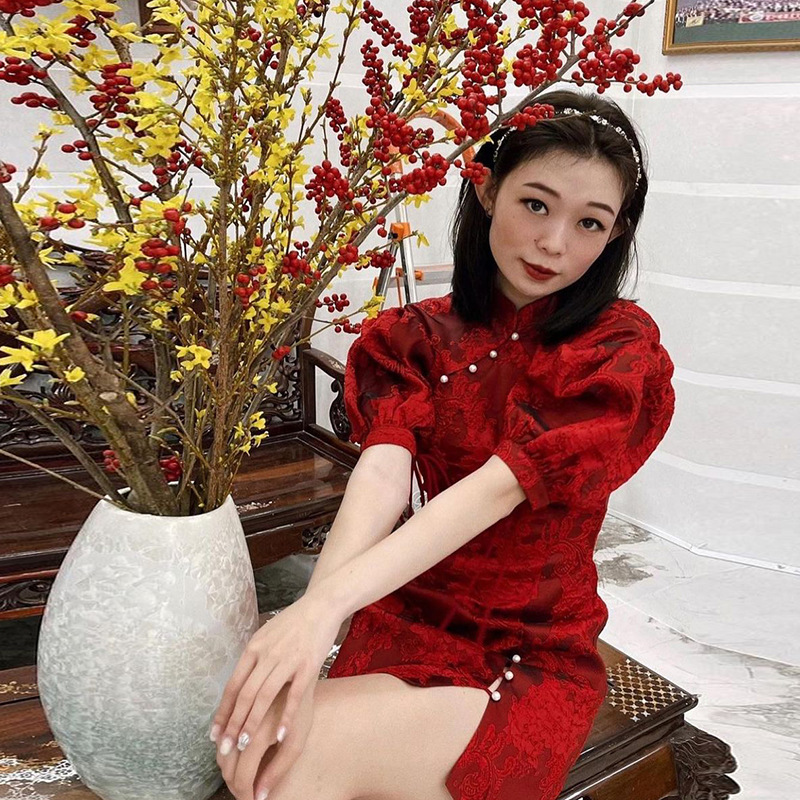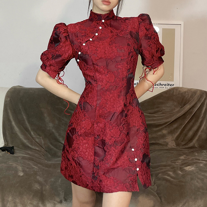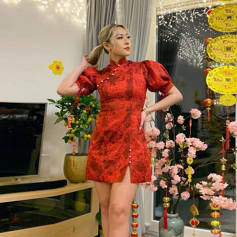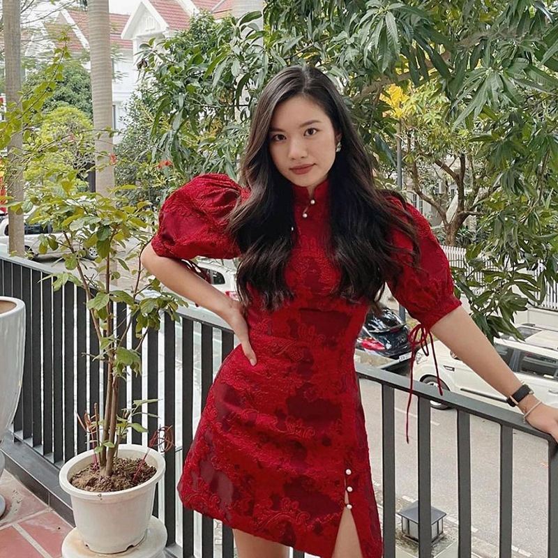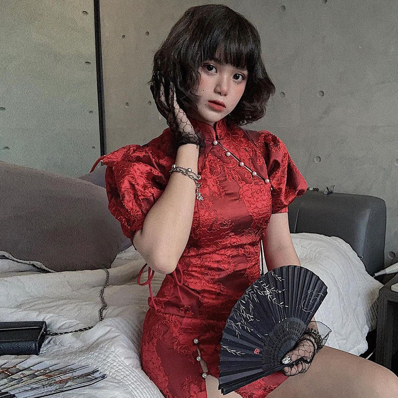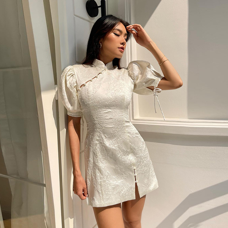 Product name: slit temperament slim flag dress