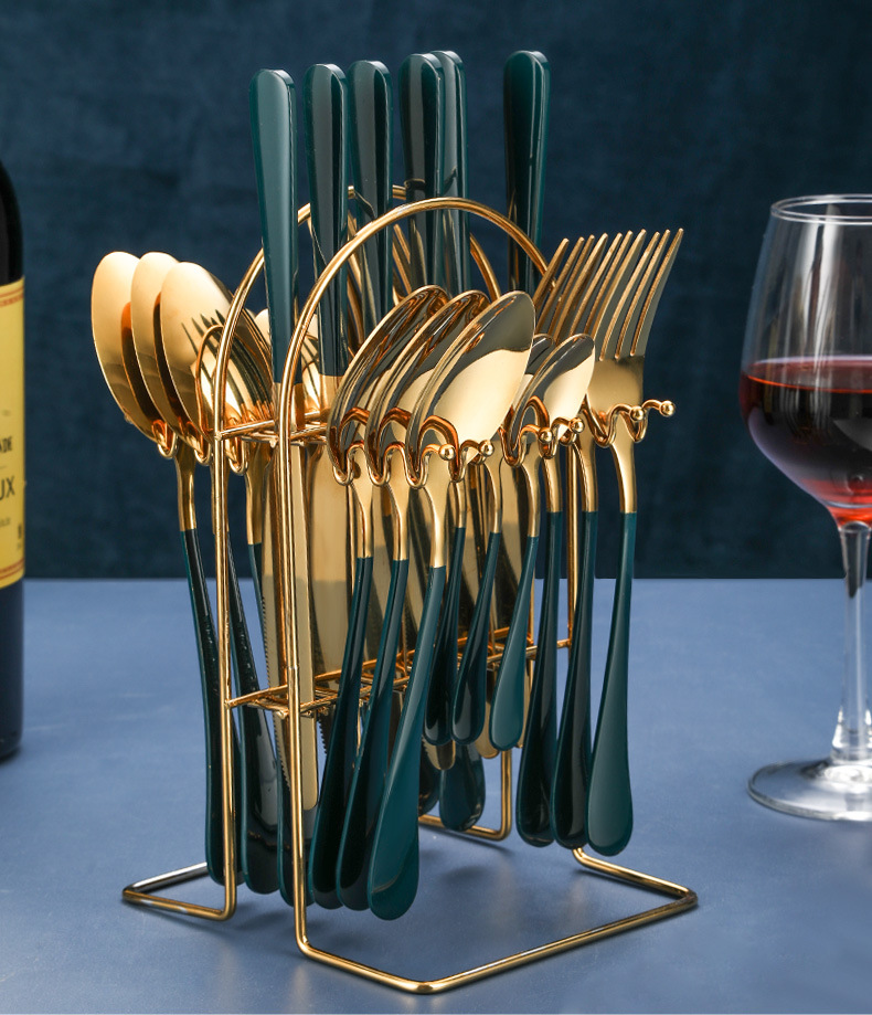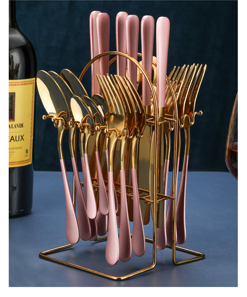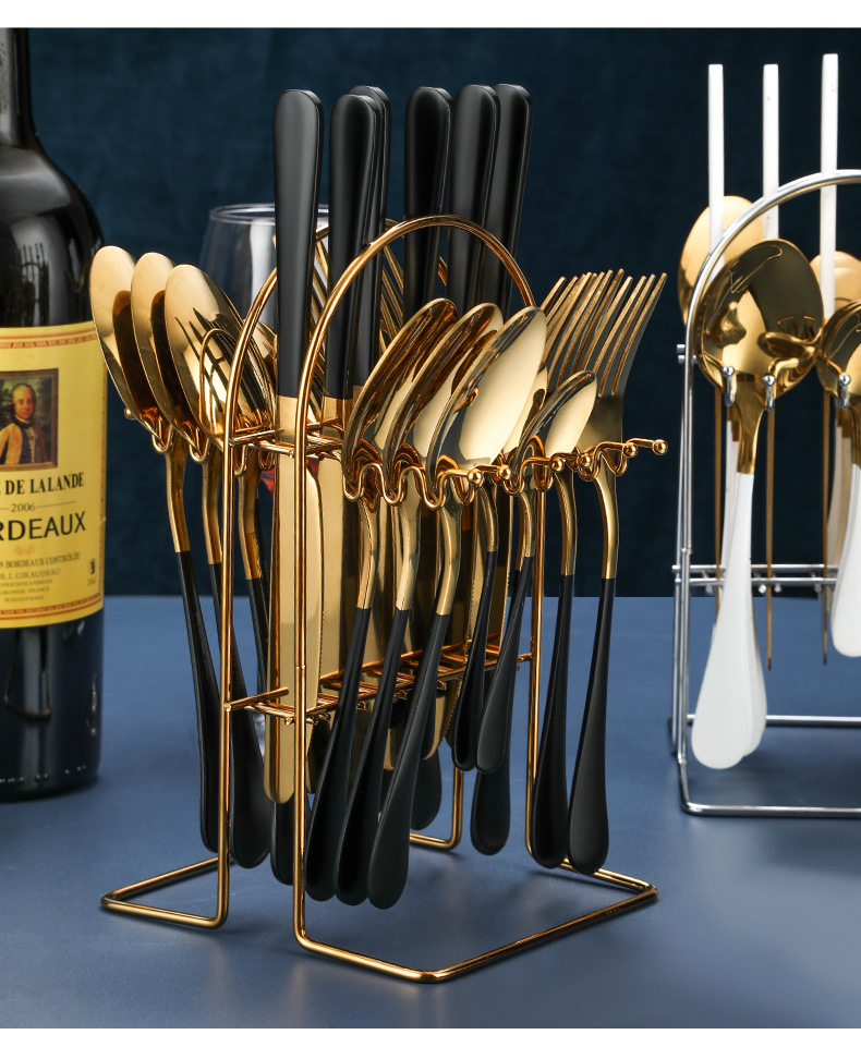 Set list: Knife*6 Fork*6 Tablespoon*6 Teaspoon*6 Storage Rack*1