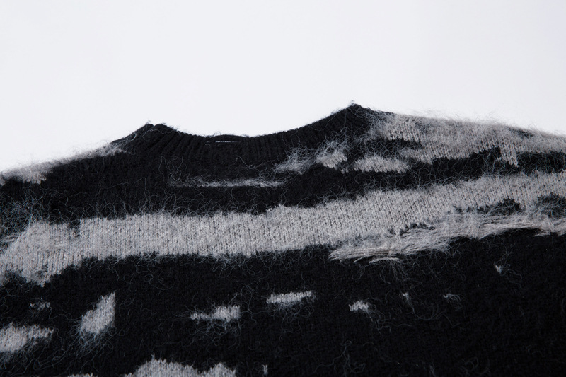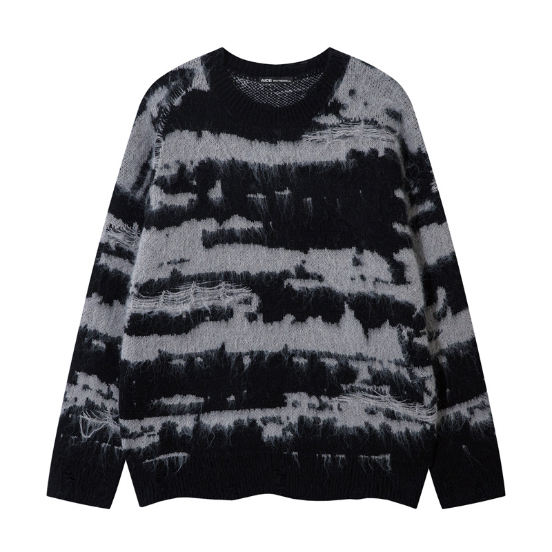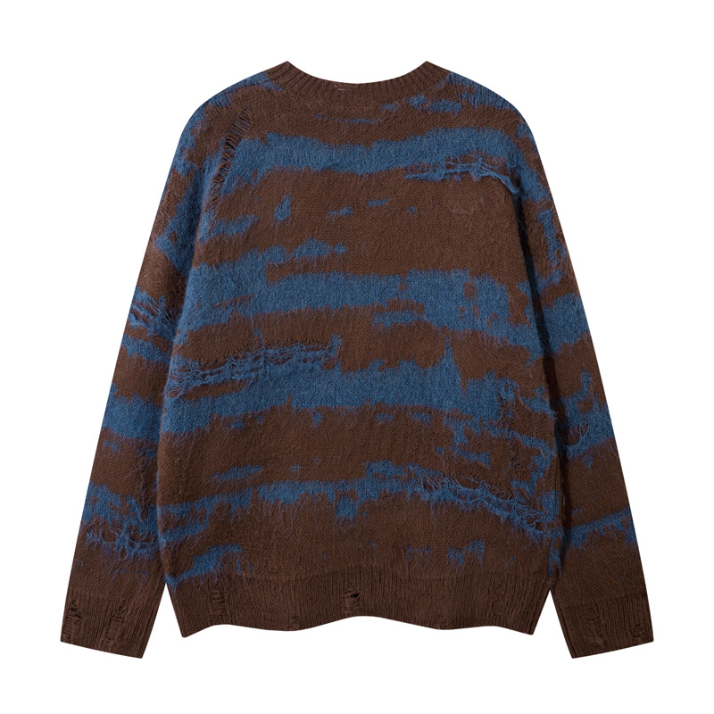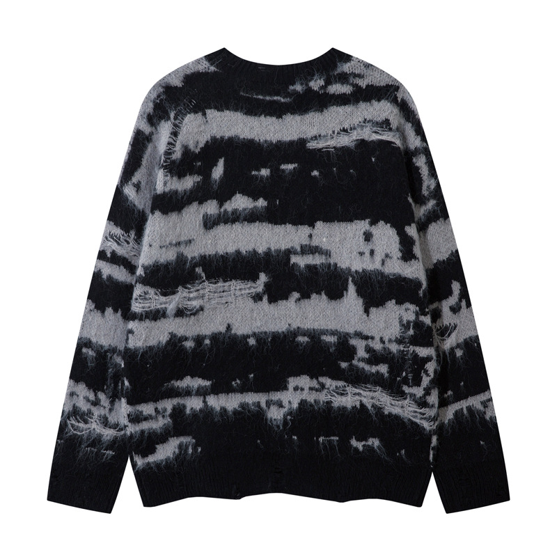 Pattern Type: Color blocking irregular stitching stripe hole