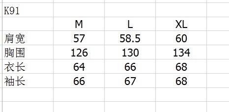 | K91 | M | L | XL |