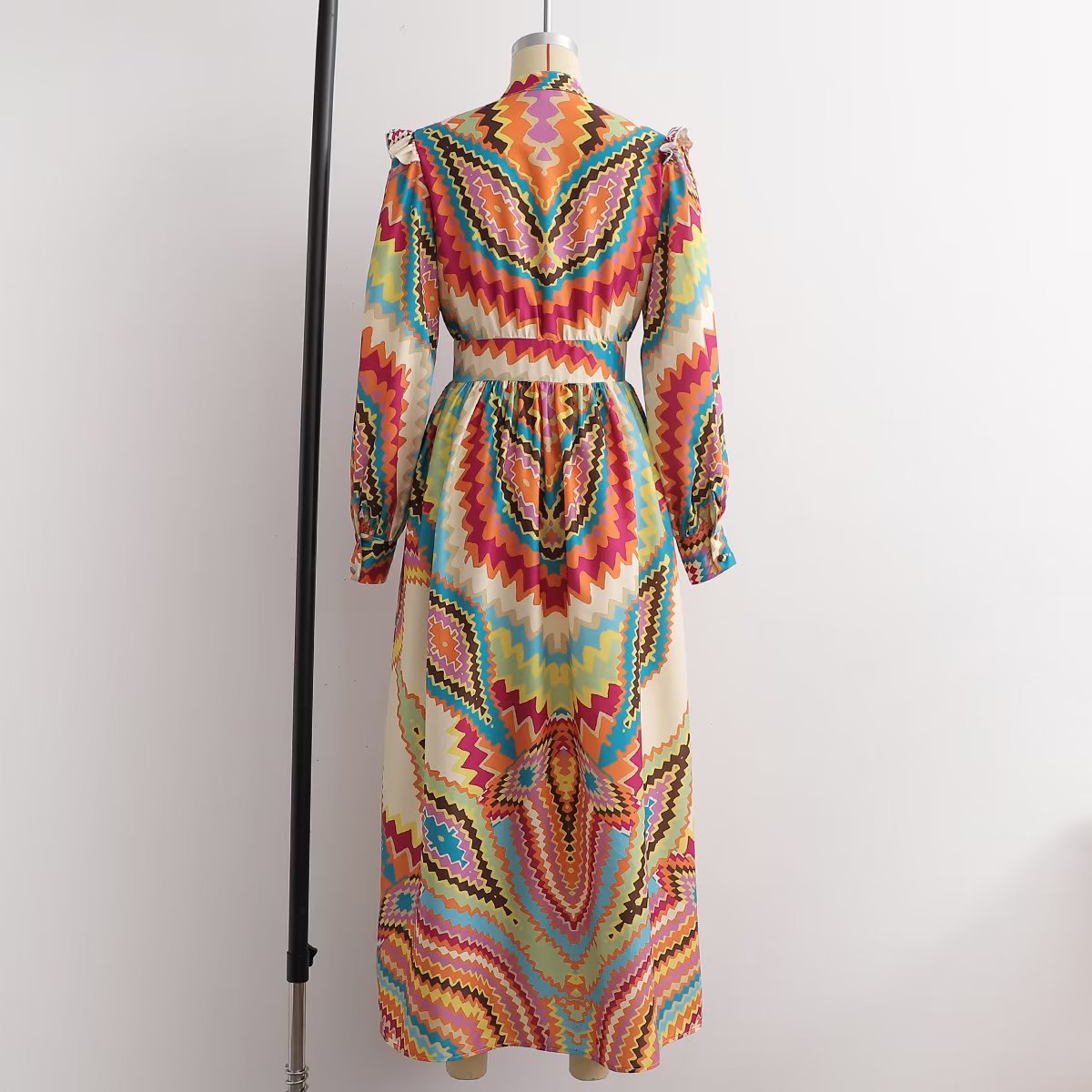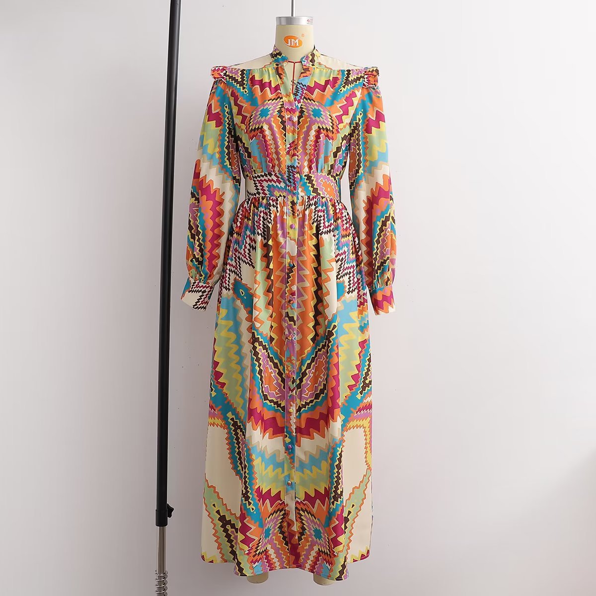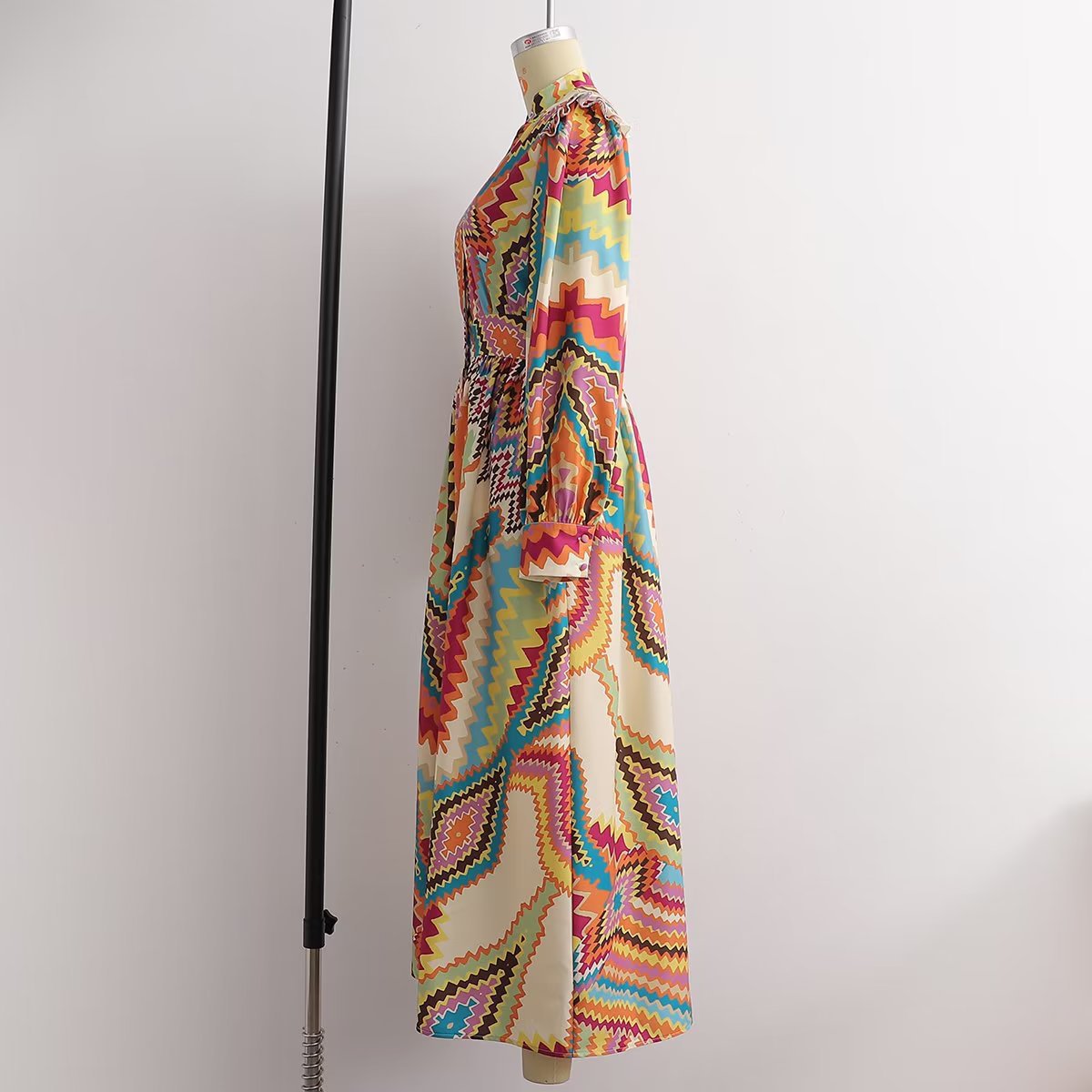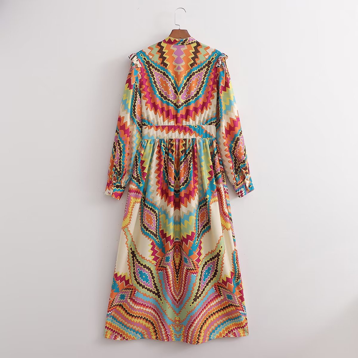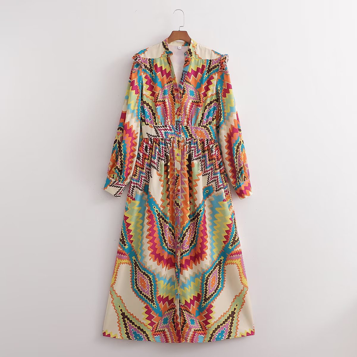 Summer New Women's Retro Casual Long Sleeve Positioning Flower Dress Long Skirt 6039