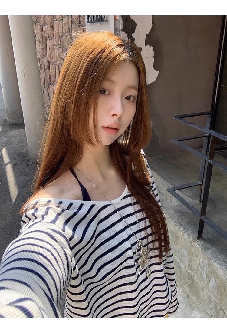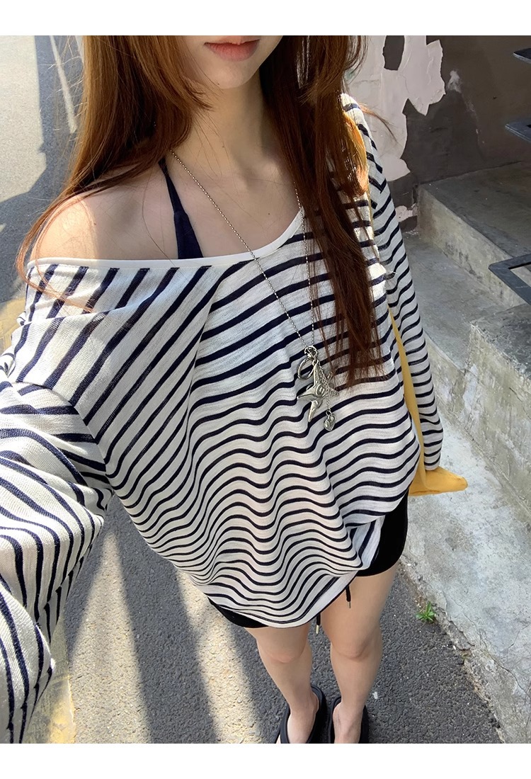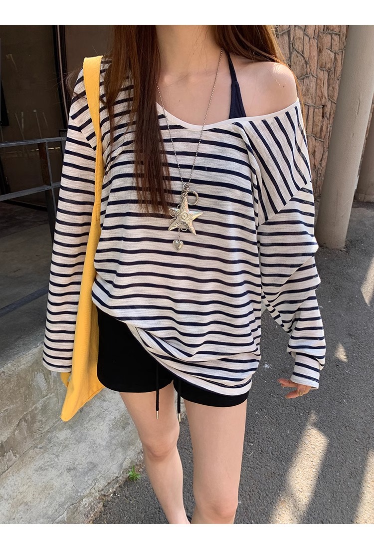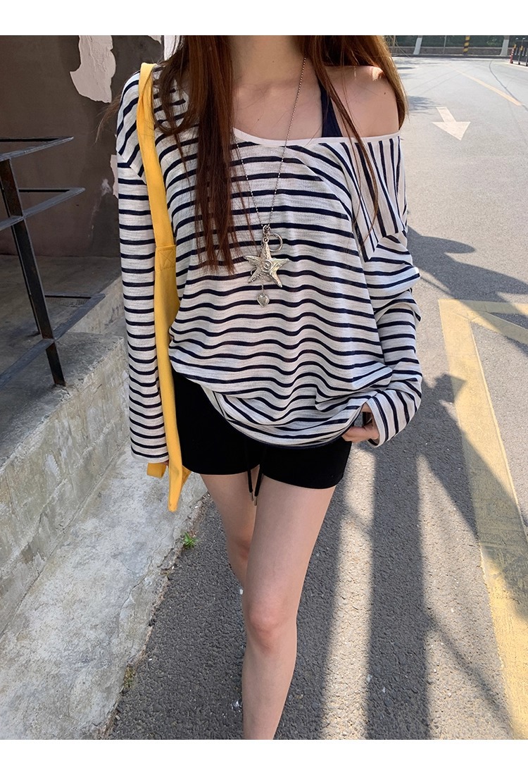 Color: Blue and White Stripe, Dark Blue Strap Top