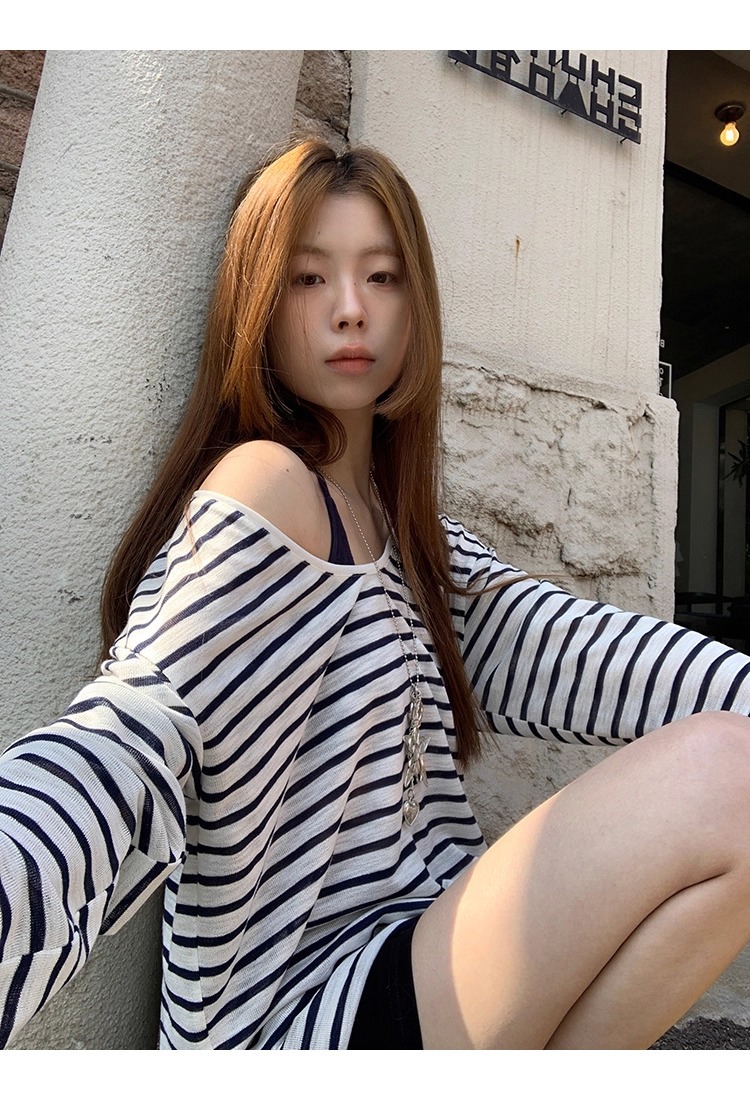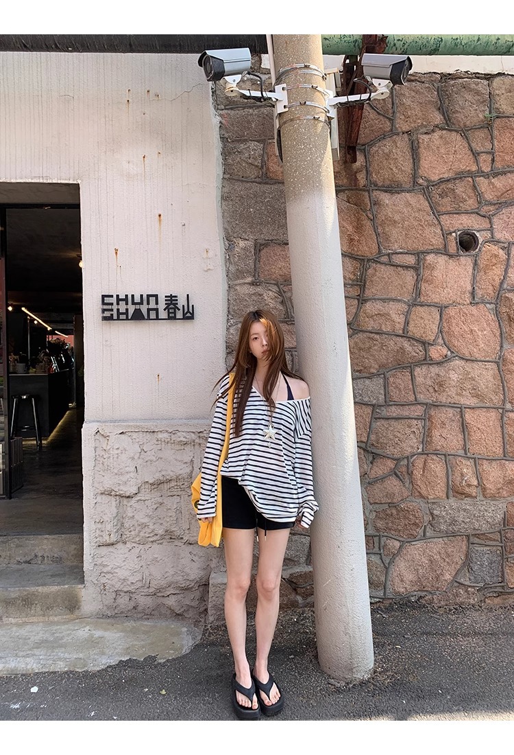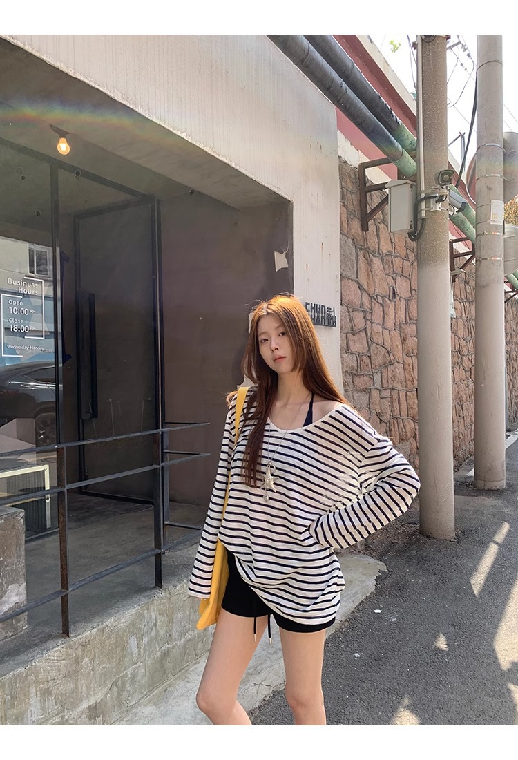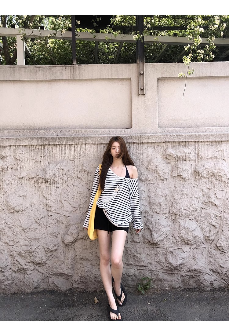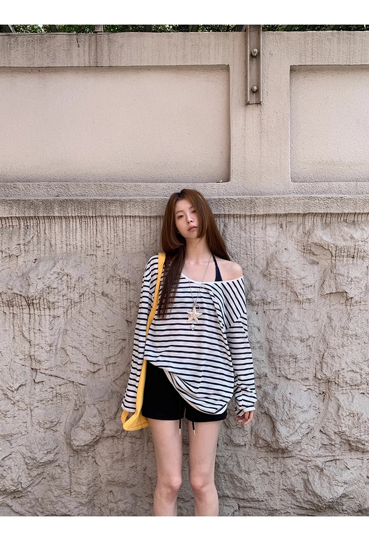 Color: Blue and White Stripe, Dark Blue Strap Top
