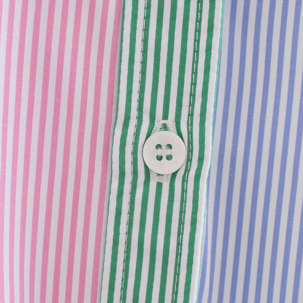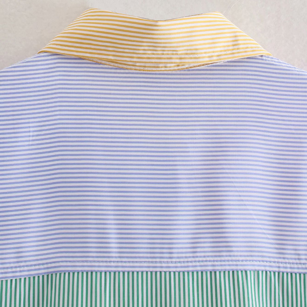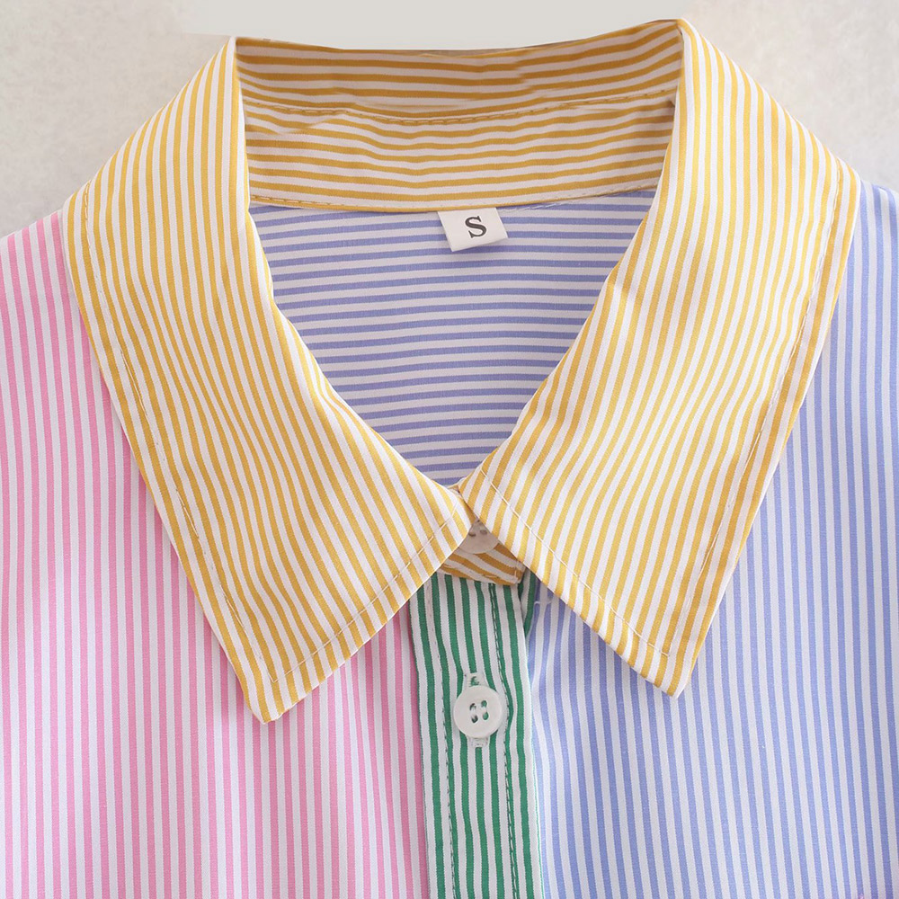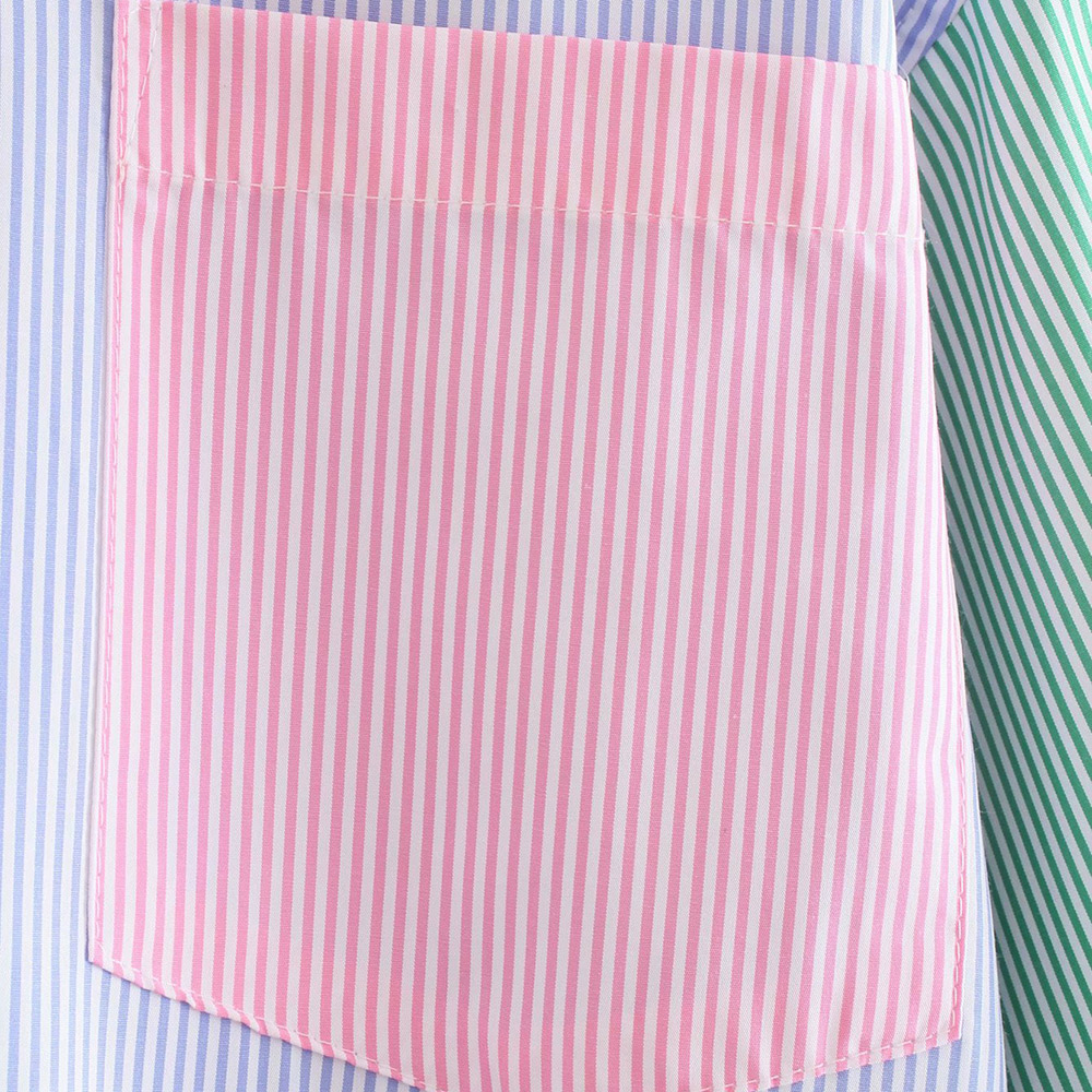 TRAF Women Fashion Patchwork Color Striped Oversized Blouses Vintage Long Sleeve Pockets Female Shirts Blusas Chic Tops