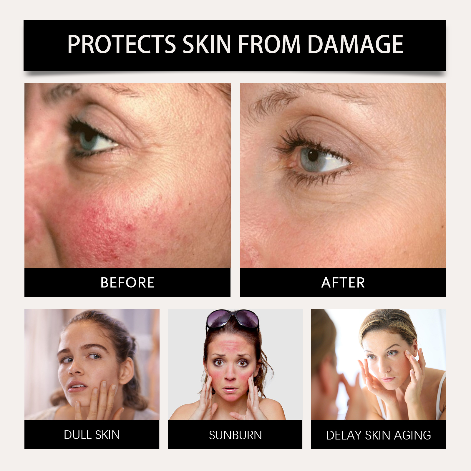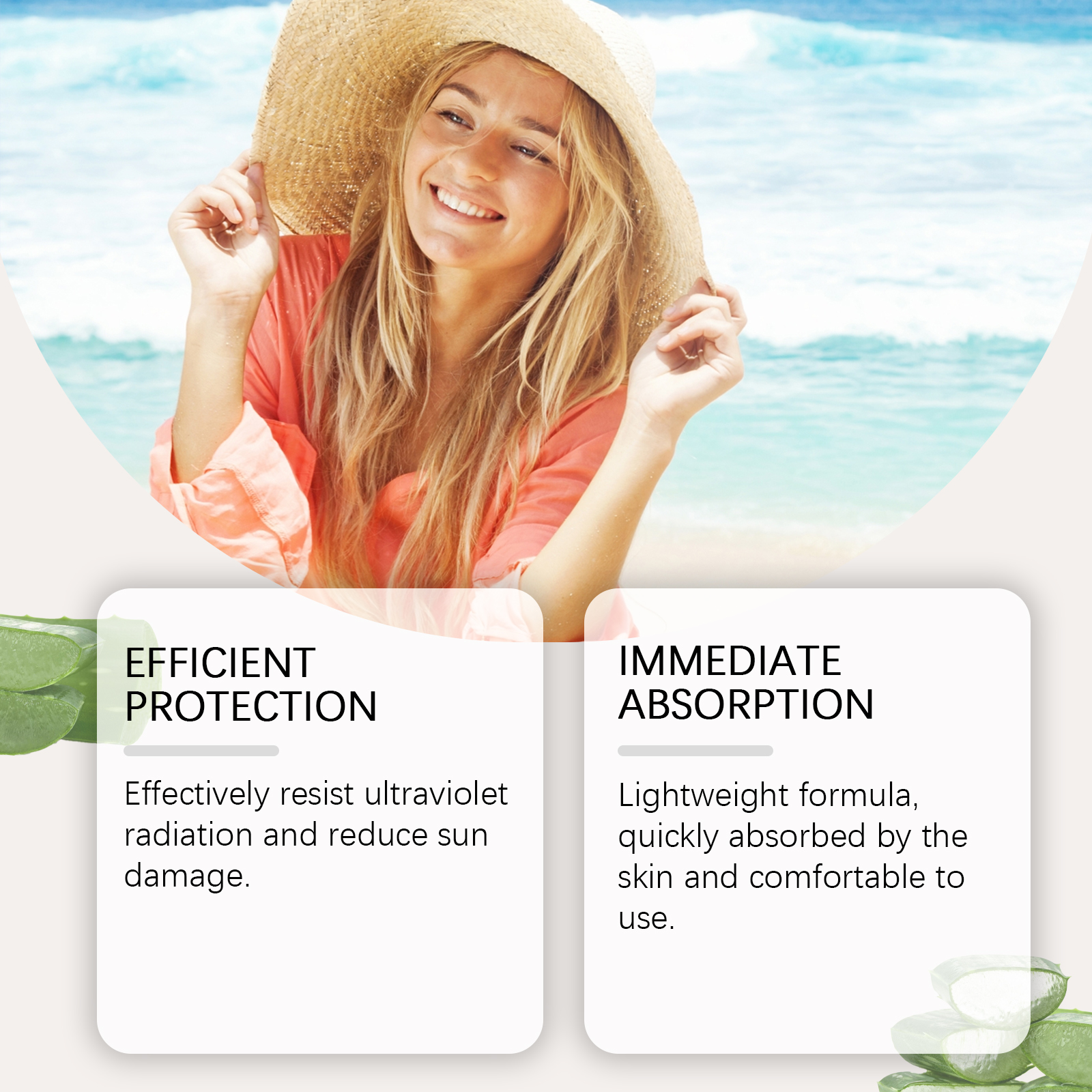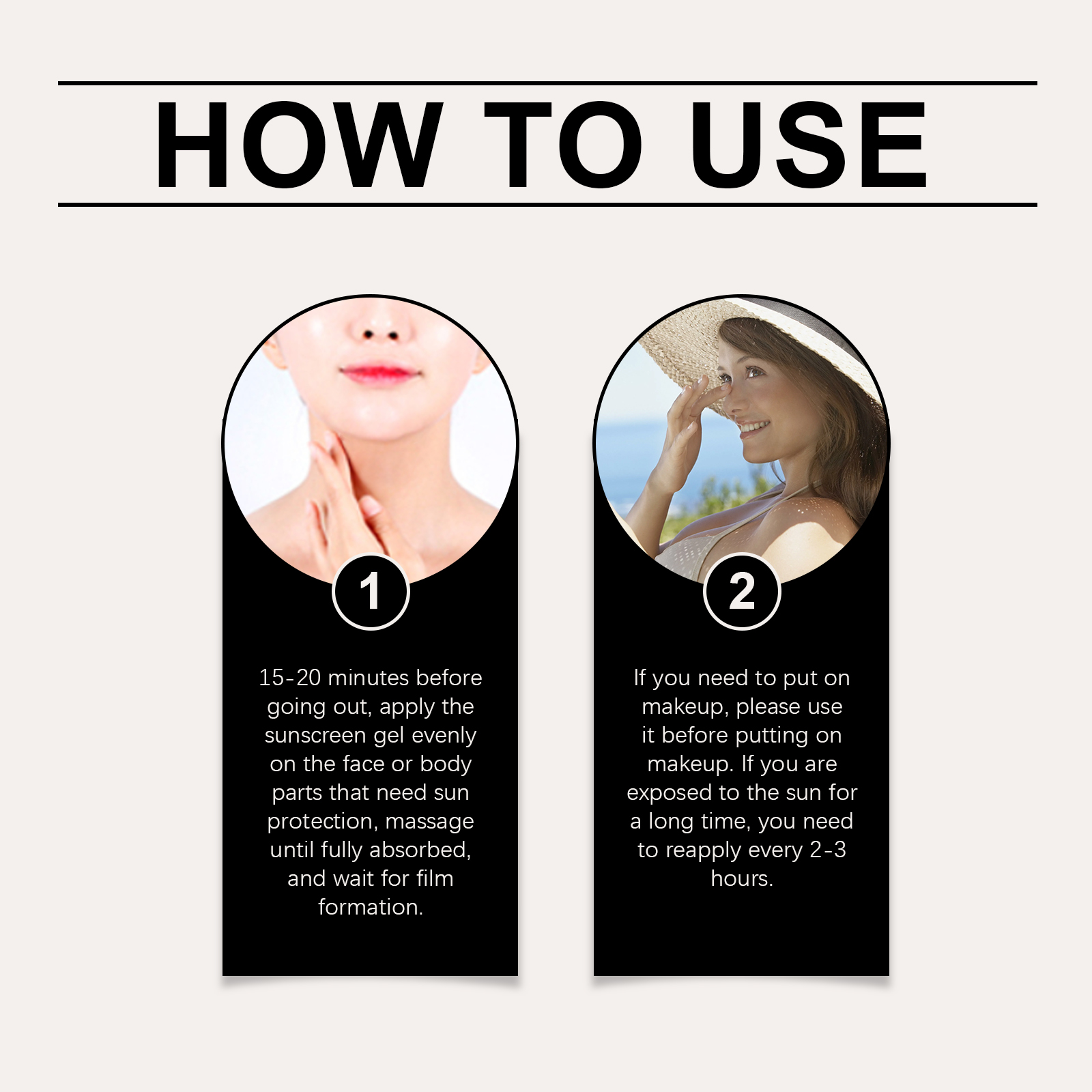 Our soothing gel contains titanium dioxide and niacinamide. It provides effective protection against UV radiation: reduces sun damage. The formula is lightweight, quickly absorbed into the skin and comfortable to use. Its application method is very simple: 15-20 minutes before going out, evenly apply the sunscreen gel to the face or body parts that need sunscreen and massage until it is completely absorbed and wait for the film to form. If you need to apply makeup, please use it before applying makeup. If exposed to the sun for a long time, it needs to be reapplied every 2-3 hours. And can continue to provide the skin needs moisture and moisturizing.