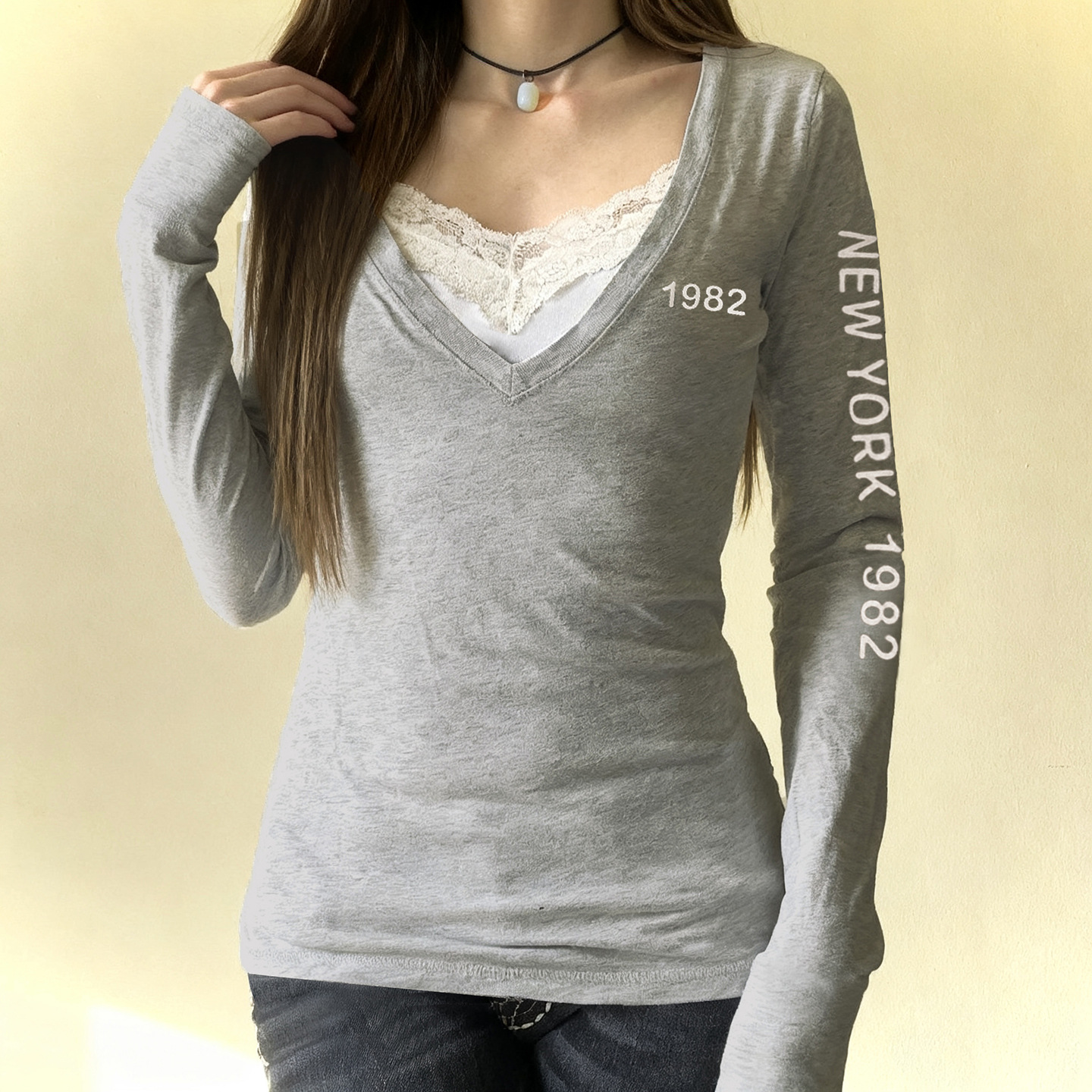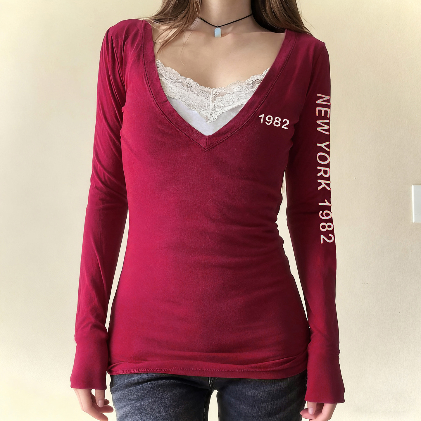 Neckline: V-neck